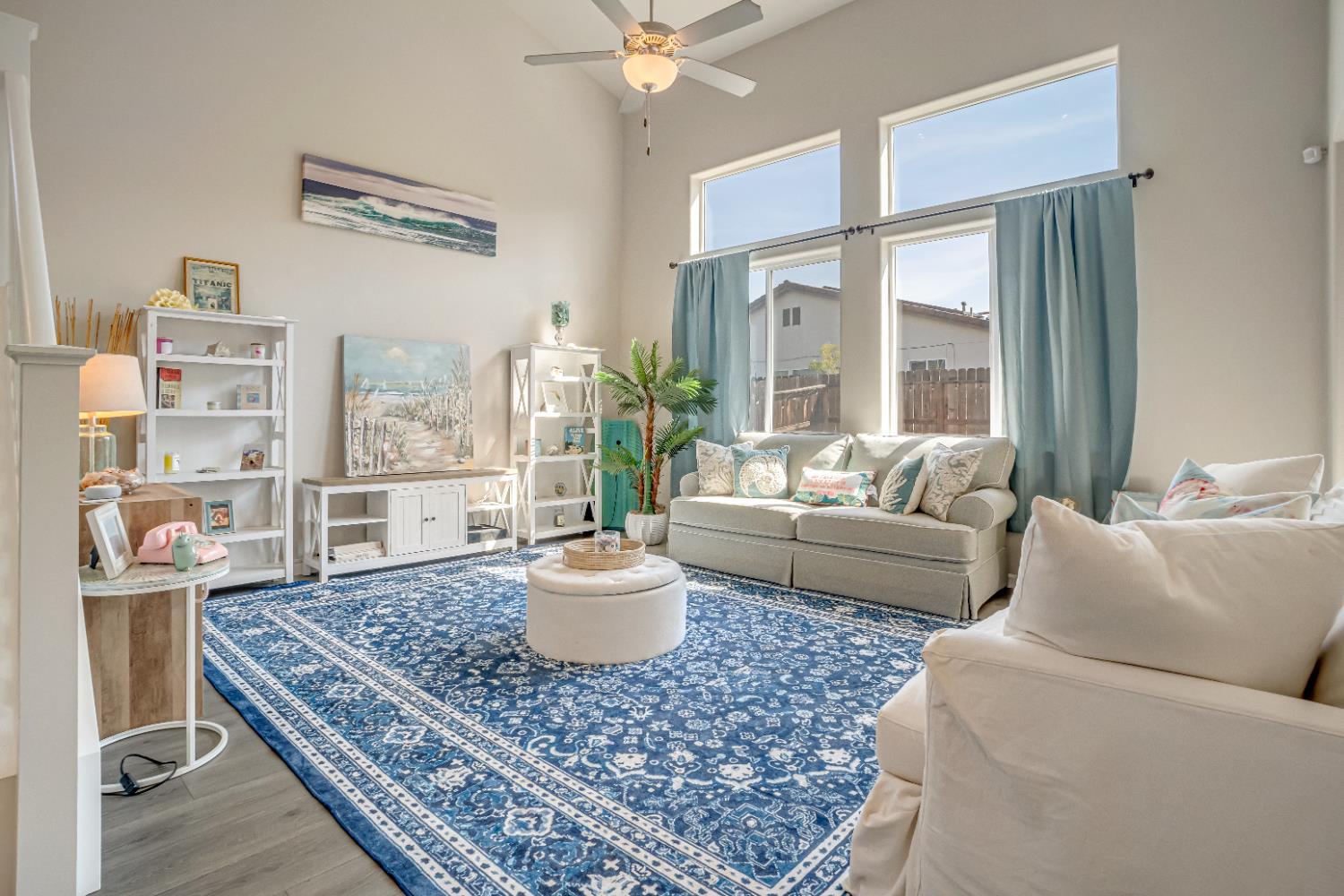 Stunning home in Clovis! Three bedroom, Two and half bath with a bonus room. The bonus room has many functions. It can be an office, workout room, playroom, game room or extra living space. The living area has plenty of natural light spilling in with transom windows, lighted ceiling fan and views of the backyard.