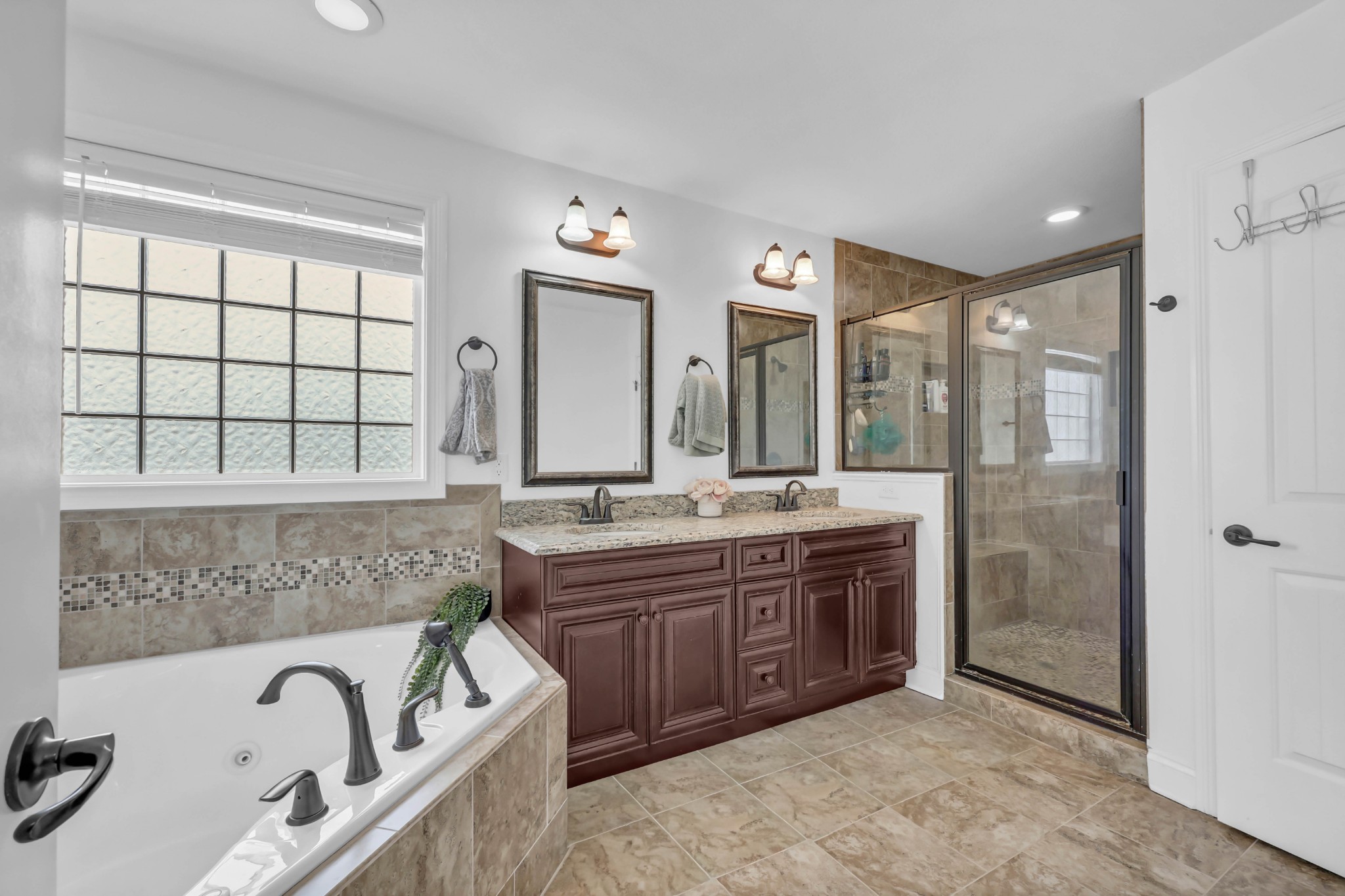 Rare One-Level Living with Exceptional Upgrades in a Vibrant 55 Community! This beautifully improved home offers thoughtfully designed spaces and significant enhancements created to maximize both comfort and everyday enjoyment. Wake up and enjoy the gourmet kitchen, featuring an island, granite countertops, stainless steel appliances, cooktop, and a professionally expanded dual pantry providing wonderful storage. A dedicated coffee, tea, or beverage bar with beverage refrigerator adds both style and convenience to this upgraded kitchen. The kitchen serves as the focal point of the open entertaining area and flows seamlessly into the living and dining spaces, where rich wood floors and a cozy fireplace create a warm and inviting atmosphere for both casual gatherings and more formal occasions. From the main living area, step outside to the expanded covered patio, offering the perfect space to relax or create your own outdoor oasis with landscaping, trees, or garden spaces. The home features three bedrooms, including two front bedrooms that share a full bath and are conveniently located near the dual-use laundry area with washer, dryer, utility sink, and additional storage cabinets. The sophisticated primary suite features two closets and an upgraded spa-like bathroom highlighted by a beautiful freestanding soaking tub, separate walk-in shower with glass doors, private linen and water closets, and dual vanities, creating a relaxing and elegant retreat. A welcoming covered front entrance creates the perfect place to wave to new friends and neighbors. Located in a vibrant, amenity-filled 55 community, the HOA fee includes FIOS Internet and Cable, along with access to a beautiful clubhouse, two pools, exercise room, and numerous social activities. Conveniently located near shopping, dining, healthcare facilities, and major commuter routes, and more!