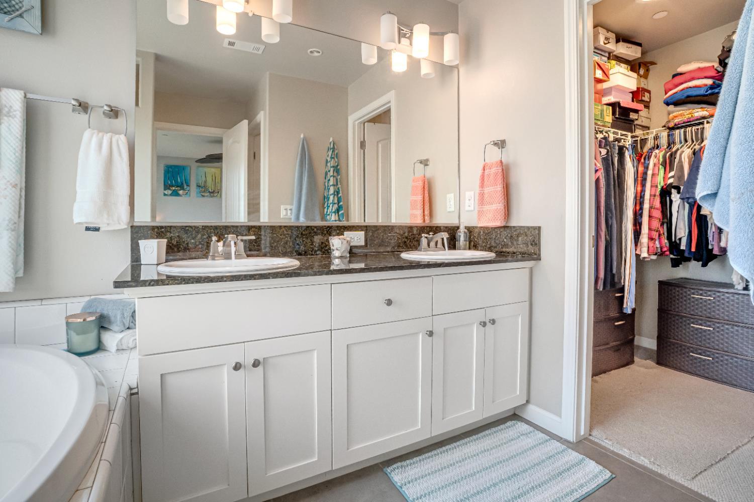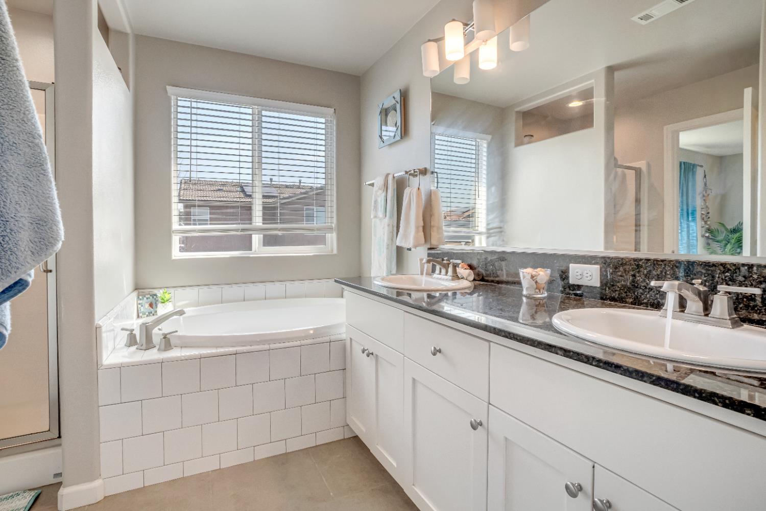 Stunning home in Clovis! Three bedroom, Two and half bath with a bonus room. The bonus room has many functions. It can be an office, workout room, playroom, game room or extra living space. The living area has plenty of natural light spilling in with transom windows, lighted ceiling fan and views of the backyard. Kitchen has an abundance of cabinetry, granite counter space, gas range, pantry, canned lighting and pendant lighting. Upstairs has a dedicated laundry room, two spacious bedrooms and hall bath with a tub/shower. The primary bedroom has view to the east of the mountains, great natural lighting and is spacious. The primary bathroom has dual sinks, soaking tub and Shower. Large Primary closet with plenty of storage. There is an EV hook up in the garage for your vehicle, Owned solar and a backyard with plenty of space for all your activities. Easy maintenance in the front and backyard.