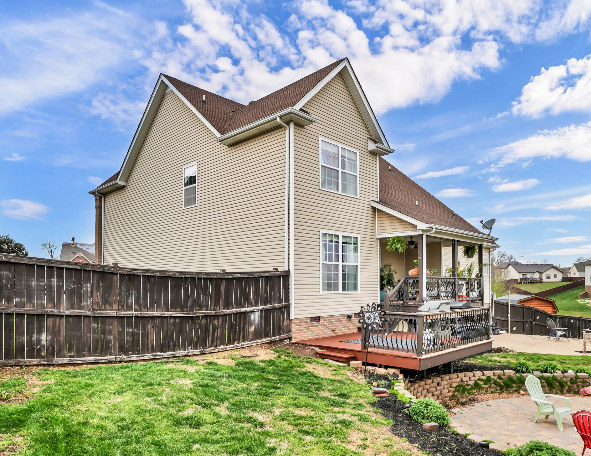 Tucked away on a quiet cul-de-sac, this spacious 4-bedroom, 3.5-bath home offers over 3,000 sq ft of thoughtfully designed living space—perfect for both everyday comfort and entertaining.Step inside to find tall ceilings, rich hardwood floors, and a stunning stone fireplace that anchors the main living area. The eat-in kitchen features granite countertops, a gas stove, and ample space to gather, along with a formal dining room for hosting special occasions.The primary suite is a true retreat, complete with a walk-in closet, jetted tub and a beautifully tiled shower with a large walk-in design. Upstairs, a bonus room above the garage provides flexible space for a media room, playroom, or home office.Outdoor living is where this home truly shines—enjoy a covered back porch, a two-tier deck, and a circular patio, all within a fenced backyard featuring a rear access double gate—ideal for entertaining, pets, or extra storage.Additional highlights include a two-car garage and a newer HVAC system (2021) for added peace of mind.Conveniently located just minutes from I-24, shopping, dining, and local attractions, this home offers the perfect blend of privacy and accessibility.Don't miss your chance to make this exceptional home yours!