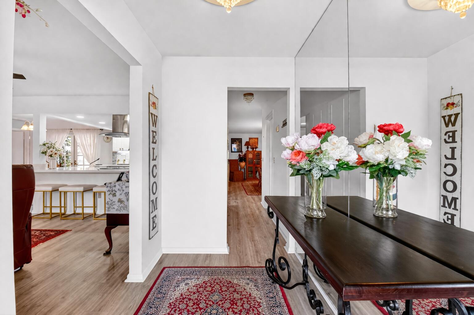 Welcome to this beautifully maintained single-story home offering 3 bedrooms, 2 bathrooms, 1,754 sqft of living space, and desirable RV parking. From the moment you step inside, you're greeted by an inviting open floor plan centered around a stunning stone fireplace that anchors the main living space and creates a warm, welcoming atmosphere. The kitchen features upgraded countertops, white cabinetry, and durable tile flooring, opening seamlessly to the dining and living areas—perfect for both everyday living and entertaining. Wood and tile flooring flow throughout the home, and the bathrooms have been tastefully updated with modern counters. Two of the bedrooms are connected by a convenient Jack & Jill bathroom, offering both functionality and privacy. The spacious primary suite includes a sliding door with direct access to the backyard, creating a peaceful retreat. A fully enclosed patio adds additional usable space, ideal for a game room, home gym, or relaxed indoor-outdoor living. The home also includes a whole-house water purification system for added comfort and convenience. Both the front and back yards are designed for low-maintenance living, while still offering plenty of room for outdoor seating, barbecues, and play areas. Situated on an elevated lot, the property offers the potential for future decking that could capture scenic lake views. With RV parking, a functional layout, and thoughtful upgrades throughout, this home is a fantastic opportunity for comfortable, easy living. Canyon Lake offers offers a low 1.1% tax base with no Mello Roos bonds, 384 acre waterski/fishing lake, 16 parks most with beaches and playsets, basketball courts, baseball fields, tennis & pickle ball courts, equestrian center, 18 hole golf course, pools, dog park,has golf cart friendly streets, slalom course, ski jump, restaurants, community events and so much more!!! Live life on vacation in Canyon Lake!