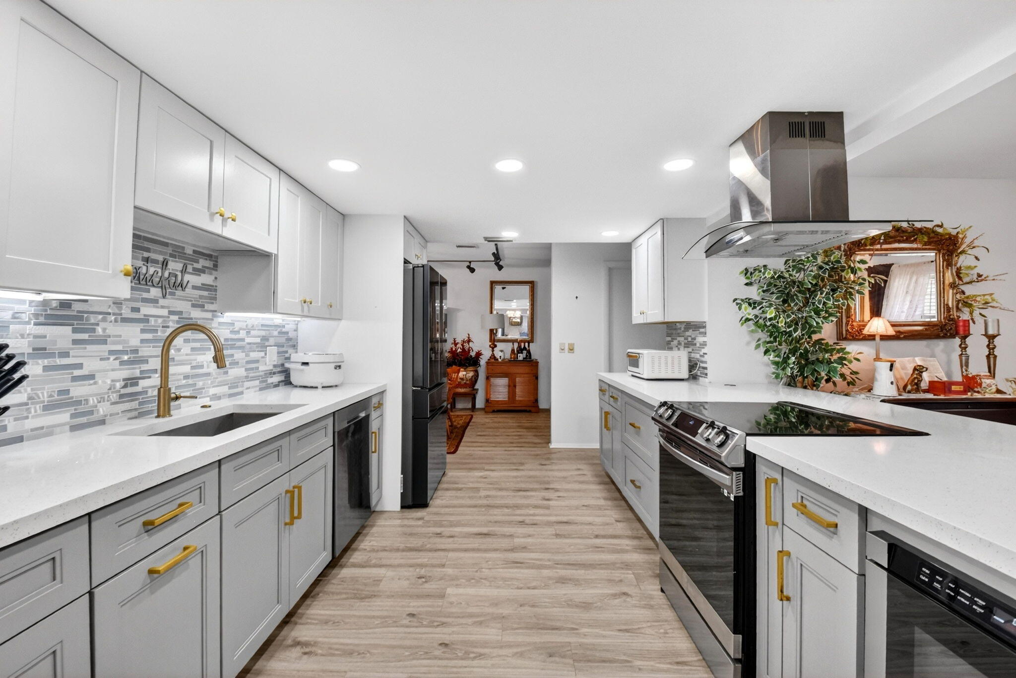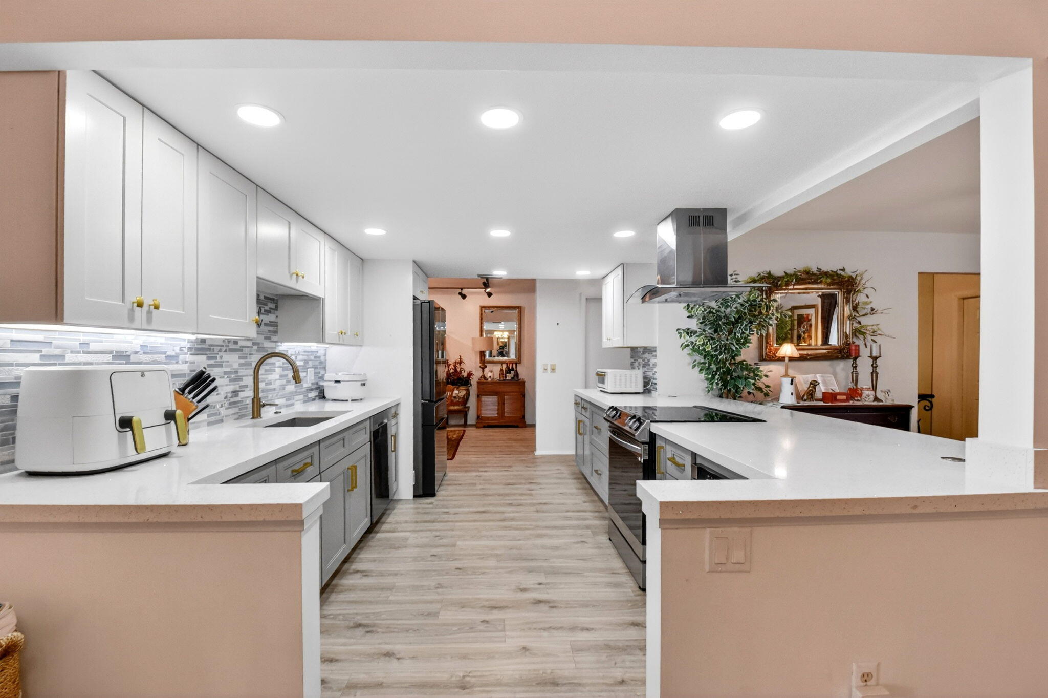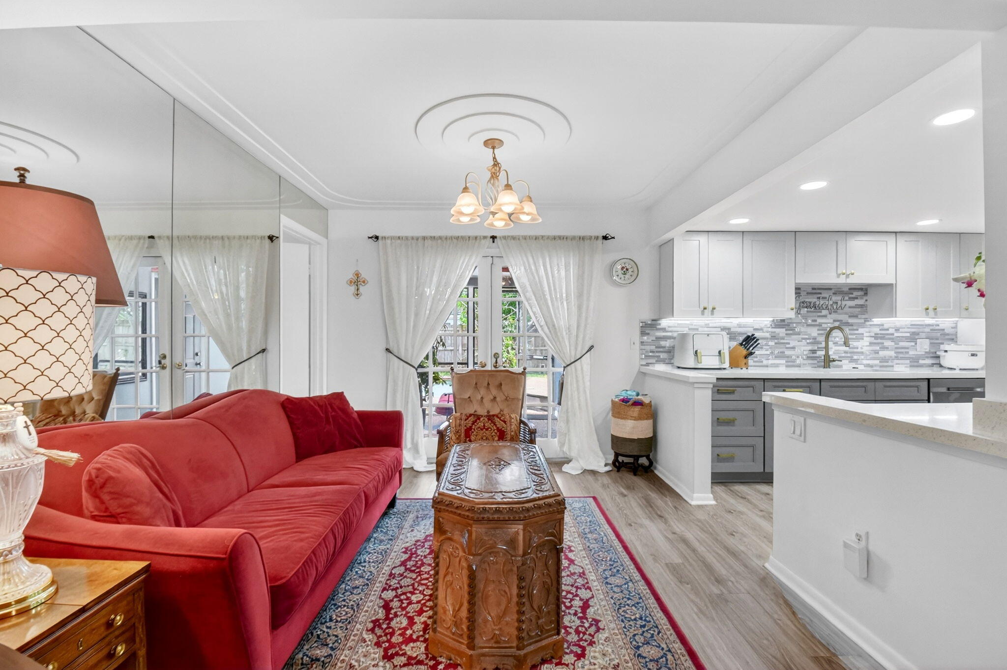 Nestled within the gated Estero Place community, this 2-bedroom den, 2.5-bath residence is turnkey furnished and move-in ready. The thoughtfully designed main living area is enhanced by tray ceilings, charming wood beams, plank tile flooring, and a custom wood-plank feature wall, creating a warm and inviting atmosphere.