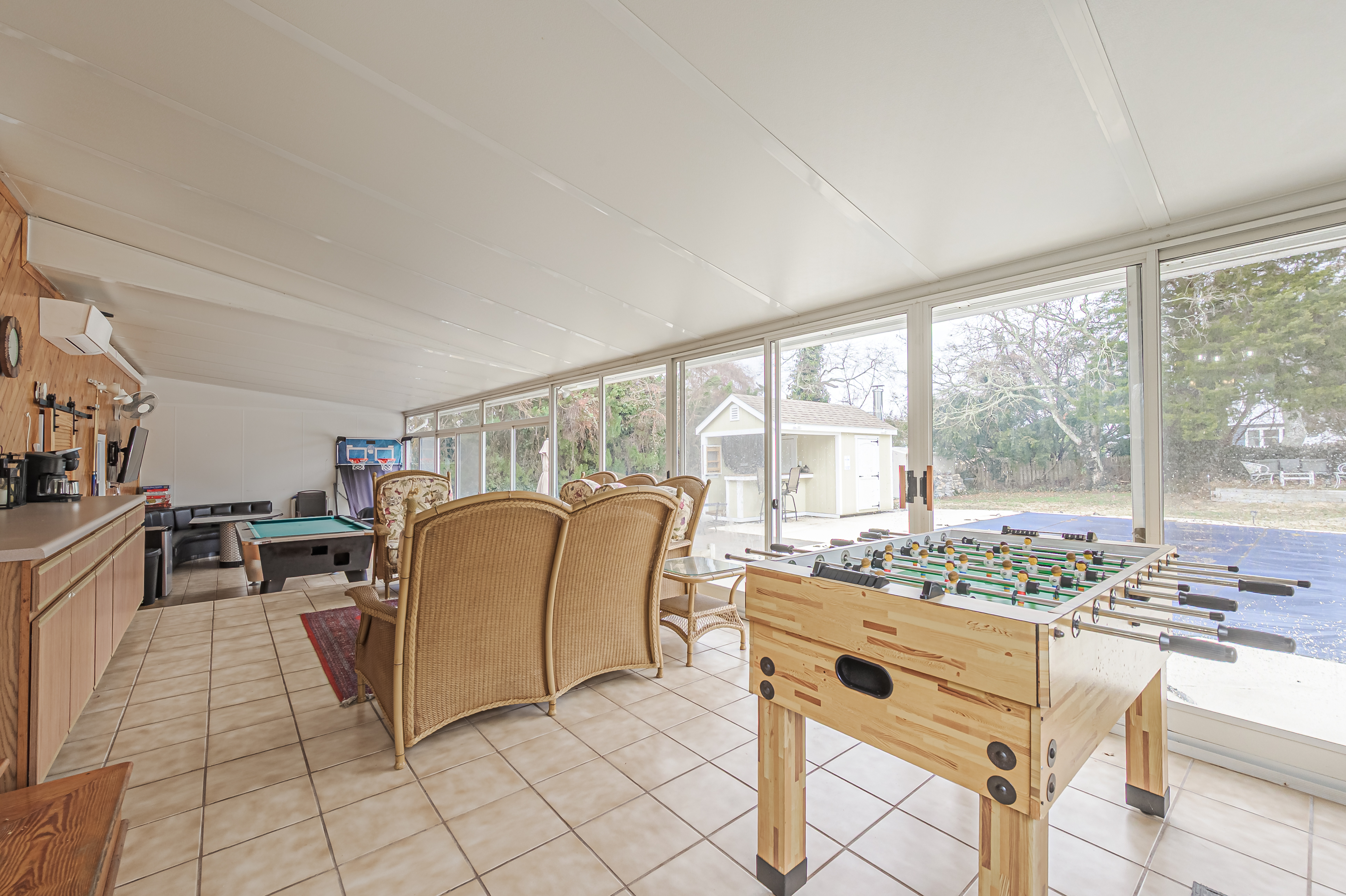 Welcome to your dream summer retreat, perfectly situated on a peaceful dead-end street in desirable Absecon. This stunning 4-bedroom, 2.5 -bath split-level home is currently operating as a successful AirBnB, offering a fantastic opportunity for yearly income. Entertainers delight awaits outside with a beautiful in-ground pool, a cozy firepit, and a brand new pool house featuring a bar and wood stove—the ultimate spot for gatherings. The party continues inside the expansive, heated sun room, a year-round space where you can relax or host. The main level boasts beautiful original hardwood floors, a living room with a charming wood-burning fireplace, and a formal dining room. The updated kitchen is a chefs dream with a center island and ample counter space. Retreat to the oversized primary bedroom on the first floor, complete with a private ensuite bath. The home also features a large finished basement for extra living space and storage. Enjoy low electricity bills thanks to the installed solar panels and keep your grounds pristine with the new sprinkler system. This property truly has it all! Dont miss your chance to own this exceptional home with proven income potential.