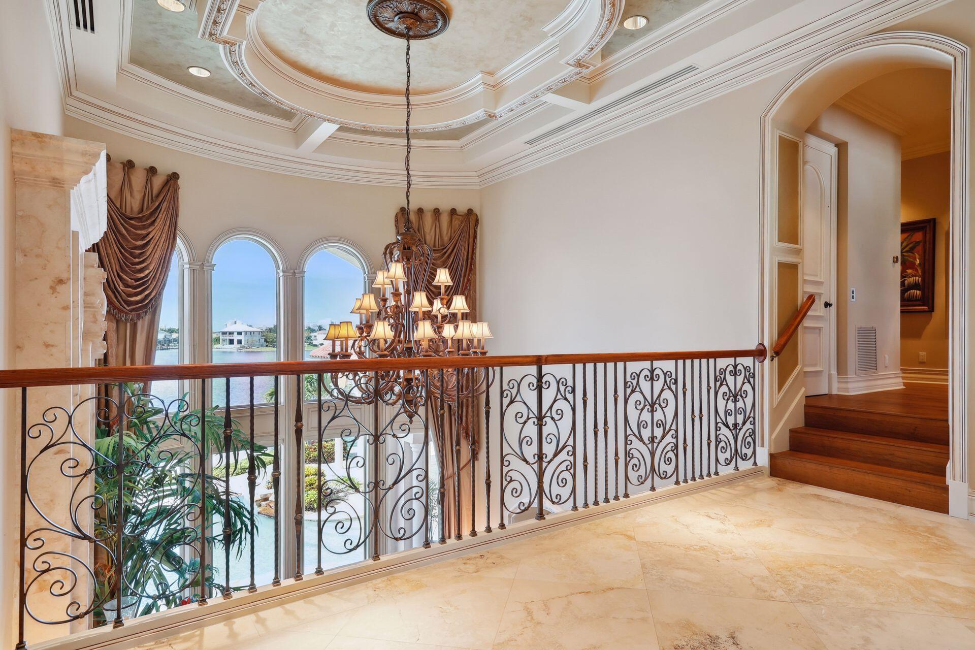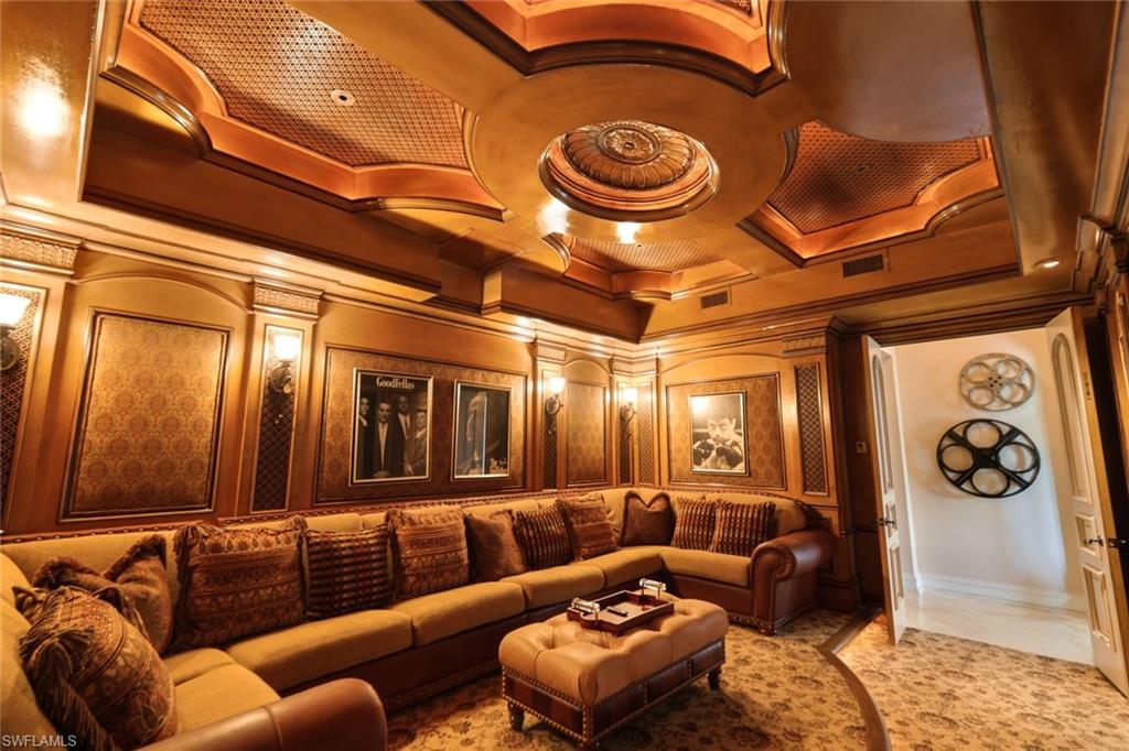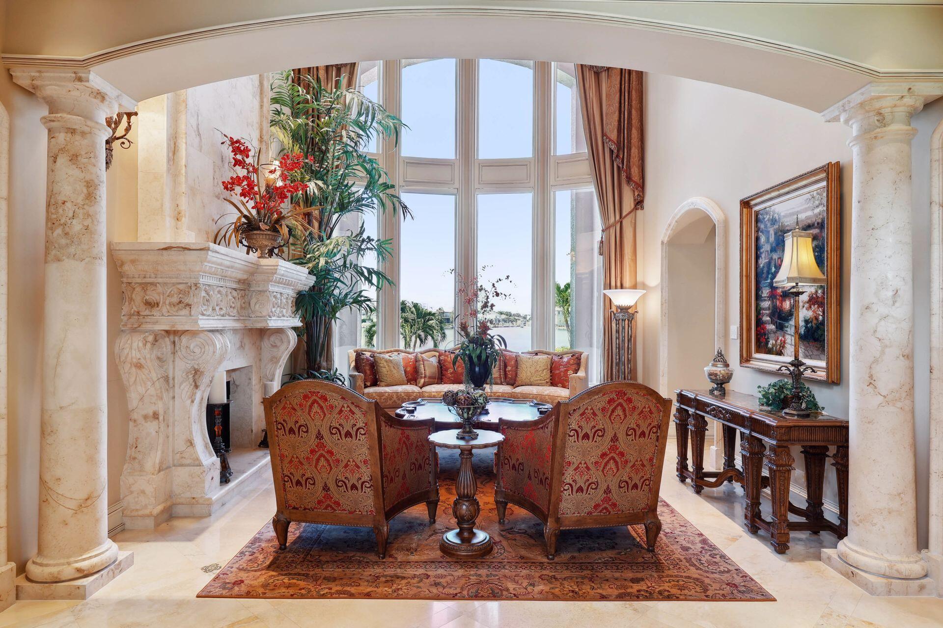 Offered at a level that would be extraordinarily difficult to replicate today, this grand-scale waterfront estate delivers unmatched craftsmanship, scale, and yacht-ready Gulf access on prestigious Smokehouse Bay. A commanding residence set on 141 feet of direct bay frontage, the home captures expansive southwest wide-water views and breathtaking sunsets, with deepwater, no-bridge access and a 30,000 lb lift--just minutes to the Gulf. Designed for grand living and entertaining, the estate showcases soaring two-story ceilings, a dramatic marble fireplace, and exquisite hand-crafted millwork throughout, reflecting a level of artistry and construction rarely achieved. The thoughtfully designed floor plan includes a chefs kitchen with concealed appliances, butlers pantry, walk-in pantry, custom wine room, private library, and a richly appointed home theater, creating a residence that is both impressive and highly functional. The primary suite is a true retreat, featuring a morning kitchen, spa-inspired bath with walk-through shower, dual water closets, and sweeping views over the pool to the bay. A grand spiral staircase or private elevator leads to two spacious upstairs en-suite bedrooms, each with its own private balcony overlooking the water, along with an expansive billiards lounge. Outdoor living is nothing short of spectacular, designed for grand-scale entertaining, highlighted by an infinity-edge pool and spa with cascading waterfall, expansive covered lanai, full summer kitchen, and a private guest casita with kitchenette. Lush tropical landscaping with swaying palms and fruit trees, enhance the sense of privacy and presence. A whole-house generator, impact windows and doors, 500-gallon propane system servicing the kitchen, fireplace, grill, and generator, and an epoxy-finished 3-car garage with custom built-ins complete the estate. A rare offering defined by architectural presence, artisan detail, and premier yacht-access waterfront living in one of Marco Islands most coveted bayfront locations.