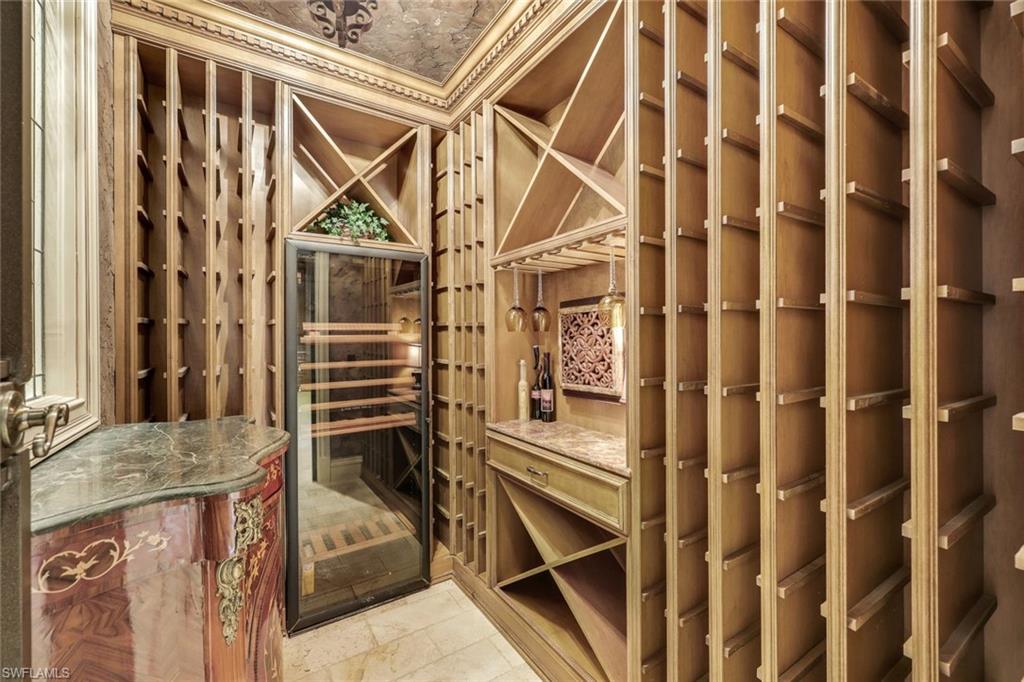 Offered at a level that would be extraordinarily difficult to replicate today, this grand-scale waterfront estate delivers unmatched craftsmanship, scale, and yacht-ready Gulf access on prestigious Smokehouse Bay. A commanding residence set on 141 feet of direct bay frontage, the home captures expansive southwest wide-water views and breathtaking sunsets, with deepwater, no-bridge access and a 30,000 lb liftjust minutes to the Gulf. Designed for grand living and entertaining, the estate showcases soaring two-story ceilings, a dramatic marble fireplace, and exquisite hand-crafted millwork throughout, reflecting a level of artistry and construction rarely achieved. The thoughtfully designed floor plan includes a chefs kitchen with concealed appliances, butlers pantry, walk-in pantry, custom wine room, private library, and a richly appointed home theater, creating a residence that is both impressive and highly functional. The primary suite is a true retreat, featuring a morning kitchen, spa-inspired bath with walk-through shower, dual water closets, and sweeping views over the pool to the bay. A grand spiral staircase or private elevator leads to two spacious upstairs en-suite bedrooms, each with its own private balcony overlooking the water, along with an expansive billiards lounge. Outdoor living is nothing short of spectacular, designed for grand-scale entertaining, highlighted by an infinity-edge pool and spa with cascading waterfall, expansive covered lanai, full summer kitchen, and a private guest casita with kitchenette. Lush tropical landscaping with swaying palms and fruit trees, enhance the sense of privacy and presence. A whole-house generator, impact windows and doors, 500-gallon propane system servicing the kitchen, fireplace, grill, and generator, and an epoxy-finished 3-car garage with custom built-ins complete the estate. A rare offering defined by architectural presence, artisan detail, and premier yacht-access waterfront living in one of Marco Islands most coveted bayfront locations.