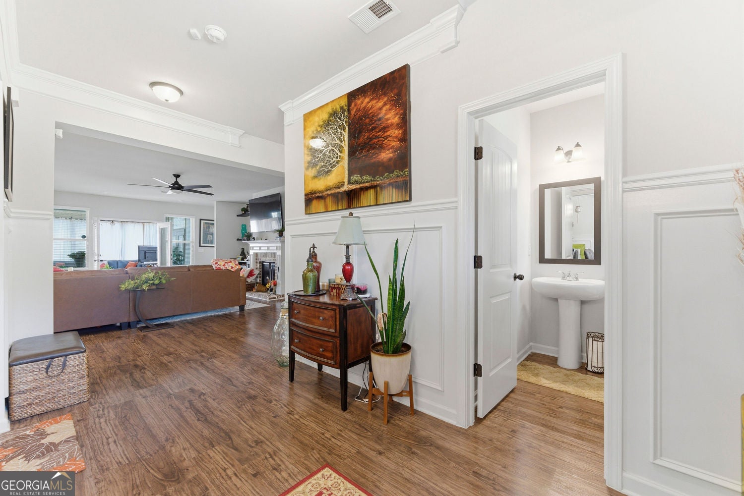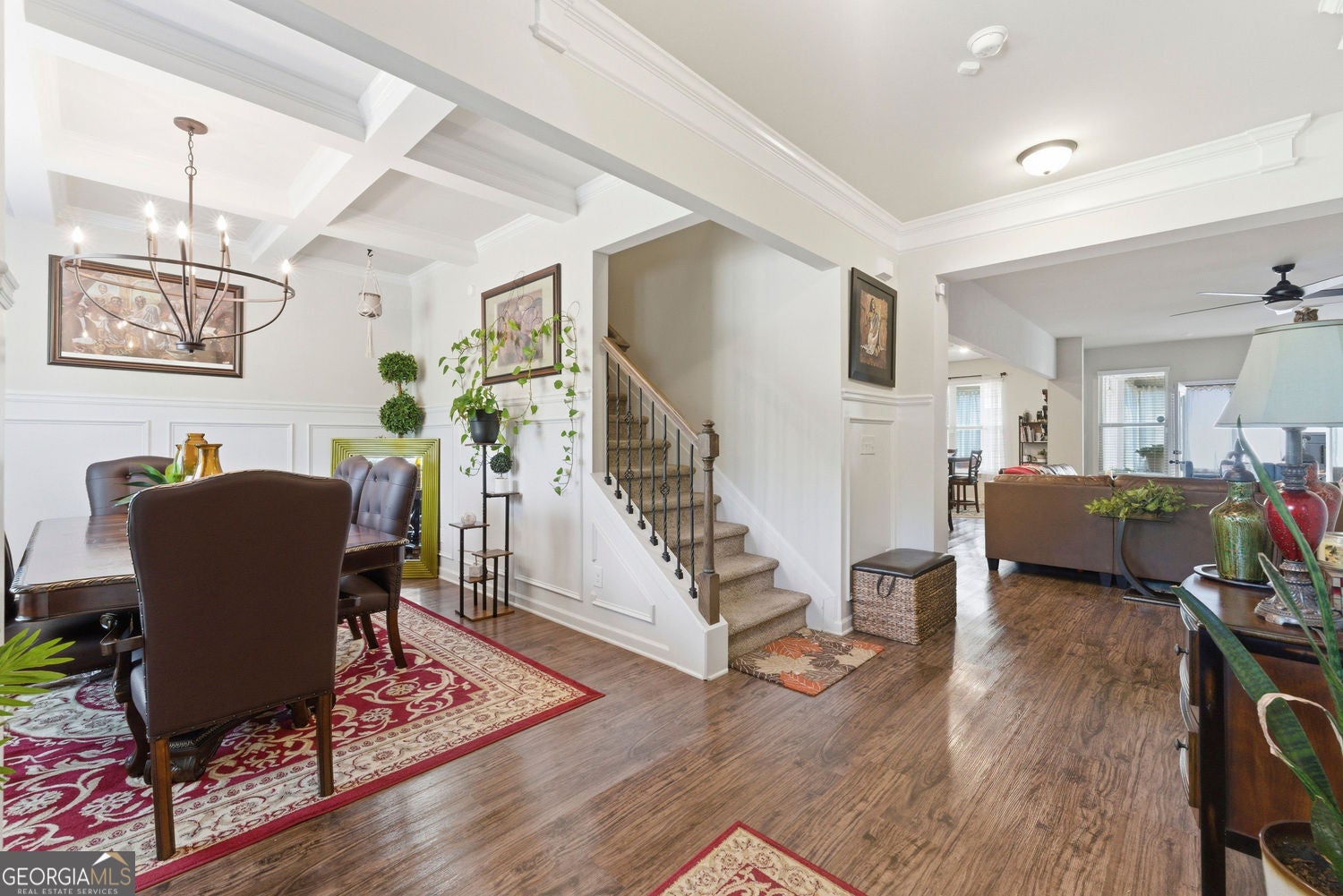 This is a beauty; like new, original owner, 2 car garage side entrance, long driveway, corner lot. Large level fenced in backyard. Impressive 2-story foyer, showcasing deep crown molding. Dining Room with coffered ceiling and chair rail panels. Thoughtful half-landing staircase from foyer hall leads to 2nd level to open loft area and 4 bedrooms and Media Room and extra bathrooms.