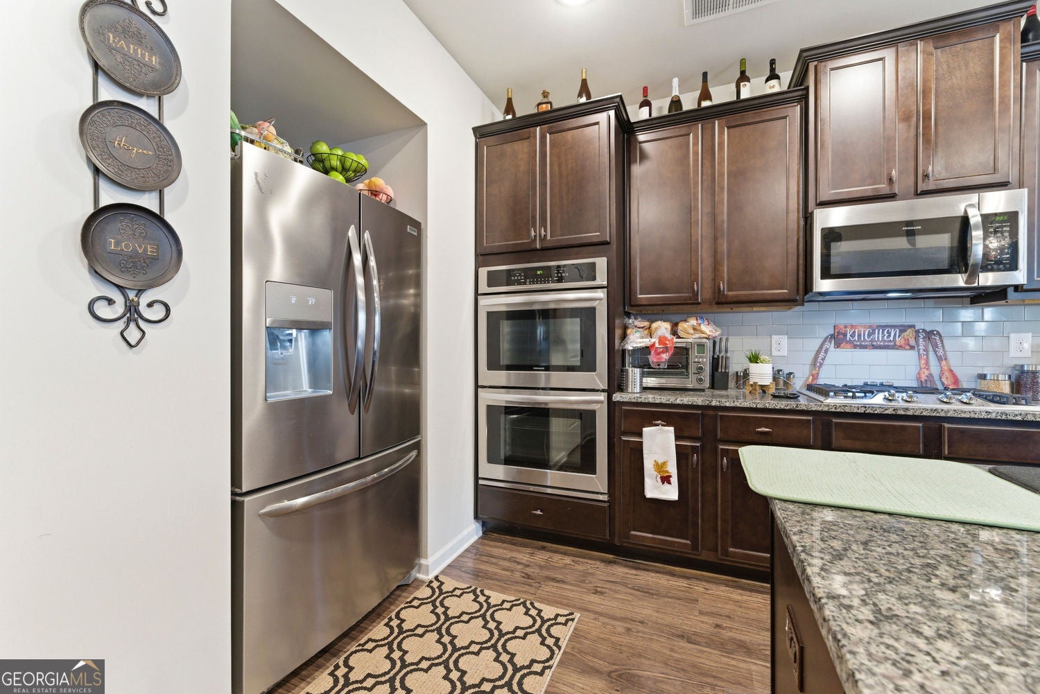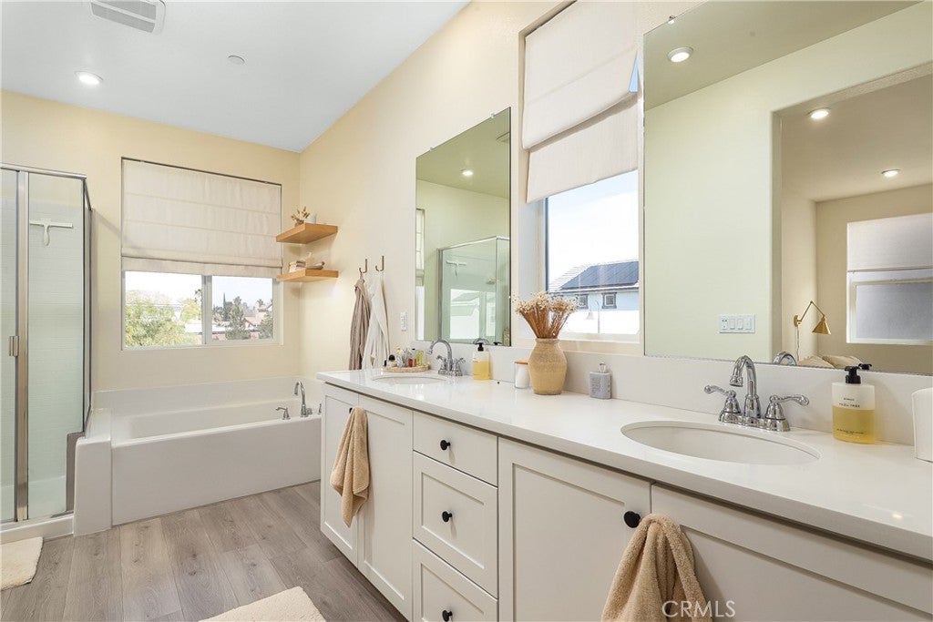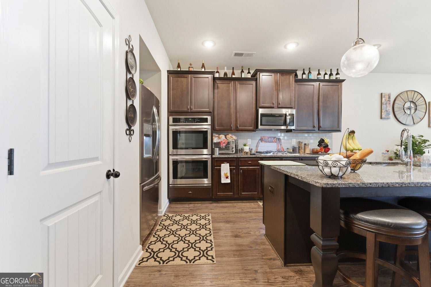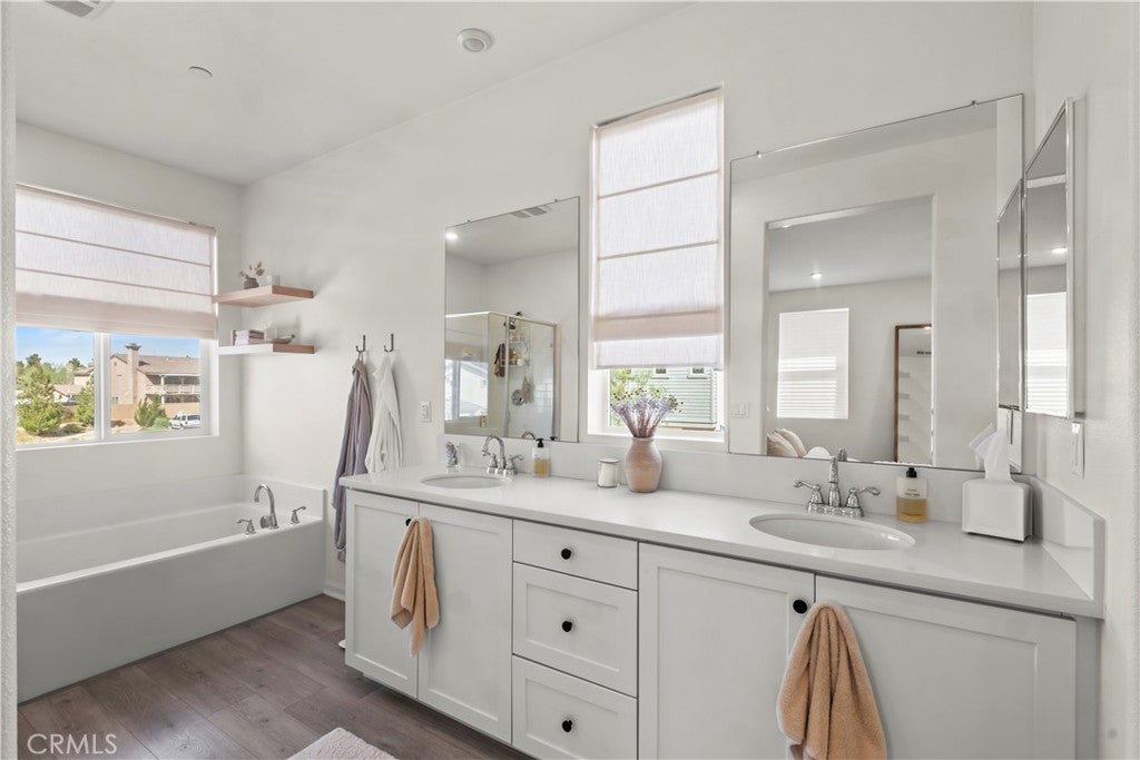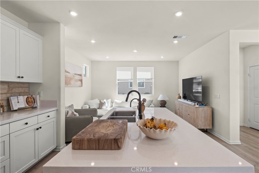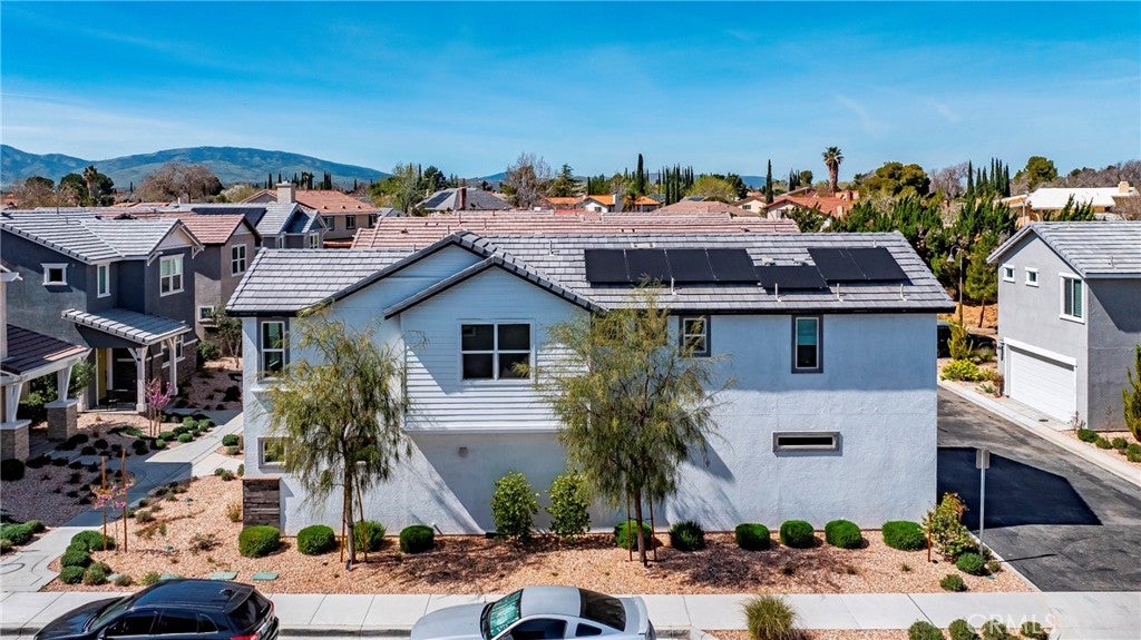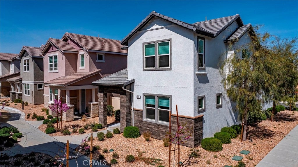 Welcome to 260 Summerville Lane, a beautifully designed two-story townhouse located in the highly desirable West Palmdale community. Featuring 3 bedrooms, 3 bathrooms, and an attached 2-car garage, this move-in ready home combines modern design, thoughtful upgrades, and exceptional energy efficiency. Step inside to a bright open-concept layout where the living room, dining area, and kitchen flow seamlessly together—perfect for both everyday living and entertaining. The heart of the home is a stunning designer kitchen featuring custom quartz countertops, a large center island with seating and integrated sink, and a striking natural stone backsplash. Stainless steel appliances, a chef-inspired gas range, and a sleek remodeled hood vent elevate the space, while matte black fixtures and hardware add a sophisticated modern touch. Architectural details including an arched pantry alcove, open wood shelving, and abundant storage provide both character and functionality. Recessed lighting throughout the home with dimmer controls allows you to easily customize brightness and create the perfect ambiance in every room, while a matte black chandelier anchors the dining area. A built-in water filtration system serves both the kitchen sink and refrigerator. Upstairs, spacious bedrooms offer comfort and privacy, complete with recessed lighting and generous closets. The primary suite features a walk-in closet and a spa-inspired bathroom with dual sinks, a soaking tub, and separate shower. A second dual-sink bathroom serves the additional bedrooms, and a dedicated upstairs laundry room with washer and dryer adds everyday convenience. Designed for efficiency and modern living, the home also includes: • 17 leased solar panels for energy efficiency • 2 leased Tesla Powerwall batteries installed in the attached 2-car garage • Central AC with dual-zone HVAC system for enhanced comfort and temperature control • Private low-maintenance backyard • Built-in doggy door for pet convenience • Outdoor electrical outlets, including a roof outlet for easy holiday lighting • HOA-maintained front landscaping for easy living. Ideally located just minutes from shopping, dining, and major freeway access, this home offers the perfect balance of comfort, convenience, and community living. A rare opportunity to own a beautifully designed, energy-efficient home in one of West Palmdale’s most desirable neighborhoods.