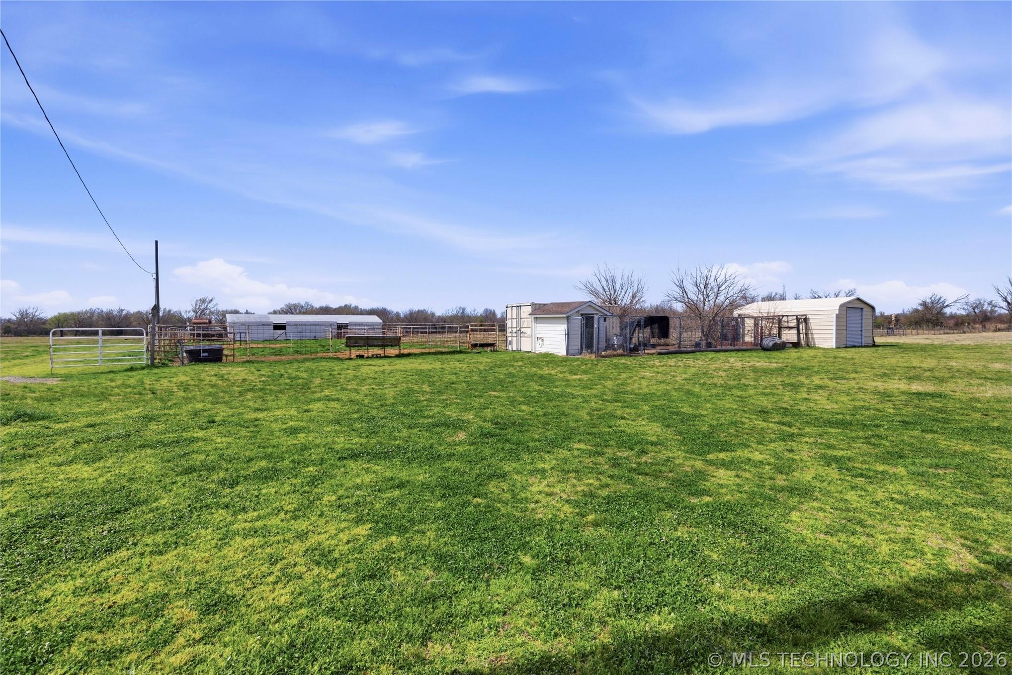 Oklahoma farm living at its finest! This beautifully cleared acreage is fully equipped and ready for livestock, farming, or peaceful country living. The property features two ponds, a horse barn, cattle runs, and a chicken coop, all surrounded by durable pole and barbed wire fencing-making it ideal for a working farm or hobby ranch.