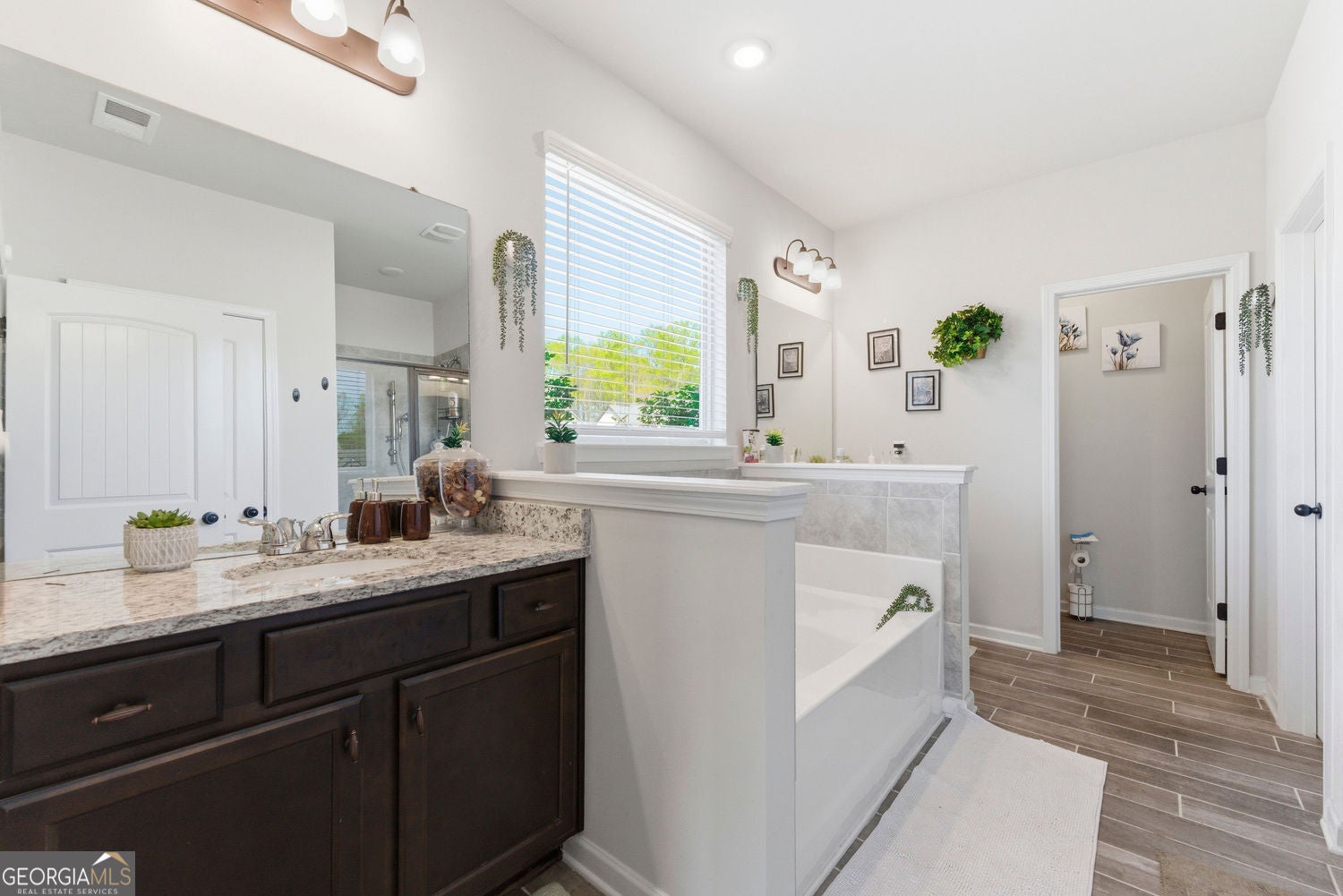 This is a beauty; like new, original owner, 2 car garage side entrance, long driveway, corner lot. Large level fenced in backyard. Impressive 2-story foyer, showcasing deep crown molding. Dining Room with coffered ceiling and chair rail panels. Thoughtful half-landing staircase from foyer hall leads to 2nd level to open loft area and 4 bedrooms and Media Room and extra bathrooms. Mudroom with padded bench and ample laundry room conveniently located near door to garage. Has ample kitchen island, double oven, breakfast nook, Open Concept kitchen design with functional and visually appealing space facing the spacious family room and additional add-on big Sunroom with double doors. 1st floor; large Owner Suite with coffered ceiling. Bathroom has 2 vanities and sinks, garden tub and spacious shower with bench, private water closet. Good home for multi-generational occupancy with diverse space options. 4 Bedrooms upstairs with one possibly suitable as another master bedroom with bathroom. Several rooms have vaulted ceilings further enhancing the charm of this lovely house. House located within minutes of new and modern construction for expansive options for shopping, stores and dining.