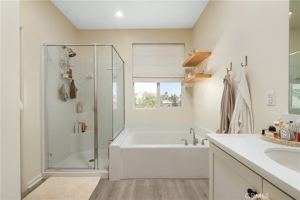 Welcome to the prestigious gated community of Marina Pointe at The Lakes, where privacy, natural beauty, and refined comfort come together. This impeccably maintained single-level home offers elegant lakeside living with soaring vaulted ceilings and freshly polished hardwood floors. A large picture window in the living room frames beautiful views of Ruby Lake, filling the space with natural light.
