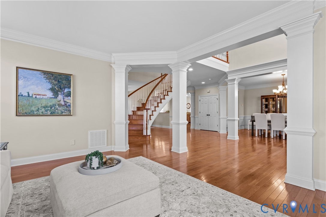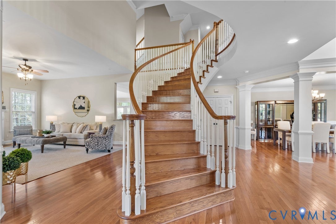 Welcome to this elegant 5087 sq.ft. ALL brick home sited on a private, wooded 1 acre estate lot in the gated community of Henley. With the potential of an additional 2581 sq. ft. in the unfinished daylight walkout basement with roughed-in full bath, this home has endless possibilities for expansion! This meticulously maintained home with custom trim work is in move-in condition! The thoughtfully designed first floor living space with 9 ceilings flows perfectly for entertaining! Enter to a grand foyer with a breathtaking free standing circular staircase opening to oversized rooms on the first floor including living and dining rooms with bay windows, a first floor office and music/sun room both with glass French doors and transom windows. Add to this, a huge family room with handsome gas fireplace and a chefs kitchen which is truly an entertainment hub! The kitchen includes a sunny morning room, an over abundance of custom cabinetry, large island and rear staircase to the second floor. The Laundry room/drop zone is directly off of the three car garage entrance! The second floor, also with 9 ft. ceilings, is equally as spacious with a grand Primary suite including a sitting area, tray ceiling, two king sized walk-in closets and beautifully updated primary bath with Quartz vanity tops, a handsome free standing claw foot tub and oversized shower! The 3 additional bedrooms, one is ensuite, and full baths are oversized! Add to this a second floor bonus room or possible 5th bedroom! The walk up attic is approximately 500 sq.ft. and roughed-in for HVAC. Additional features include a spacious 3 car garage, beautiful aggregate driveway, outdoor entertaining on a composite deck overlooking the private wooded lot! Just as beautiful as this home is the neighborhood in which it is located, Henley. This friendly, desirable gated community boasts elegant and transitional style homes on beautiful oversized lots in an award winning school district within minutes of interstates, hospitals, restaurants and shopping!