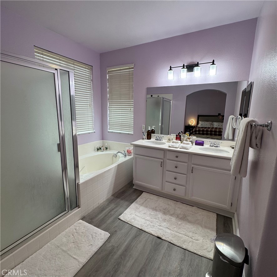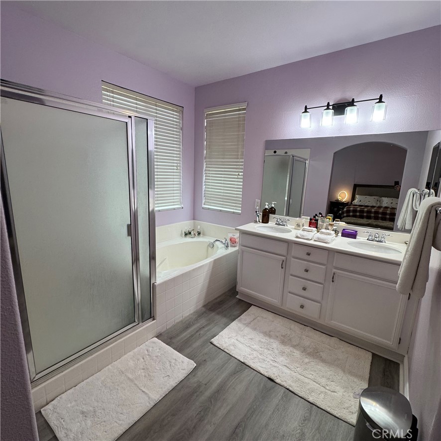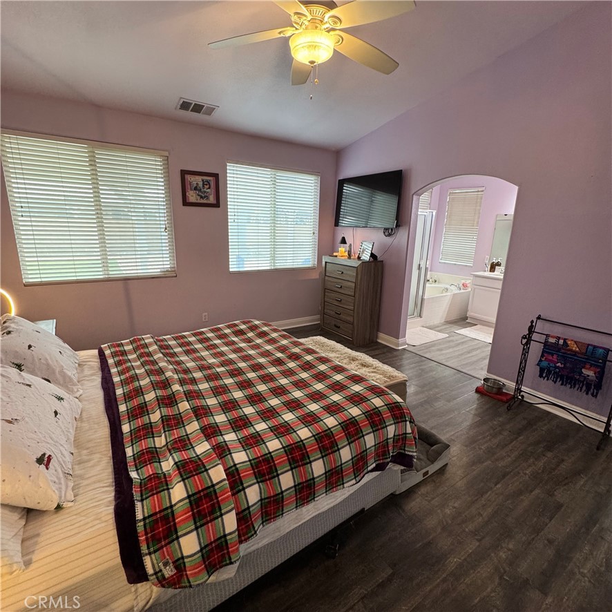 Discover this 3-bedroom, 2-bathroom home on a desirable corner lot in Moreno Valley. A graceful palm tree welcomes you to the property, while the private backyard offers a peaceful setting for family gatherings or quiet evenings. The remodeled primary suite stands out with its updated bathroom and French doors leading to the backyard, creating a relaxing retreat just steps from your bed.