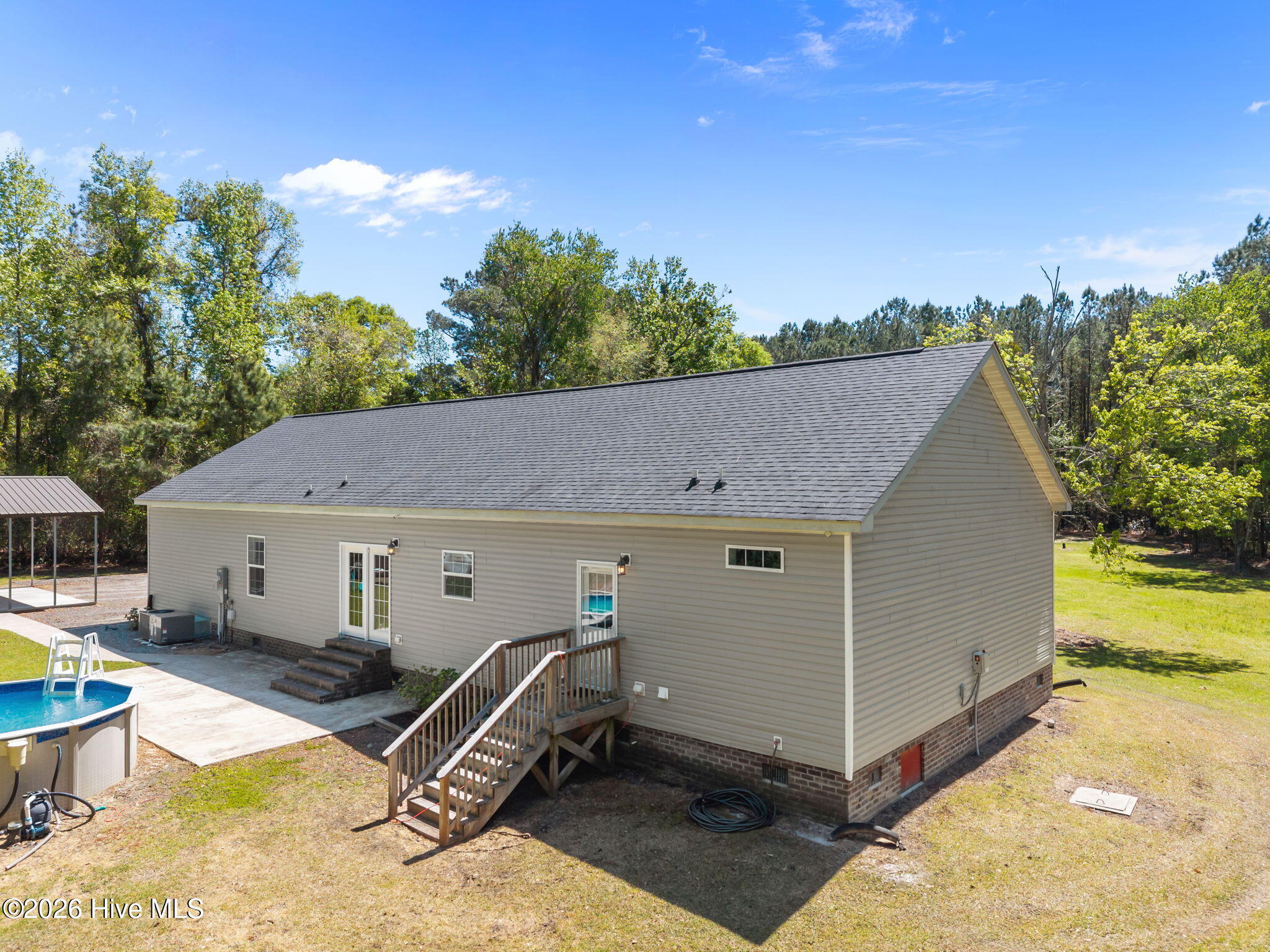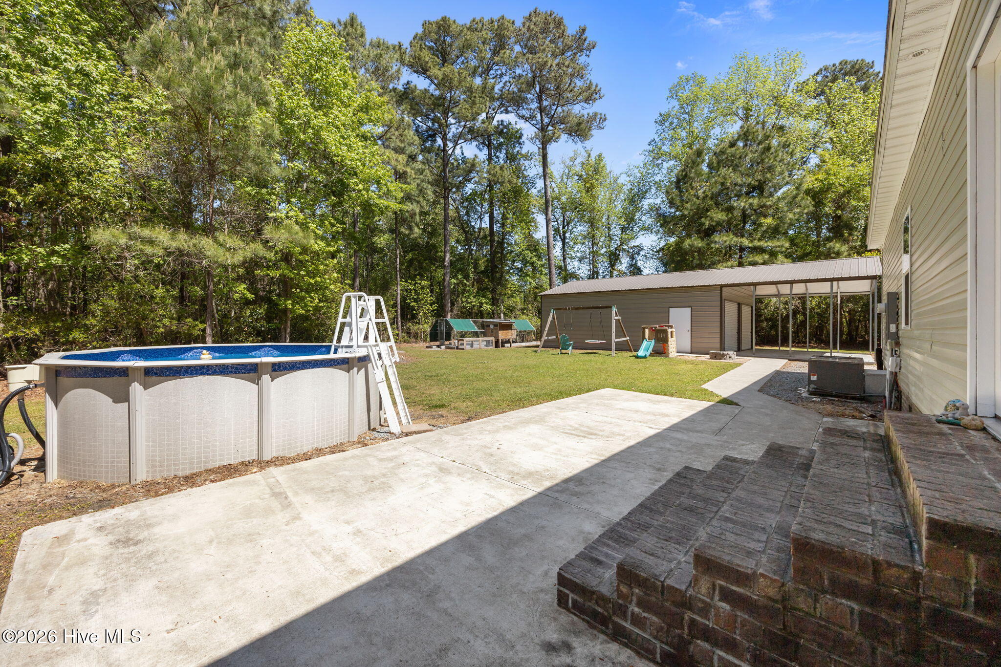 Welcome to your private homestead retreat! Nestled on 5.26 acres, this property offers the perfect blend of privacy, nature, and opportunity. Surrounded by mature trees and abundant wildlife, you'll enjoy peaceful living with plenty of space to explore, hunt, or simply take in the beauty of the outdoors--complete with a deer stand already in place.Bring your chickens, goats, and farm animals--this property is ready for your homesteading dreams to come to life!Inside, the home features 3 bedrooms and 2 bathrooms with a desirable split floor plan designed for both comfort and functionality. As you enter, you're welcomed into a spacious great room that seamlessly connects the living area, dining space, and a well-appointed kitchen featuring an island--perfect for gathering and entertaining.The primary suite is privately situated to the left of the great room and includes an ensuite bath with a double vanity. On the opposite side of the home, you'll find two additional bedrooms, a full hall bathroom, a bonus room, and a large recreation room.The expansive rec room is a true highlight, featuring a modern electric LED wall fireplace and a wet bar--ideal for entertaining, relaxing, or creating the ultimate game or media space.Step outside and enjoy all the extras this property has to offer! You'll find a concrete patio pad perfect for outdoor gatherings, an above-ground swimming pool for those warm Carolina days, and a chicken coop ready for your homestead setup. The property also features a spacious 32' x 24' wired detached garage with an extended 24' x 15' carport, offering plenty of room for vehicles, equipment, or hobbies. Plus, the extra-wide gravel driveway provides ample parking and easy access.This home truly has it all--space, privacy, and endless possibilities. Don't wait...schedule your private tour today!