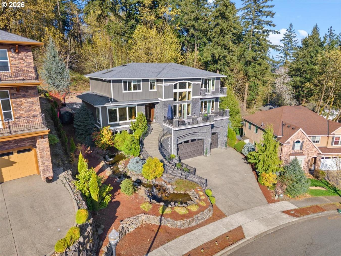 Set within the coveted Dove Hill community, this exceptional custom tri-level residence offers a compelling blend of timeless craftsmanship, refined comfort, and elevated Northwest living. Designed for the discerning buyer, the home showcases beautifully tailored interiors, expansive storage, custom built-ins, a generous tandem garage, and ample exterior parking-all thoughtfully curated to support both effortless daily living and elegant entertaining. Gas fireplaces, enhanced surround sound, and an inviting sense of scale enrich a collection of sophisticated living spaces inside. Two private balconies frame sweeping territorial views extending toward the Columbia River, creating a serene backdrop for morning coffee or evening gatherings. The chefs kitchen is appointed with rich wood cabinetry, granite slab surfaces, and premium gas appliances, delivering both warmth and distinction. A richly detailed home office offers an inspiring work-from-home environment, while the full home theater introduces a resort-like element for private enjoyment. Outdoors, a professionally installed sports court with a non-slip surface allows for year-round recreation in every season. Ideally positioned just moments from the Columbia River, parks, and key commuter routes, this is a rare opportunity to own a residence that embodies luxury, versatility, and prestige in one of the areas most desirable settings.