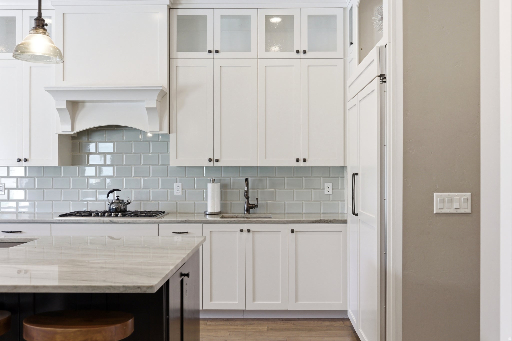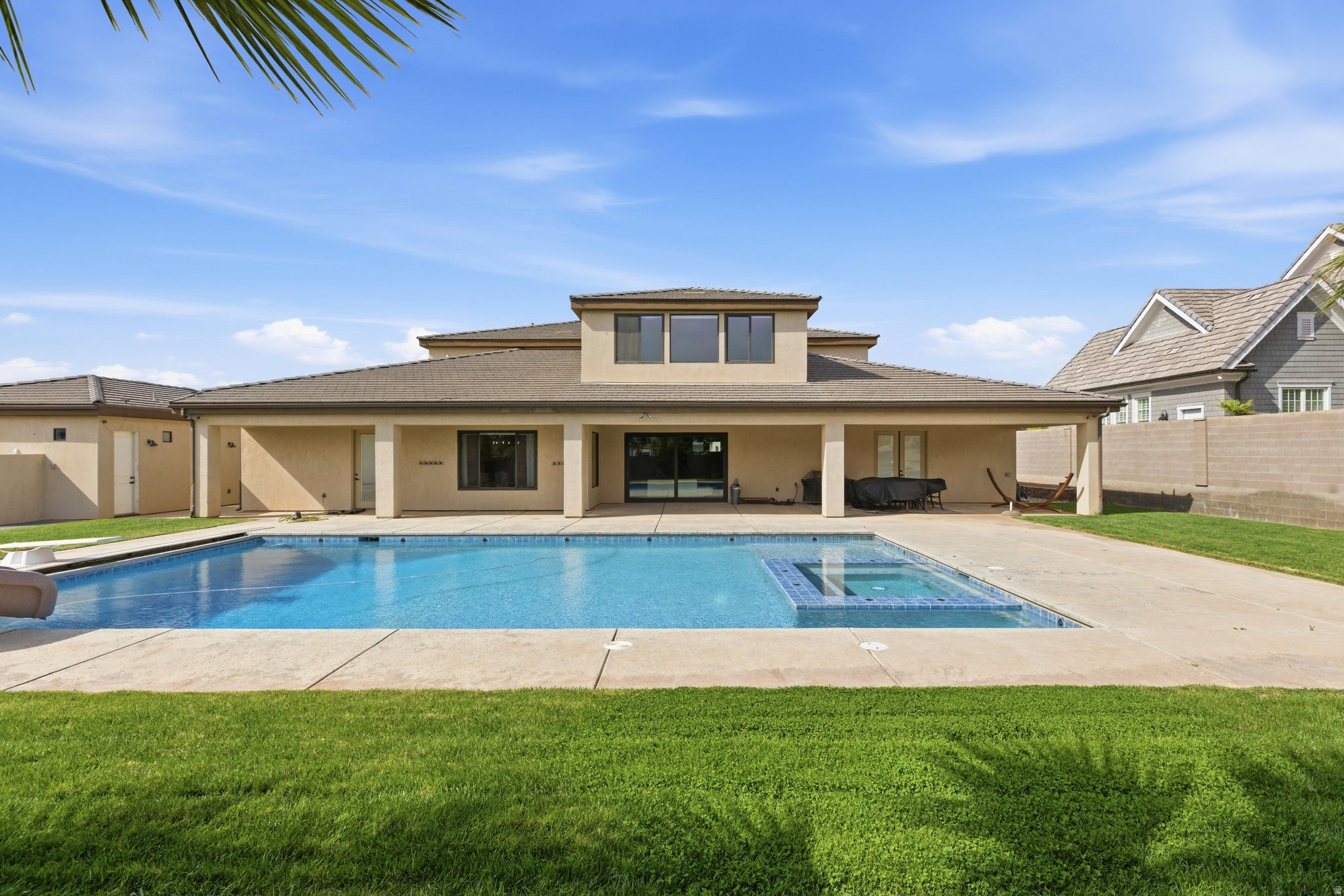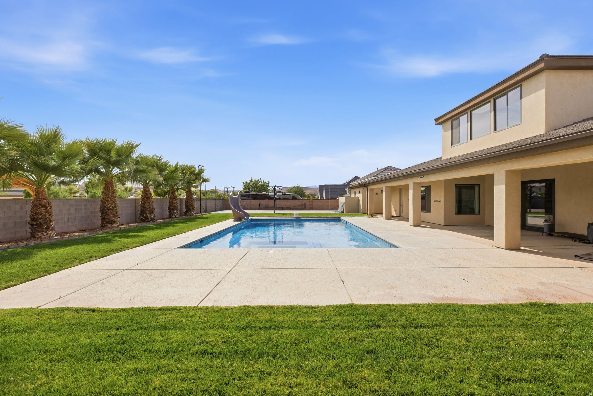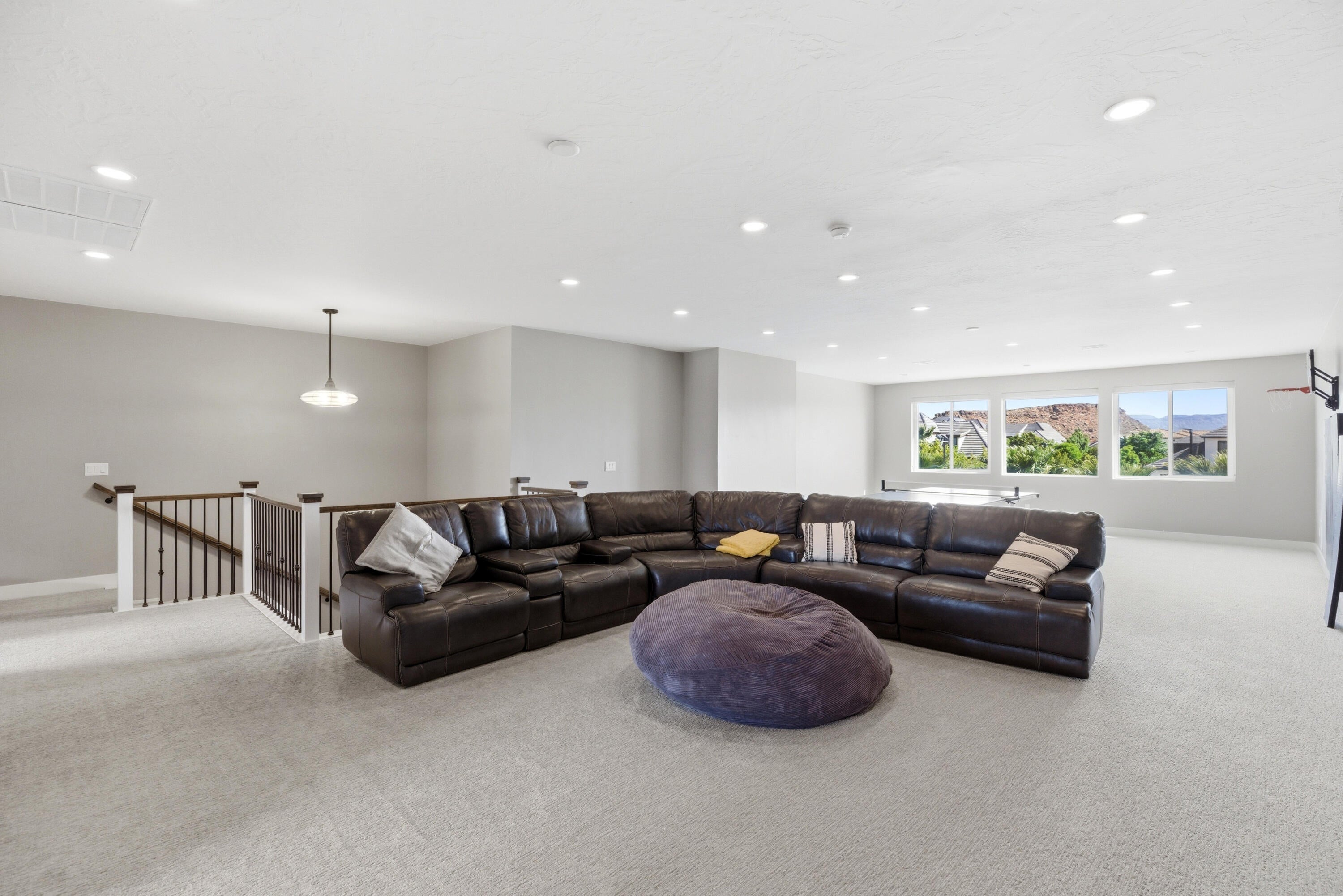 Experience luxury living at its finest in this masterfully designed estate located in the highly sought-after Little Valley community. Set on a premier half-acre lot and offering over 6,100 square feet, this home has been lightly lived in and thoughtfully crafted for both everyday comfort and elevated entertaining. Exceptional curb appeal welcomes you with a spacious driveway, detached garage, and beautifully manicured grounds. Inside, expansive living spaces are filled with natural light, rich wood flooring, and a seamless open-concept layout. The gourmet kitchen serves as the heart of the home, featuring an oversized island with seating, high-end cabinetry, designer lighting, a large walk-in pantry, reverse osmosis system, and premium finishes, all flowing into a stunning great room with custom built-ins and a statement fireplace. The home offers six spacious bedrooms and five bathrooms, including two luxurious primary suites ideal for multi-generational living or hosting guests. The main primary retreat features a spa-like bath with soaking tub, an oversized walk-in closet, and private laundry hookups for added convenience. Additional highlights include a well-designed entry, mud room, full laundry room, upstairs bathroom, a half bath on the main level, and a versatile bunkroom with built-in closet space. Step outside to your own private resort, where the backyard has been transformed into an entertainers dream. Enjoy one of the largest private pools in Little Valley, a covered patio for year-round gatherings, a dedicated outdoor pool bathroom, and a private pickleball court. The detached garage offers incredible flexibility with room for additional vehicles, toys, or a workshop, while the expansive six-car capacity ensures ample storage. This exceptional property delivers the ultimate blend of luxury, functionality, and resort-style living in one of Southern Utahs most desirable neighborhoods.