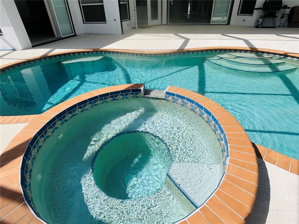 Imagine coming home to relax in your spa-like retreat. The grand entrance leads you to stunning views of the 48x18 pool & hot tub with a cascading waterfall. Beautiful morning sunrises and evening sunsets. This custom built home not only has a spacious living room w/10 ft. ceilings but also an 18x18 family room (pool table included)! The dream kitchen has Corian countertops with a peninsula w/bar seating and a center island. Loads of storage space and modern appliances. In addition to the breakfast nook with a view of the pool, you have a formal dining area. Plenty of space for entertaining! The split bedroom floorplan has the 2nd and 3rd bedrooms on one side and the primary w/ensuite bath on the other. Double walk-in closets, walk-in shower, soaking tub and a double sink vanity offers a relaxing place to unwind. This home also has a dedicated office with French doors for privacy. The living room opens to the huge lanai w/caged heated pool and tropical landscaping. There is also a a half bath within the lanai and a separate sun area for lounging or to barbeque. This home sits on an oversized lot (.34 acre) and on a cul-de-sac. New roof in 2023, new pool cage rescreen, exterior paint and landscaping in 2024. Not in a special flood hazard area!! Located in Deep Creek. Close to Deep Creek Golf Course, park and Pickle Ball courts. Minutes to shopping, restaurants, and I75.
