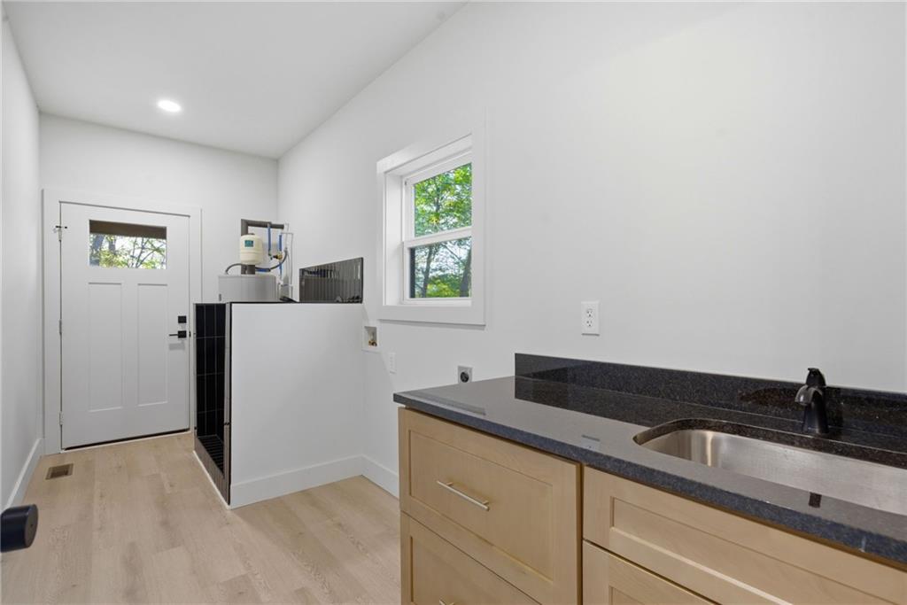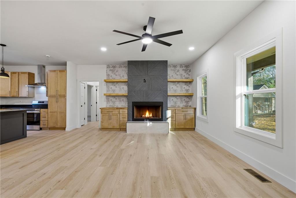 Welcome to this beautifully crafted brand-new construction 3 bedroom, 2 bathroom home located in the gated Coosawattee River Resort, perfectly situated on a private cul-de-sac lot just over half an acre in the heart of Ellijay. This home offers a thoughtfully designed open-concept layout with a seamless flow between the kitchen, dining, and living spaces, ideal for both everyday living and entertaining. The kitchen is a true showpiece, featuring shaker style soft close cabinetry in a warm honey finish, a large center island, stainless steel appliances, and stunning granite and quartz countertops throughout. Every detail has been carefully selected to blend functionality with elevated design. The spacious living area is anchored by a striking fireplace with custom built-in cabinetry and shelving, complemented by a luxurious wood look porcelain tile surround featuring a unique architectural ribbed pattern that adds depth and texture. The primary suite offers a spa-inspired retreat, complete with a wet room walk-in shower, freestanding soaking tub, designer tub filler, and large-format tile finishes. Two additional bedrooms provide comfortable accommodations and share a well-appointed secondary bathroom with large format tile and modern finishes. Luxury vinyl plank flooring runs seamlessly throughout the home, offering durability and a clean, cohesive aesthetic. A well appointed laundry room includes cabinetry and a utility sink for added convenience. A standout feature of this home is the custom tiled dog wash station, thoughtfully designed for both function and style. Exterior features include durable Hardie board siding, custom shutters, and a spacious rear deck perfect for relaxing or entertaining while enjoying the peaceful North Georgia surroundings. Located within Coosawattee River Resort, residents enjoy gated access along with a variety of amenities including river access, pools, fitness center, parks, and more, all while being just a short drive to downtown Ellijay dining, shopping, and outdoor recreation. This home offers a perfect combination of modern luxury, functional design, and high-quality craftsmanship ideal as a full-time residence, second home, or investment property.