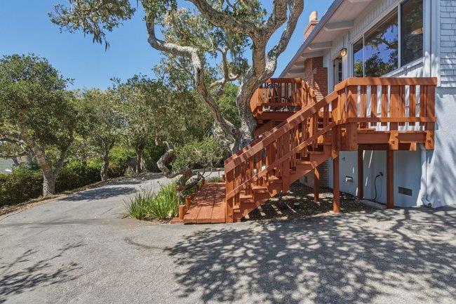 Perched to capture soft coastal light and glimpses of the Pacific, this comfortably designed three-bedroom, two-bath residence blends timeless mid-century style with effortless California living. A wall of windows invites natural light to pour in, creating a warm, airy ambiance while framing select ocean views that shift with the day. Warm classic hardwood floors run throughout the home, complementing the clean architectural lines and enhancing its understated elegance. The thoughtfully designed layout offers both an inviting atmosphere and versatility ideal as a serene vacation retreat or a refined full-time residence. Set on a generous lot, the property provides space, privacy, and privacy all anchored by a serene outdoor escape perfect for morning coffee or evening gatherings beneath mature oak trees. The seamless indoor-outdoor connection invites you to relax, entertain, and fully embrace the coastal lifestyle. Complete with a spacious two-car garage and designed for easy care living, this home blends style with everyday living and is ready to welcome its next chapter.