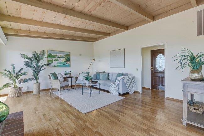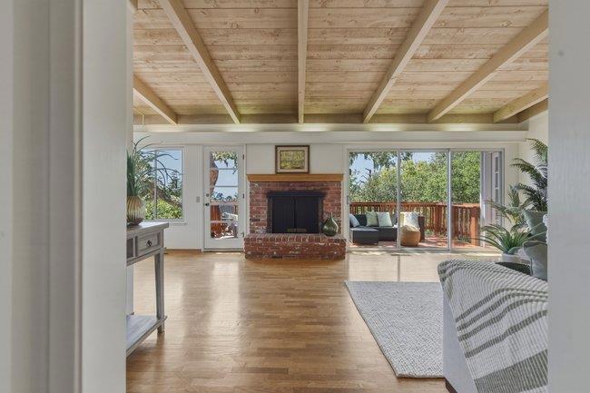 Perched to capture soft coastal light and glimpses of the Pacific, this comfortably designed three-bedroom, two-bath residence blends timeless mid-century style with effortless California living. A wall of windows invites natural light to pour in, creating a warm, airy ambiance while framing select ocean views that shift with the day.