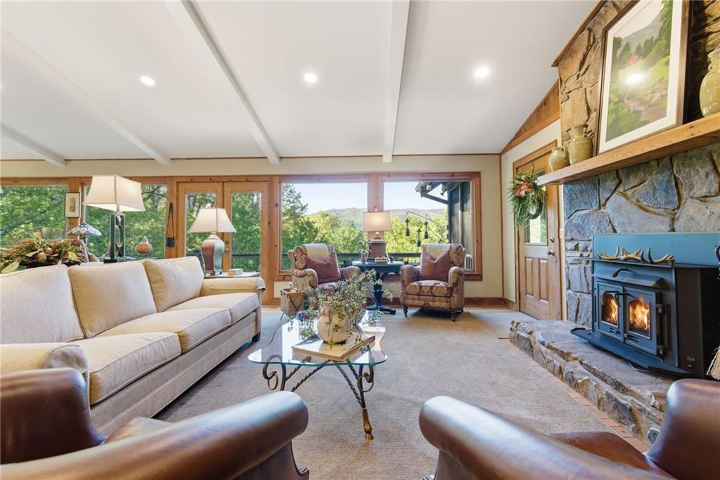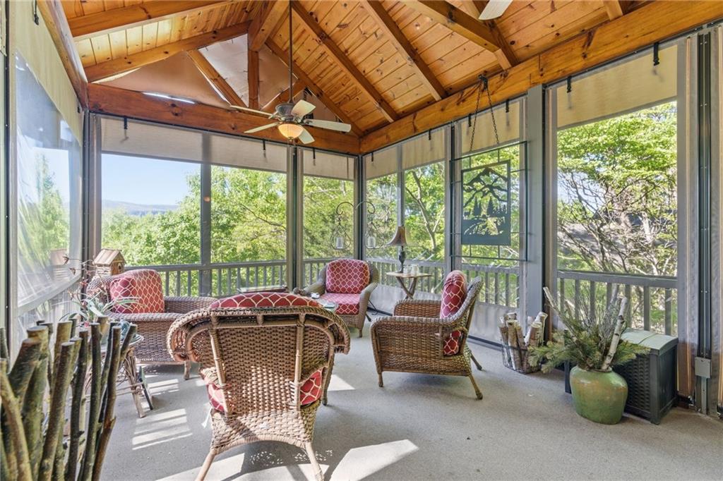 YEAR-ROUND MOUNTAIN VIEWS ONE-LEVEL LIVING 3 FIREPLACES GATED SKYLAKE COMMUNITYWelcome to 204 Doe Run, where layered Blue Ridge views steal the show in every season. Easy paved access, no steep roads, and main-level living designed for comfort and connection — this is mountain life without the trade-offs. The home's orientation captures the Blue Ridge at its most beautiful — golden afternoons, alpenglow at dusk, and star-filled nights that make you forget the rest of the world exists. New Trex decking on both levels means you'll spend more time outside than in. The upper deck flows from the vaulted great room and screened primary suite porch, putting those ridgelines front and center. The lower covered porch is your shaded retreat, and is ready for your new jacuzzi. When the mountain air turns crisp, three fireplaces keep the warmth going: a rock-faced fireplace in the soaring great room, a second in the terrace level flex space, and an outdoor fireplace on the deck that transforms cool Blue Ridge evenings into something you'll never want to leave.The remodeled kitchen offers granite, stainless steel Kitchen Aid appliances, and a walk-in pantry, which opens to a dining space built for gathering. The primary suite has two walk-in closets, an en-suite bath, and direct access to that screened mountain porch. A second full suite and powder room complete the main level. The terrace level adds a large flex room, a private guest suite with full bath, and covered lower deck access.Rocking chair front porch, paver driveway, and easy-care landscaping complete the picture. Just outside your gate, the Sautee Nacoochee Valley offers some of Georgia's most storied landscape and heritage — wineries, art galleries, the iconic Indian Mound, and the shops and restaurants of Helen minutes away. And within Skylake itself: a 17 acre lake for fishing, kayaking, and canoeing; 12 miles of hiking trails to York Falls and the Grimes Nose summit; six lighted pickleball courts; tennis; community pool; lakeside pavilion; dog park; community garden; indoor gymnasium; clubhouse, social events; and 24/7 gated, staffed entry. Three fireplaces. Two levels of outdoor living. One view that never gets old.