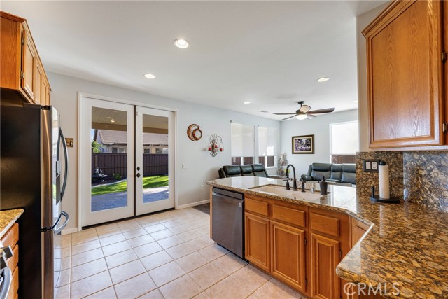 Welcome to Four Seasons, a premier 55 resort-style community! If you're looking for perfection, this is the house for you. This popular floor plan - Craftsman 2, features 3 bedrooms (one is currently being used as an office), 2 baths and a sizeable living room. This home is a showstopper and has been beautifully maintained down to the last detail. With newer Luxury Vinyl Plank flooring throughout, newer electric window blinds, freshly painted throughout, newer base boards throughout, beautiful shelving in front bedroom, newer Alumawood patio cover, new garage door opener, new Samsung washer, the list goes on. The kitchen offers granite counters, tile flooring, pull-out drawers in kitchen and bathrooms, all appliances have been updated. Kitchen offers an open concept looking out onto the family room with a separate formal dining room that connects seamlessly to the kitchen. The master suite features jetted corner tub, two closets, dual sinks and separate walk-in shower. Enjoy the spacious indoor laundry room which provides plenty of storage cabinets. The backyard offers amazingly low maintenance complete with solid Alumawood patio cover and fan w/ light, stamped concrete patio, artificial turf, beautiful yet low-maintenance landscaping with drip system out back and sprinklers in front. This peaceful setting creates the perfect place for relaxation and a cup of java. Save big on your electric bill with solar panels that offer a low monthly lease (under 90/mo). This is truly a turn-key home! The Lodge Clubhouse offers a 10-acre recreational facility that includes a wide variety of amenities from art classes to yoga, bridge, billiards, and more. Outdoor amenities include a large pool, spa, BBQ/picnic area, putting green, golf practice area, horseshoes, shuffleboard, bocce ball, basketball, and lighted tennis courts, pickleball, and badminton. Indoors, you can take advantage of the gym, library, billiards and card room, craft room, and a large ballroom for events. Nearby, you'll find a major shopping mall with excellent restaurants and movie theaters. Stroll through Old Town Temecula, with its charming downtown as well as award-winning wineries, all just a few miles away. Come and discover the active, enjoyable lifestyle waiting for you at Four Seasons Murrieta!
