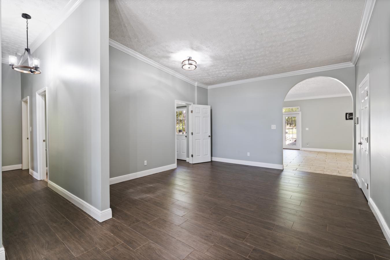 Welcome to your private haven on two pristine acres! Enjoy a beautifully cleared front yard and a tranquil, wooded backdrop. This 3-bed, 2-bath home features an extra-long driveway and an oversized garage, perfectly blending country privacy with modern convenience. Inside, a bright, open-concept floor plan with Luxury Vinyl flooring flows into an entertainer’s dream kitchen.
