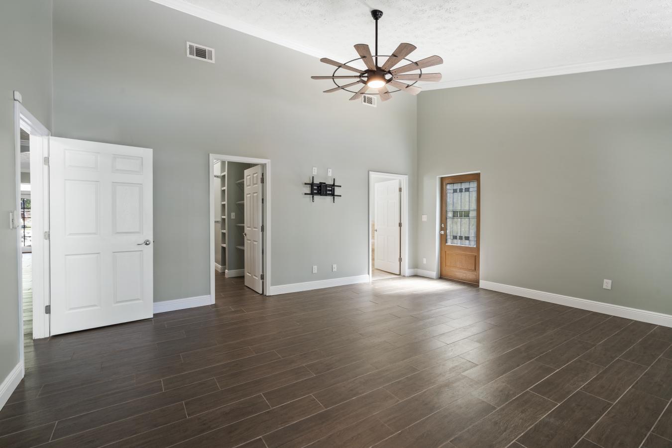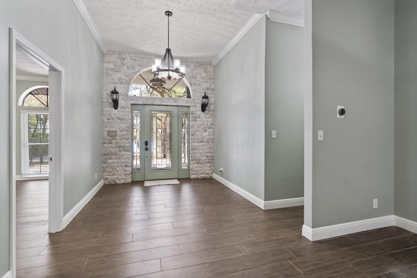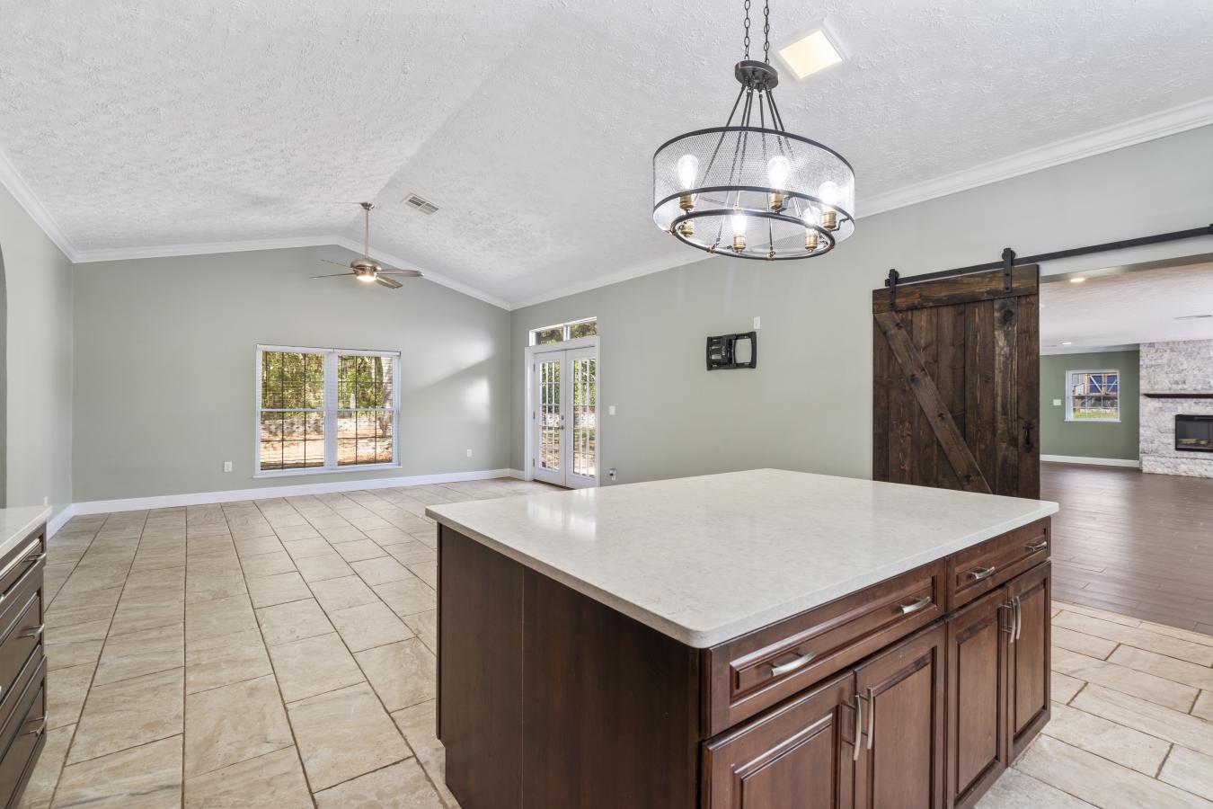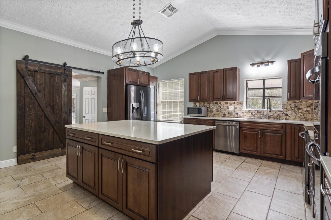 Experience peaceful country living just steps from Cowpen Lake. This solid concrete block residence is set on 2.4 private acres with no HOA restrictions, offering over 3,000 square feet of comfortable living space. Over 120,000 in recent upgrades provide peace of mind, including a new metal roof, gutters, interior and exterior paint, modern lighting, and a 30x40 metal workshop/garage equipped with 240-volt power--ideal for projects, storage, or recreational use. Inside, the home features expansive living areas highlighted by wood-look tile flooring and a striking stone-accented entryway. The spacious primary suite boasts elevated ceilings and a luxurious bath complete with a jetted tub, marble walk-in shower, dual vanities, and a generous walk-in closet. The kitchen is designed for both function and entertaining, featuring custom cabinetry, stainless steel appliances, triple ovens, a vent hood, and a large center island. Additional updates include a newer septic system, upgraded well.