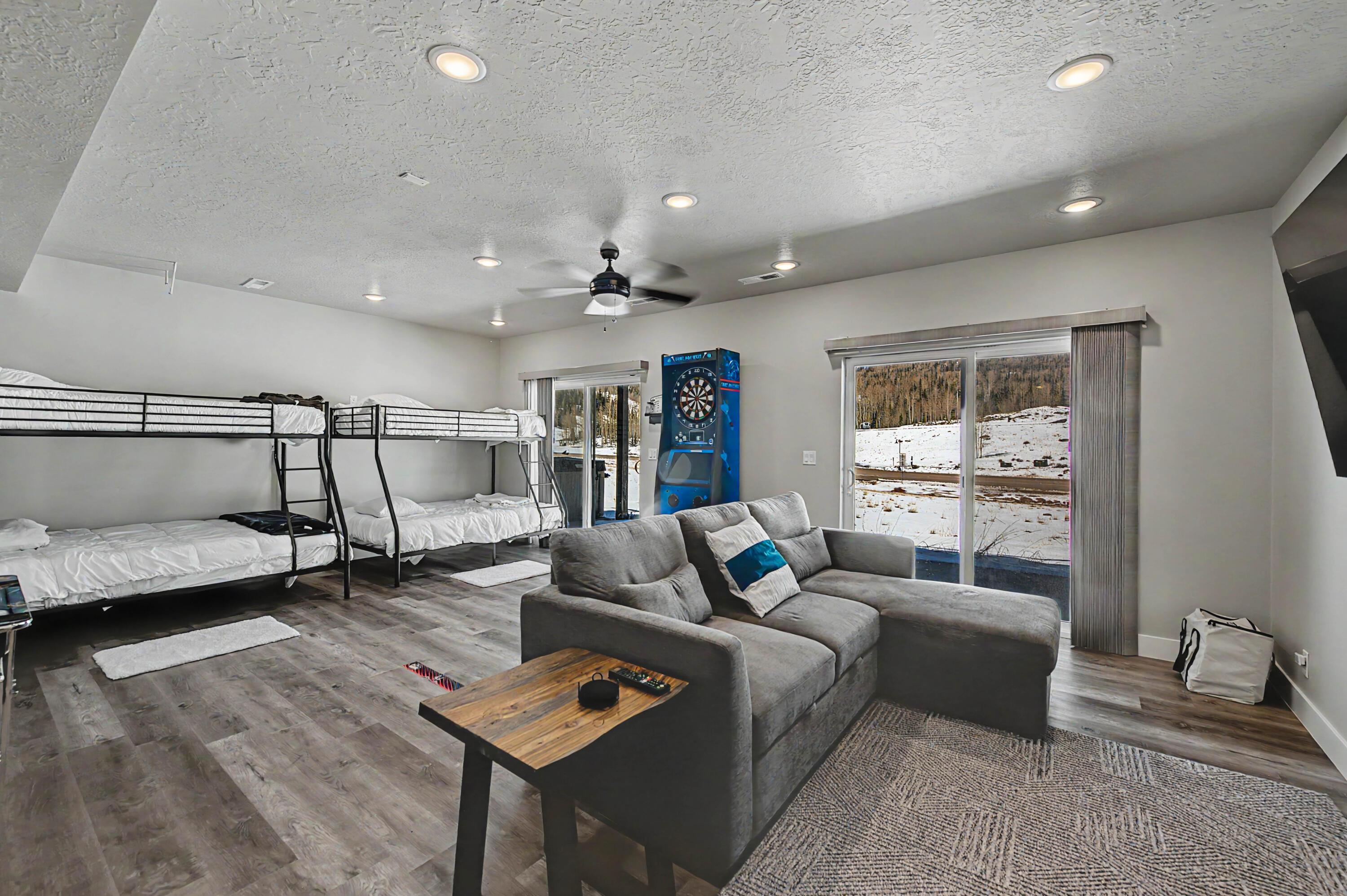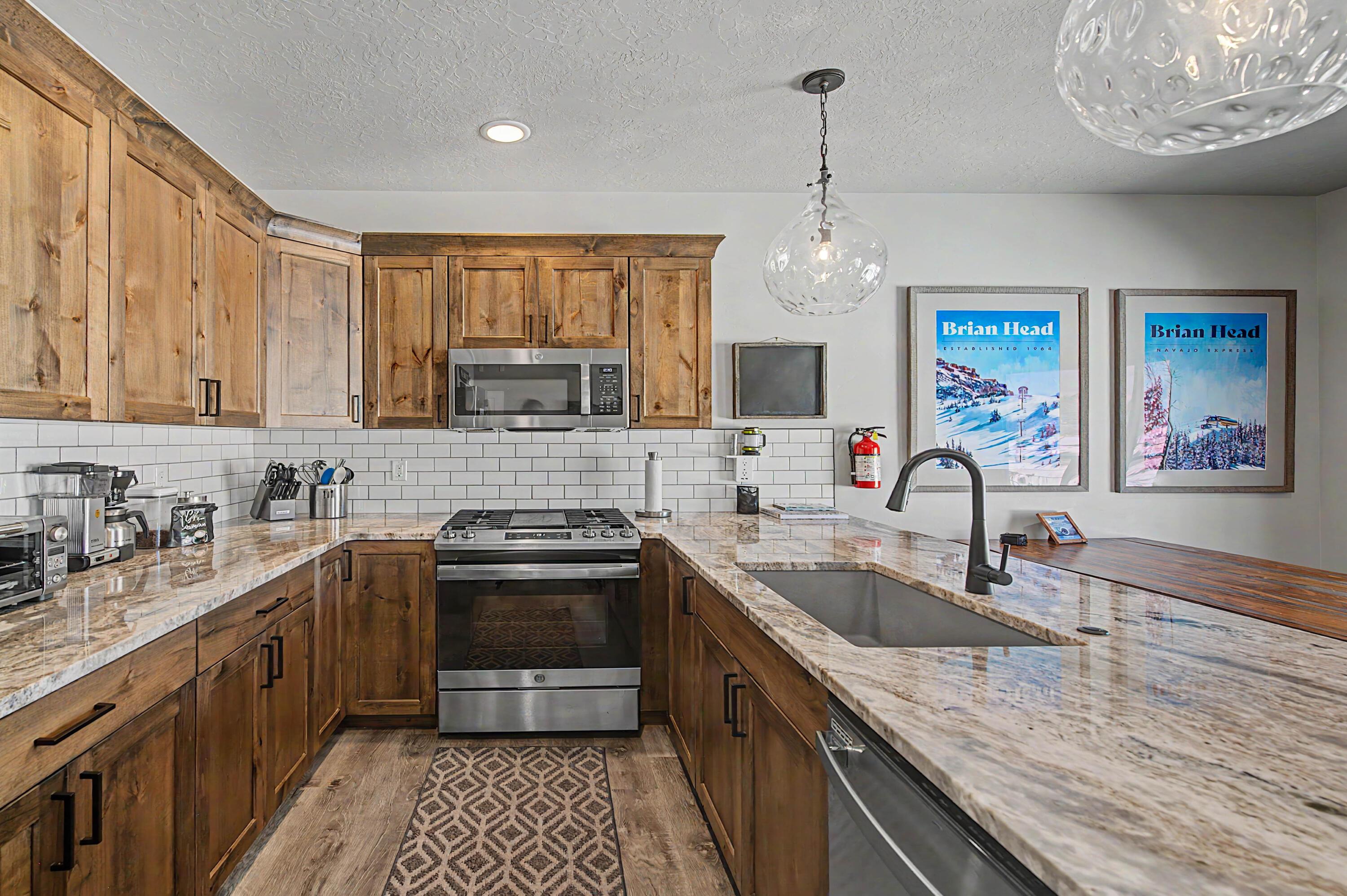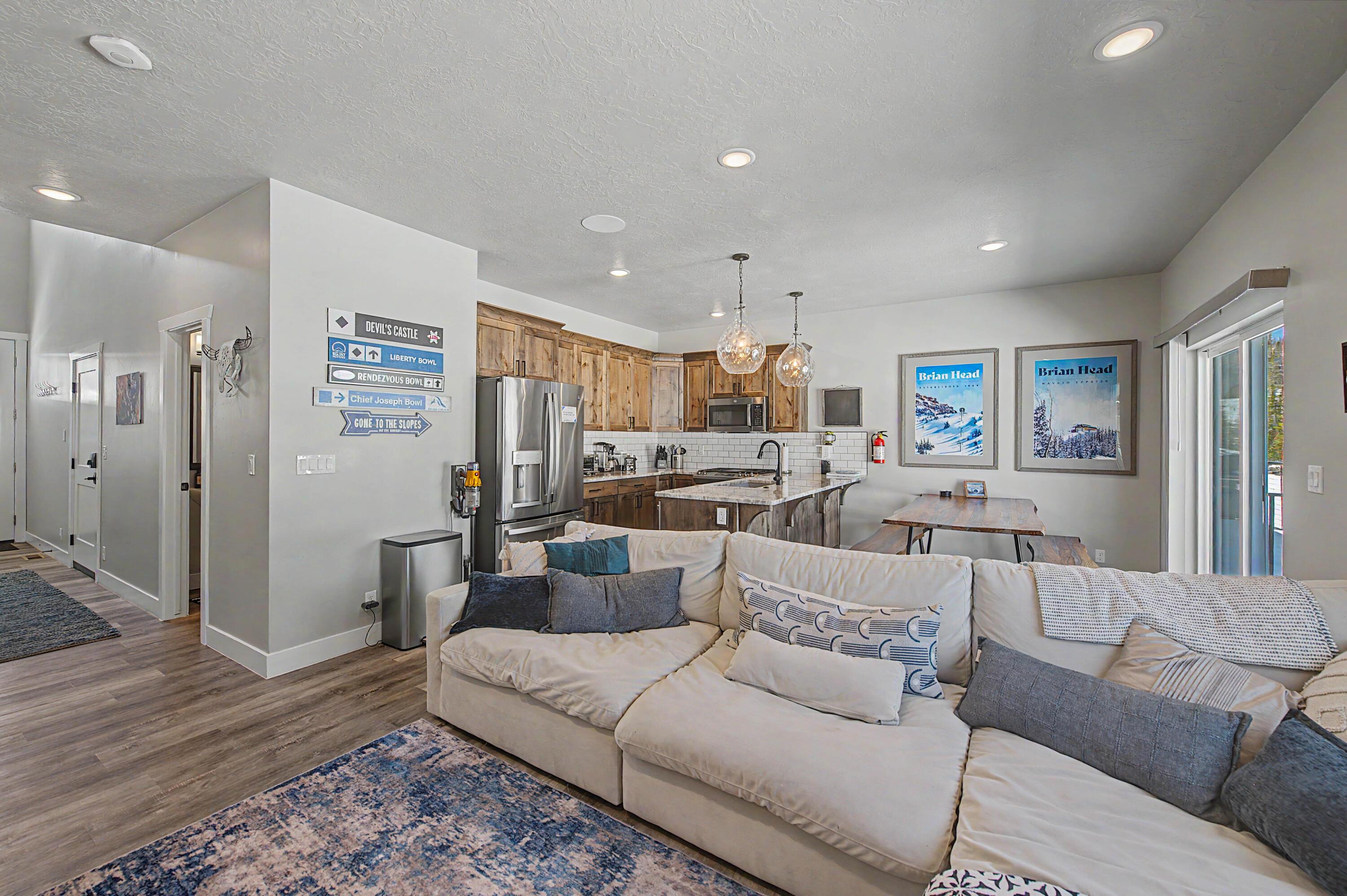 Crooked River Town Homes are one of the the newest Town Homes(TH) in Brian Head. Built in 2021 these finely upgraded Town Homes are nestled in the Brian Head Mtns. across from Navajo Lodge (high speed quad chair) with views of the surrounding trees and mtns. Features include large basmt plumbed for bath & kitchenette, LVT flooring, upgraded carpet, on demand water heater, granite countertops, SS appliances, vaulted ceilings, upgraded insulation,gas fireplace, covered patio wired for hot tub & deck off main level, AC & pre-wired for security & distributed audio. High end Furniture included along with 3 Arcades for the kids or family entertainment. This TH has 2 bunk beds(full & Twin) in the basement for the kids. Do not miss out on this rare opportunity to own one of the newest and most modern Town Home in Brian Head. HOA dues include:private road maint., snow removal, exterior maintenance(excluding windows & doors), reserves.