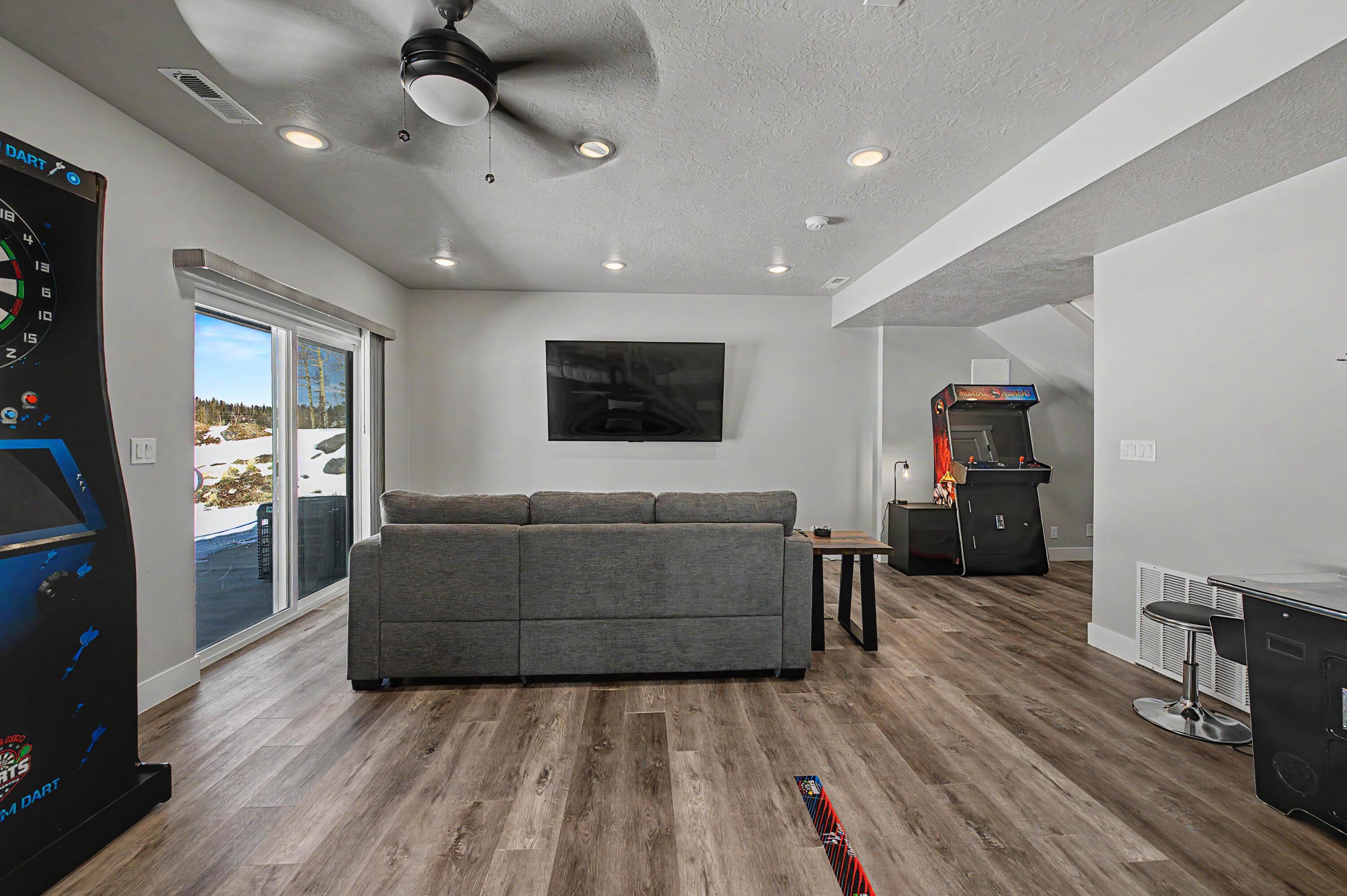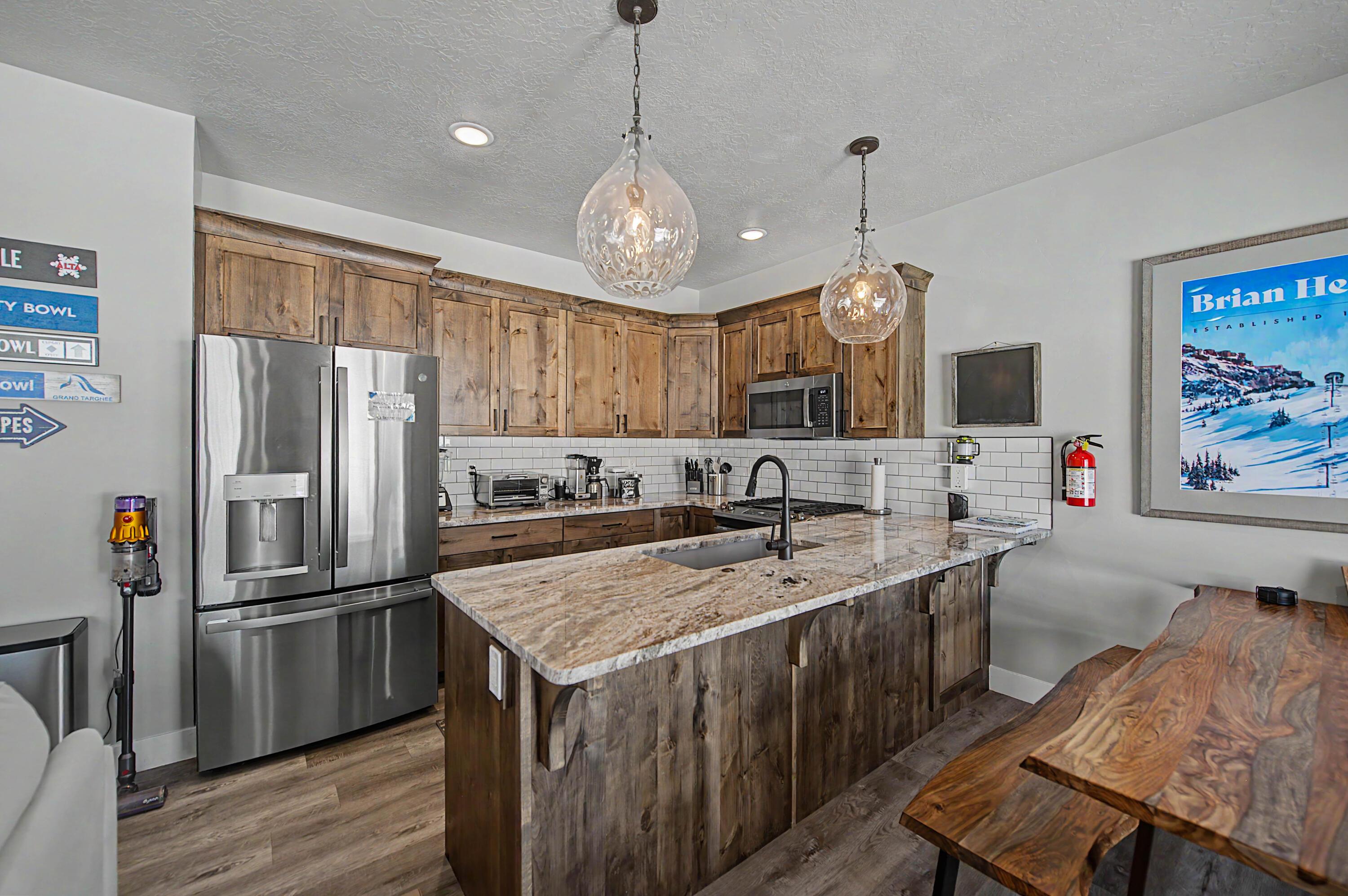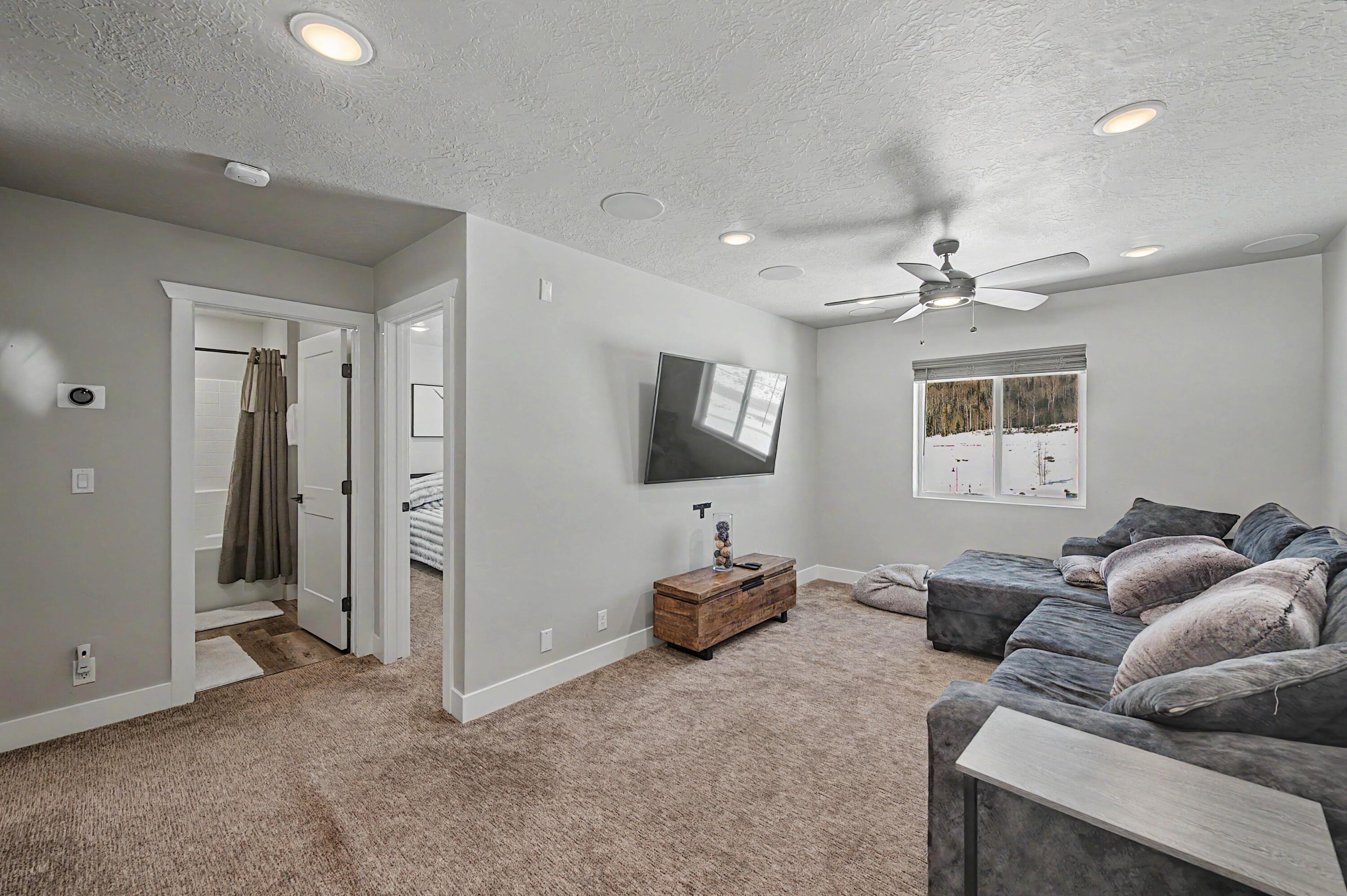 Crooked River Town Homes are one of the the newest Town Homes(TH) in Brian Head. Built in 2021 these finely upgraded Town Homes are nestled in the Brian Head Mtns. across from Navajo Lodge (high speed quad chair) with views of the surrounding trees and mtns. Features include large basmt plumbed for bath & kitchenette, LVT flooring, upgraded carpet, on demand water heater, granite countertops, SS appliances, vaulted ceilings, upgraded insulation,gas fireplace, covered patio wired for hot tub & deck off main level, AC & pre-wired for security & distributed audio. High end Furniture included along with 3 Arcades for the kids or family entertainment. This TH has 2 bunk beds(full & Twin) in the basement for the kids. Do not miss out on this rare opportunity to own one of the newest and most modern Town Home in Brian Head. HOA dues include:private road maint., snow removal, exterior maintenance(excluding windows & doors), reserves.