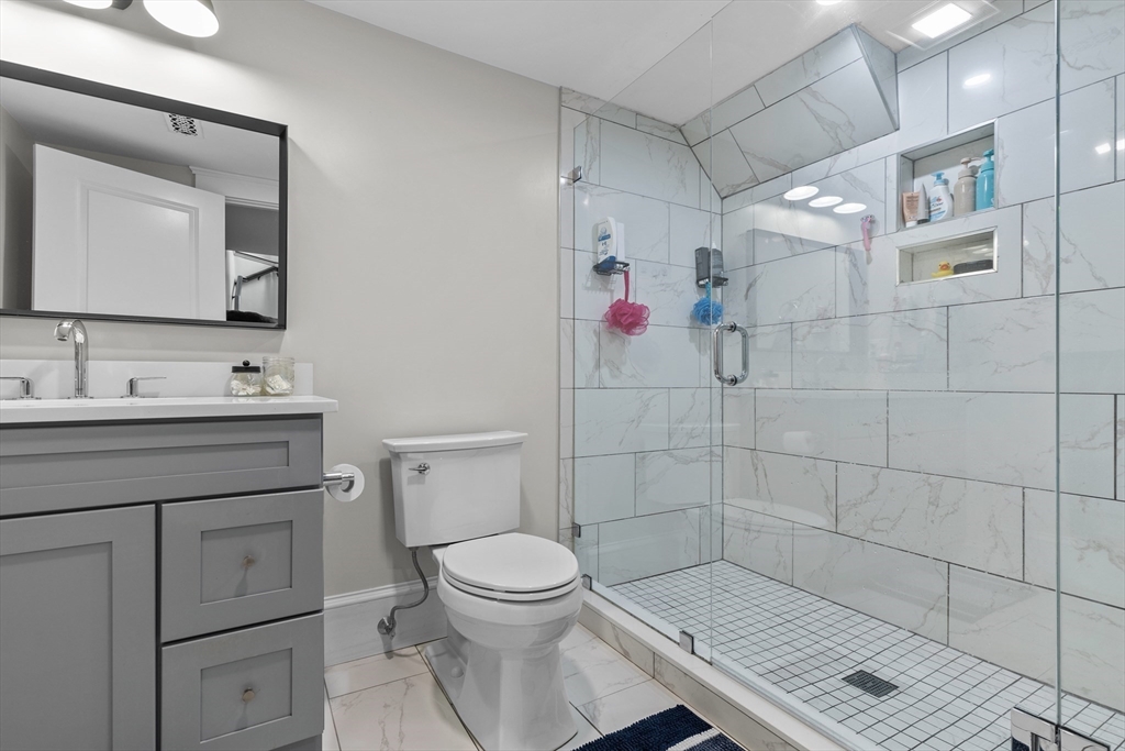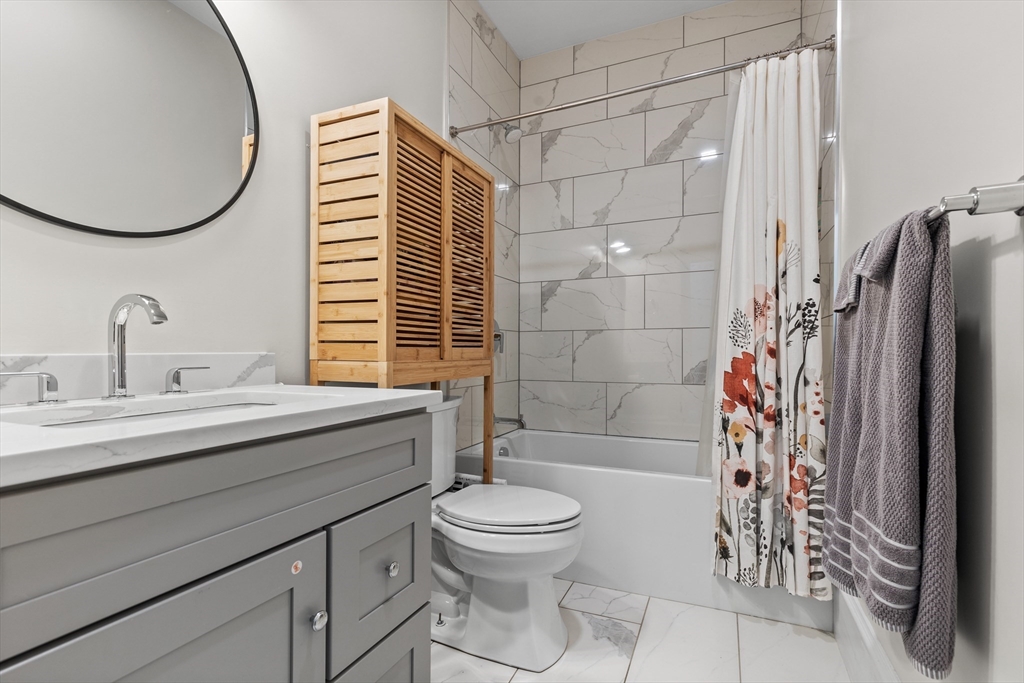 Experience modern living in this beautiful condo at 199 Trenton Street! This sophisticated home features two floors of living space with an open concept floor plan, stunning kitchen finishes with quartz countertops, full slab backsplash, double high cabinetry and GE appliances. This two bedroom, two bath features a floor-through primary suite equipped with study nook, 75”x6 walk-in closet with custom cabinetry, and primary bath with a walk-in shower. The upper level bedroom is highlighted by a sun-filled bay window. Custom blinds installed throughout. Additional amenities include in-unit washer/dryer, Central HVAC, Smart thermostat, shared green space, and low condo fee. Nestled in the vibrant Eagle Hill neighborhood, just minutes away from two MBTA Blue Line stops, trendy restaurants, and Bremen Street Park, making it easy to explore all that East Boston has to offer. Experience the perfect blend of luxury, style, and convenience.
