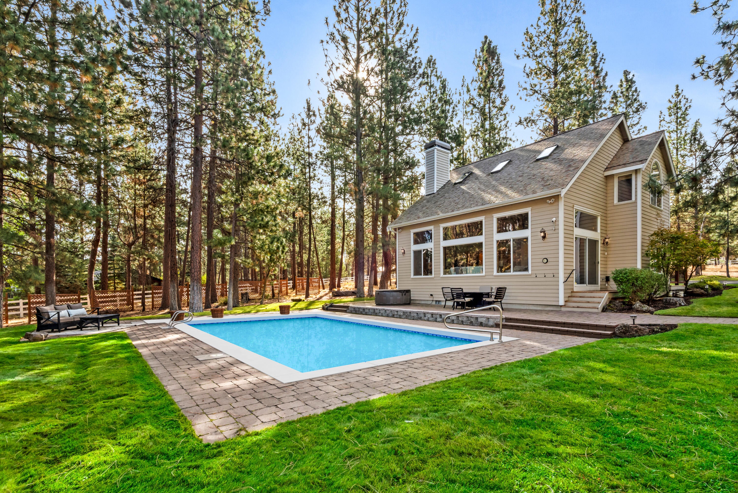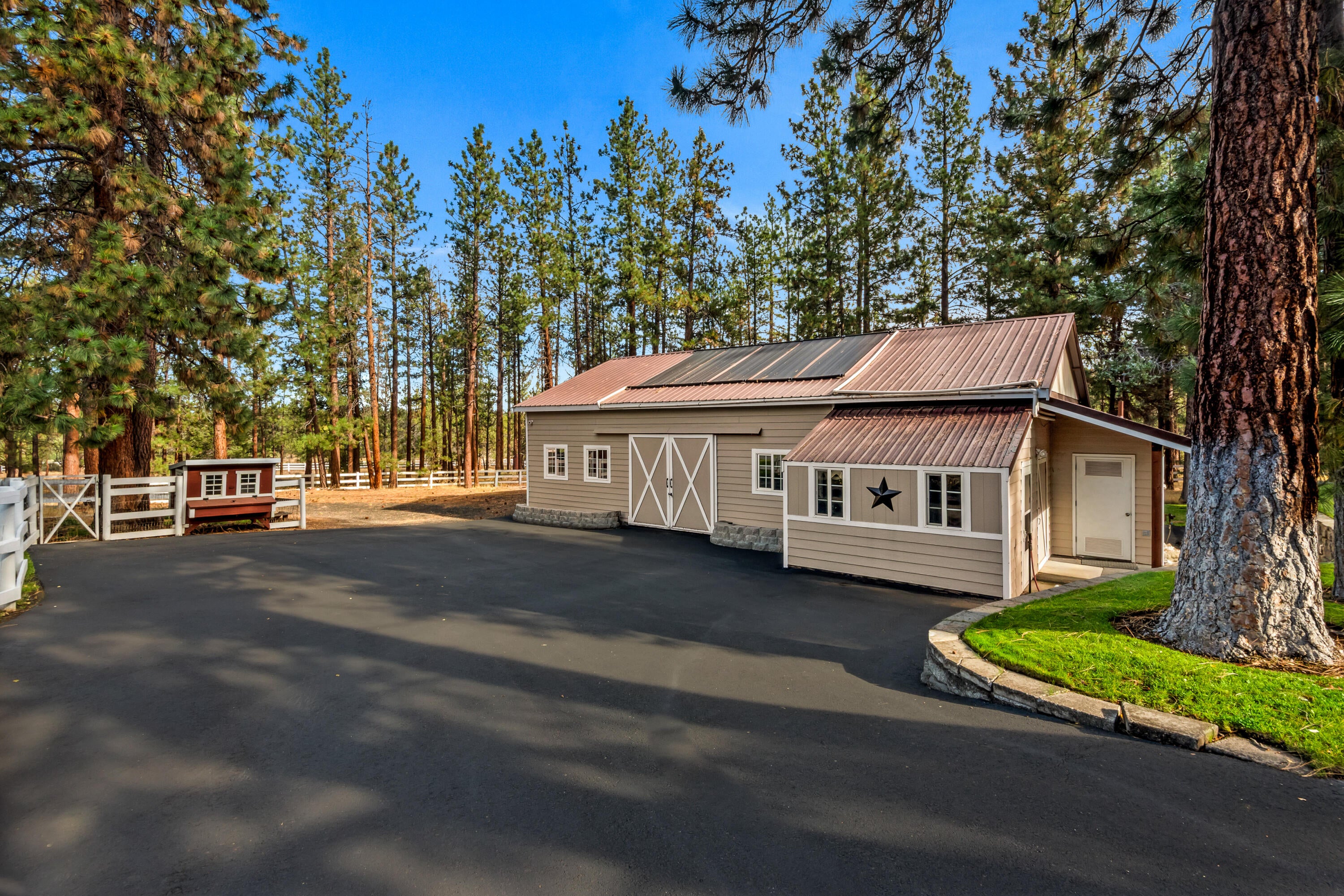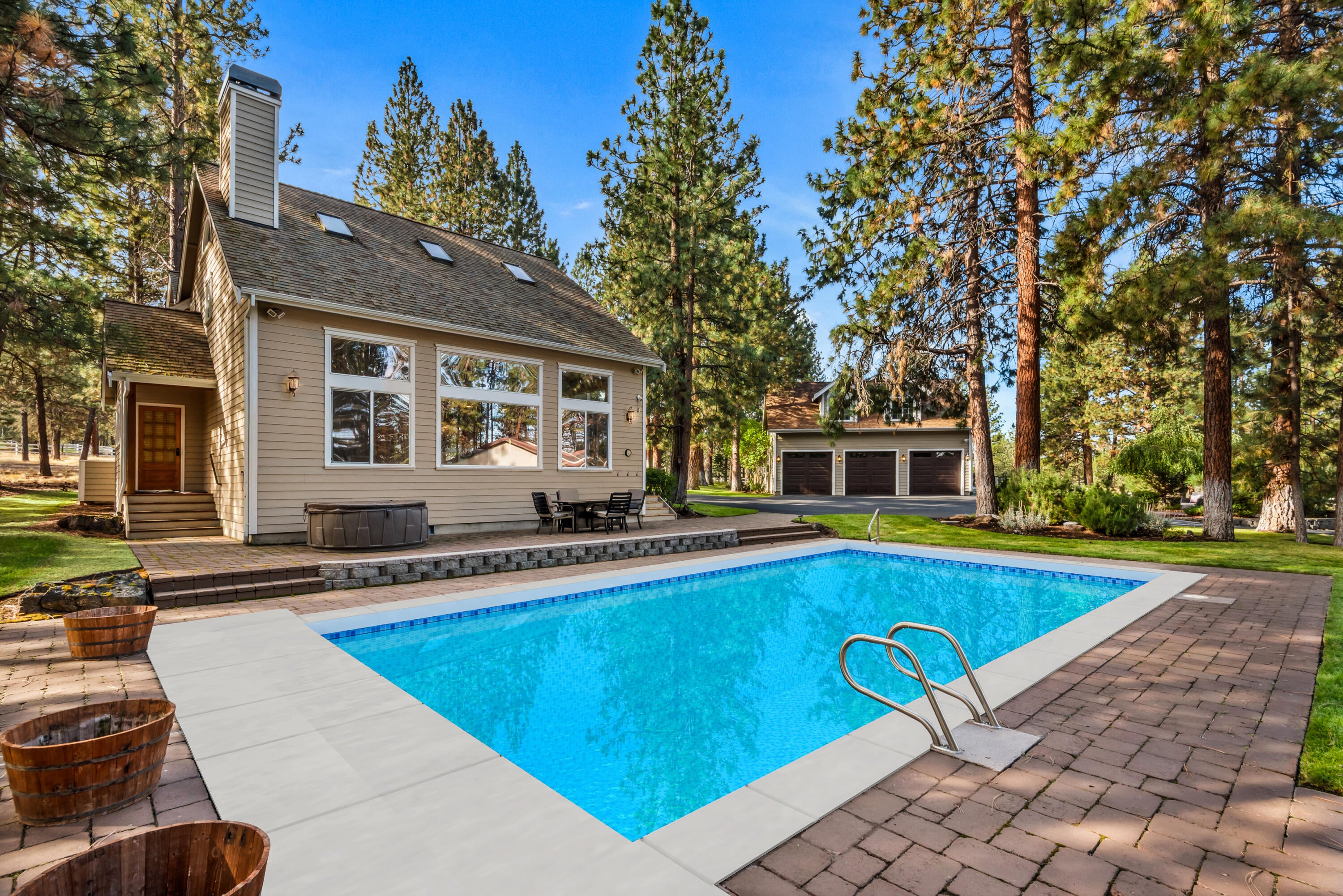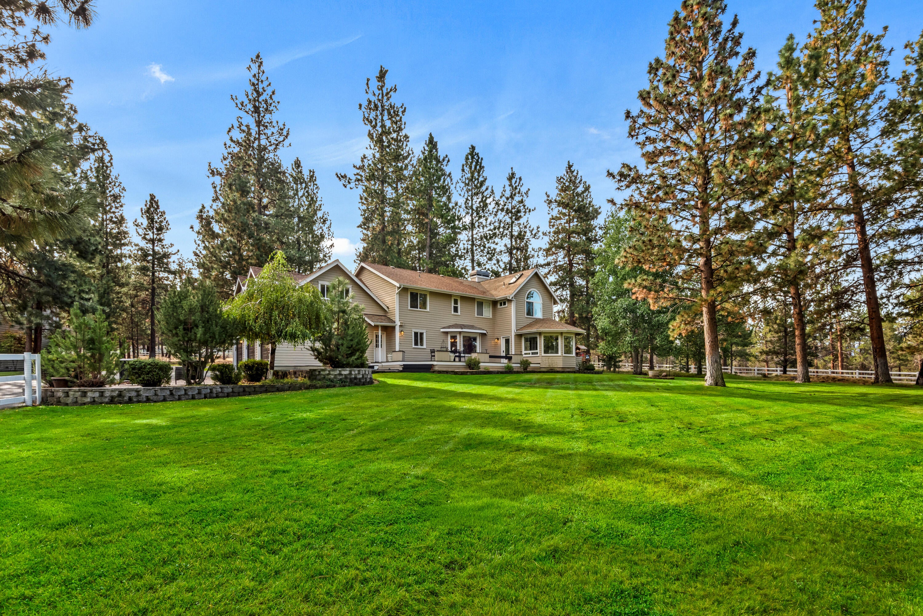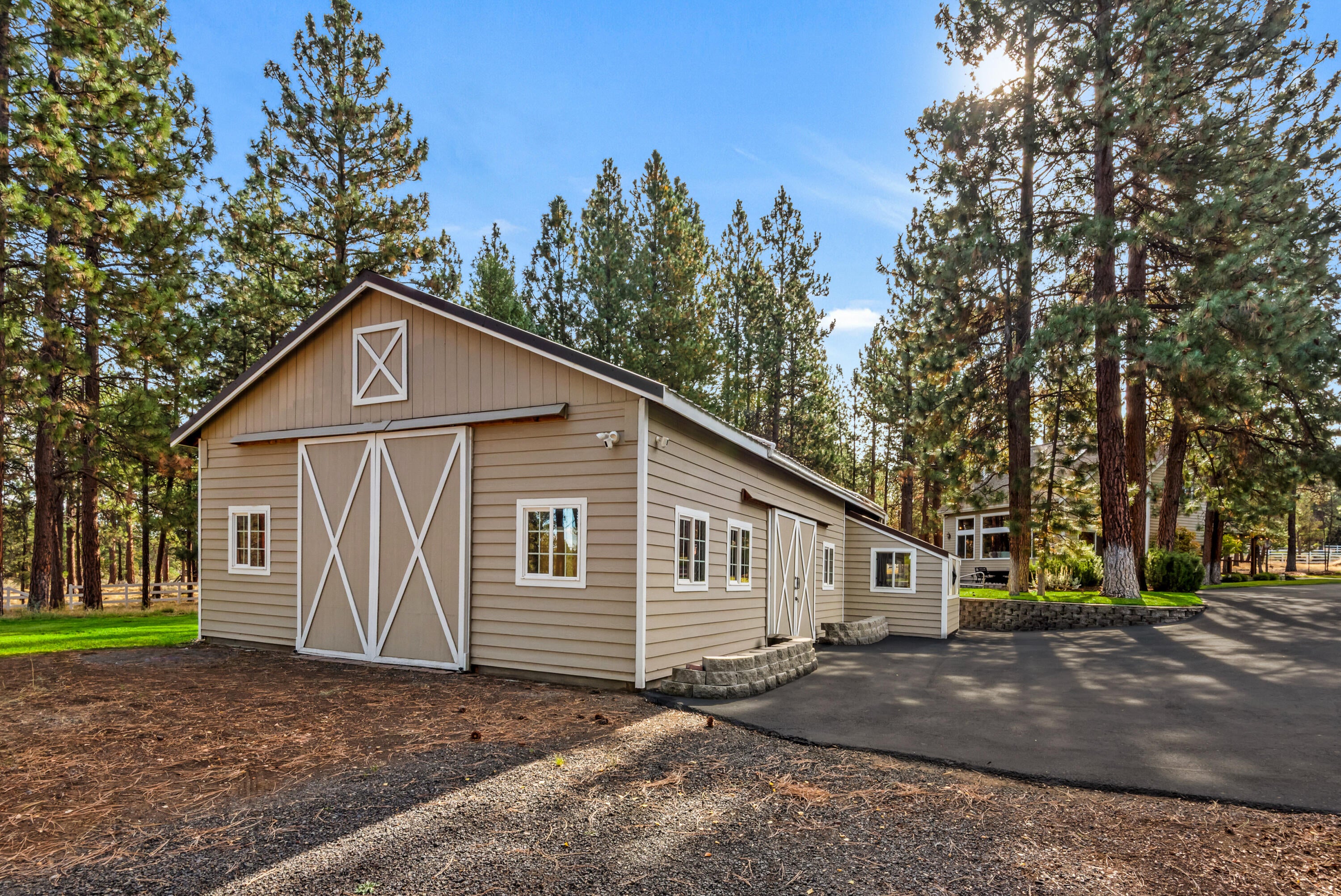 Rich in character and charm, this 4,615 sq ft home captures sweeping mountain views and offers five bedrooms, a dedicated office and two wood-burning fireplaces. At its center, a beautifully appointed chefs kitchen open to the living and dining, designed for both daily living and effortless entertaining. The primary suite is a serene retreat, featuring a gas fireplace and spa-inspired bath. Enjoy spectacular sunrises and sunsets from the covered front porch and expansive back decks. A 2,071 sq ft secondary structure lives like a private mountain sanctuary, complete with four rooms, a full bath, kitchenette, and a dramatic floor-to-ceiling river rock fireplace. The great room evokes a true lodge feel, with expansive windows framing the ponderosas. Additional amenities include a saltwater pool, infrared sauna, four-stall barn and shop. Bring your animals--this 5.85-acre property is fully fenced and cross-fenced with a gated entry, all just 2.3 miles from downtown Sisters.
