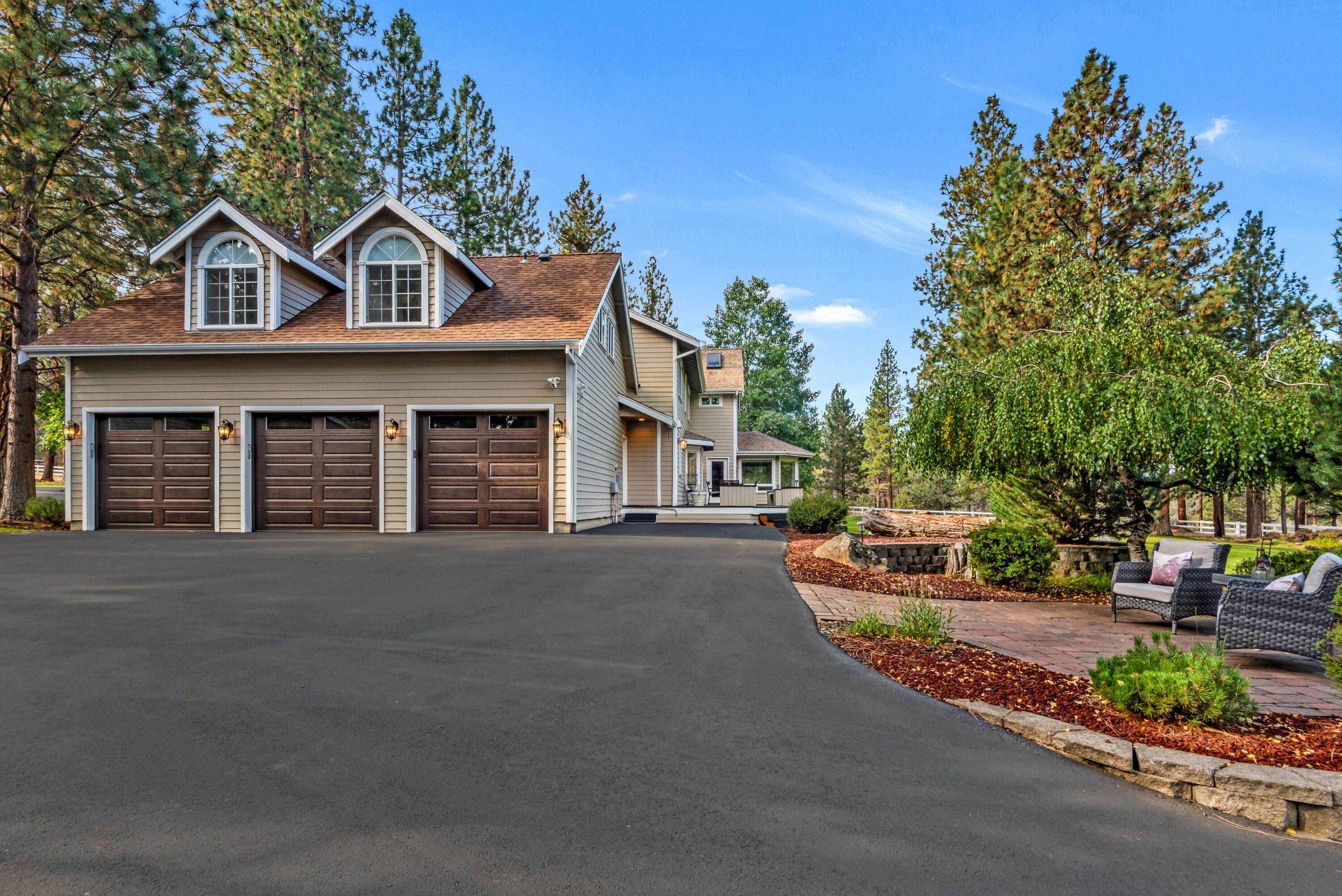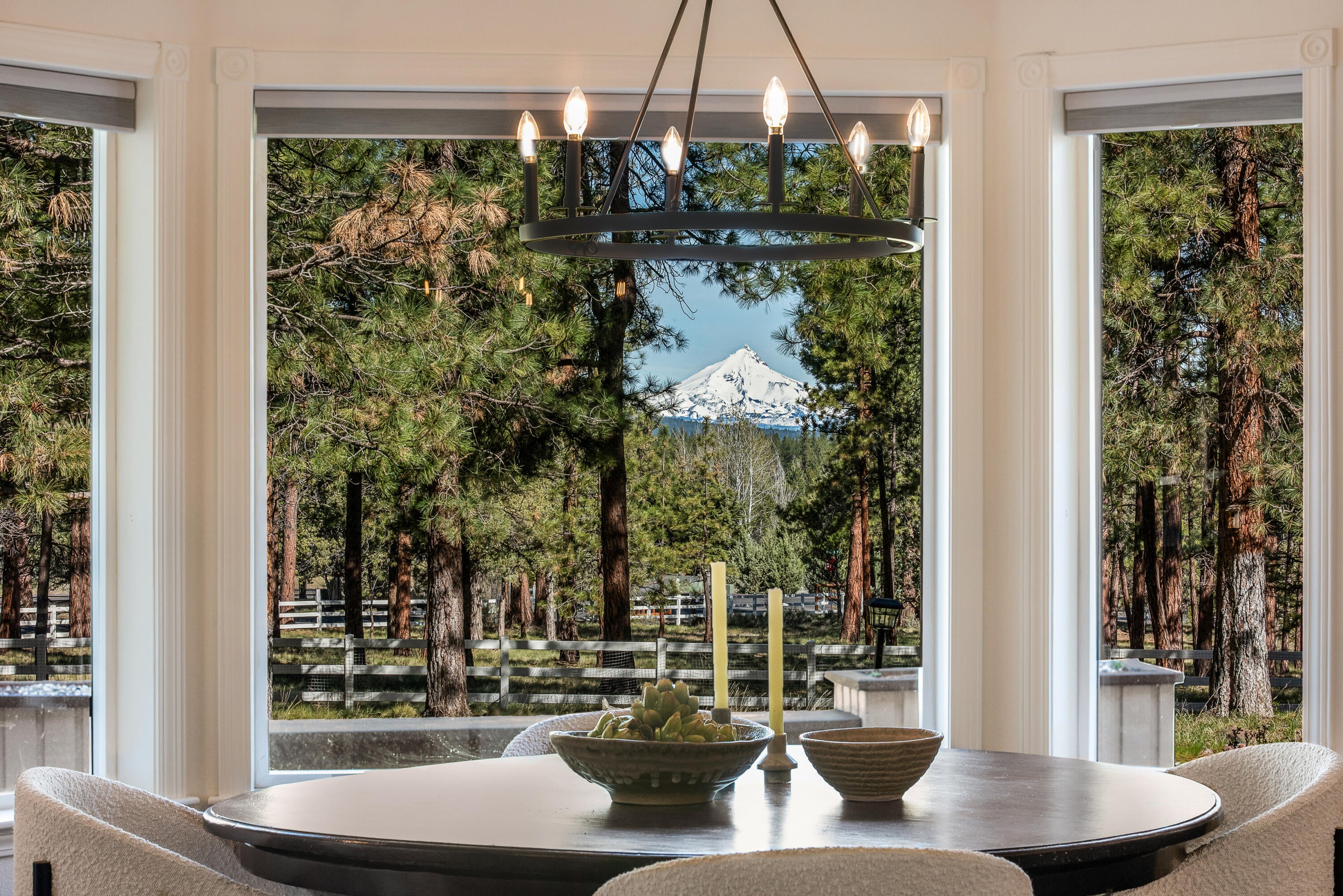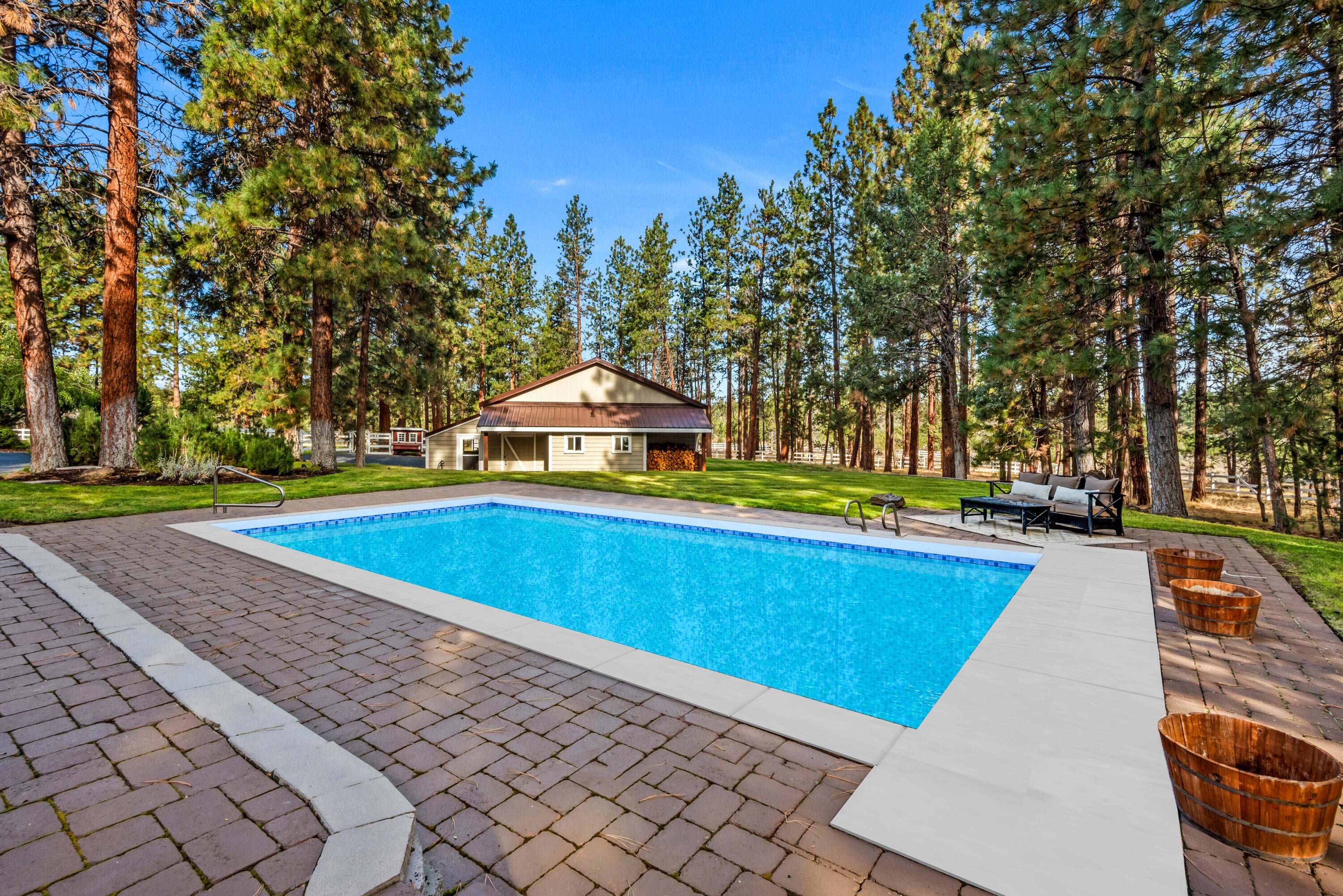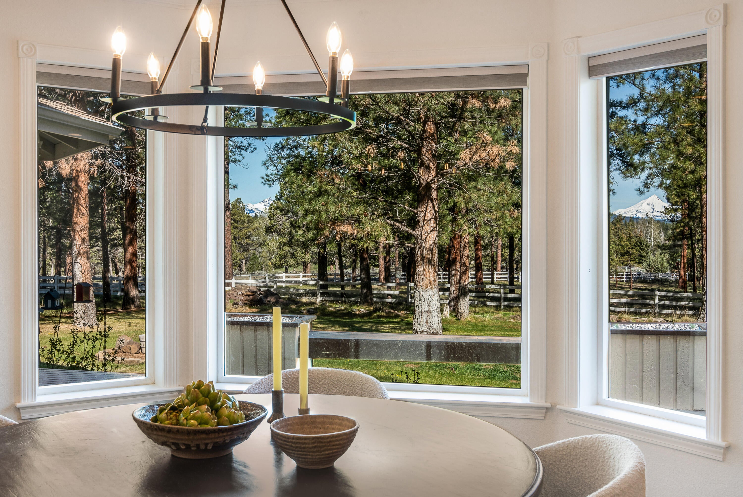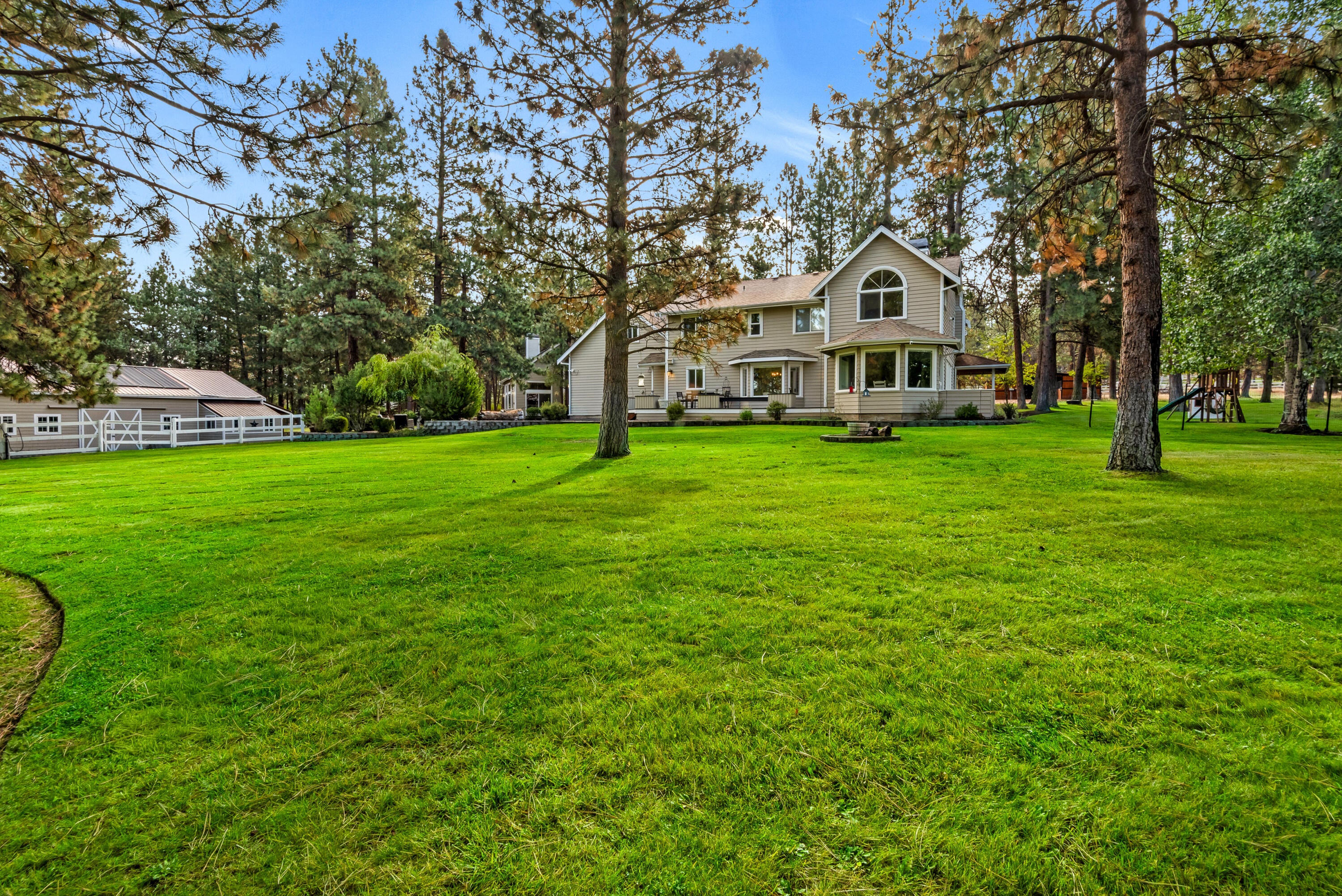 Rich in character and charm, this 4,615 sq ft home captures sweeping mountain views and offers five bedrooms, a dedicated office and two wood-burning fireplaces. At its center, a beautifully appointed chefs kitchen open to the living and dining, designed for both daily living and effortless entertaining. The primary suite is a serene retreat, featuring a gas fireplace and spa-inspired bath. Enjoy spectacular sunrises and sunsets from the covered front porch and expansive back decks. A 2,071 sq ft secondary structure lives like a private mountain sanctuary, complete with four rooms, a full bath, kitchenette, and a dramatic floor-to-ceiling river rock fireplace. The great room evokes a true lodge feel, with expansive windows framing the ponderosas. Additional amenities include a saltwater pool, infrared sauna, four-stall barn and shop. Bring your animals--this 5.85-acre property is fully fenced and cross-fenced with a gated entry, all just 2.3 miles from downtown Sisters.