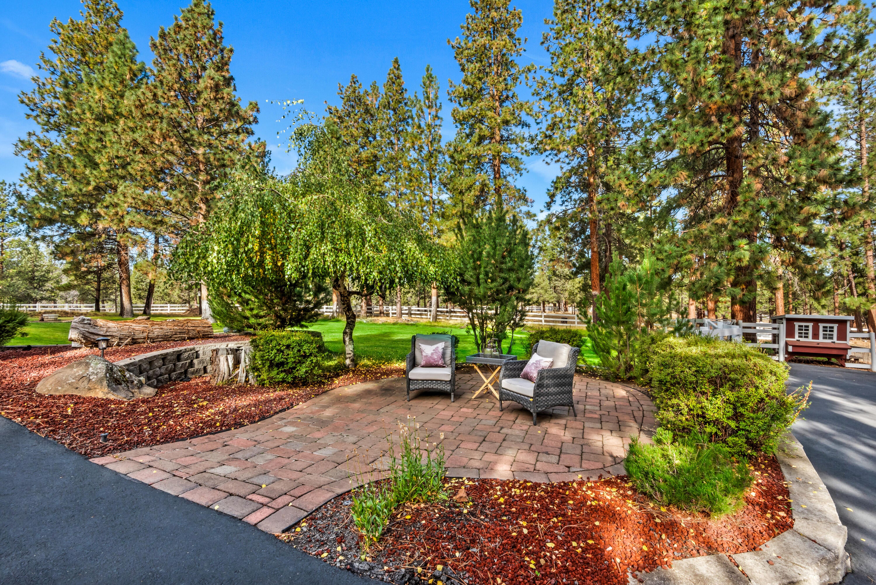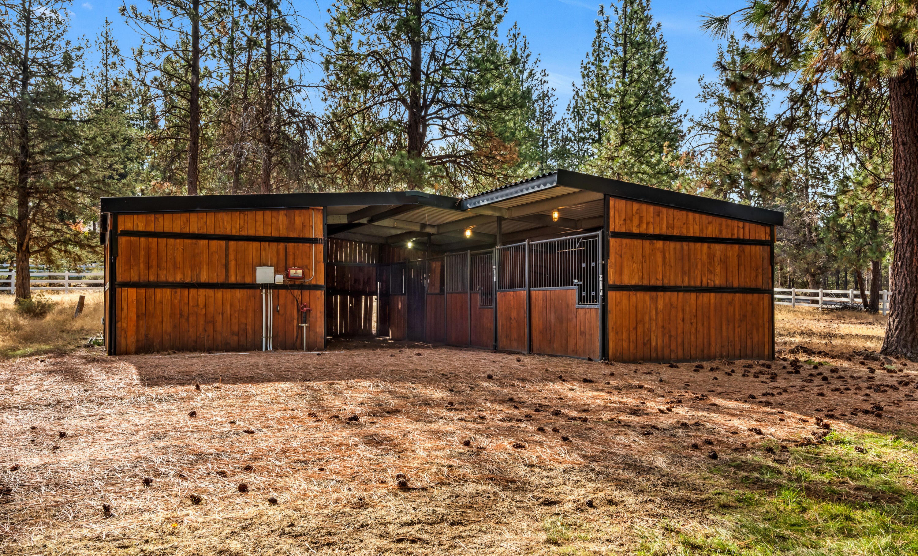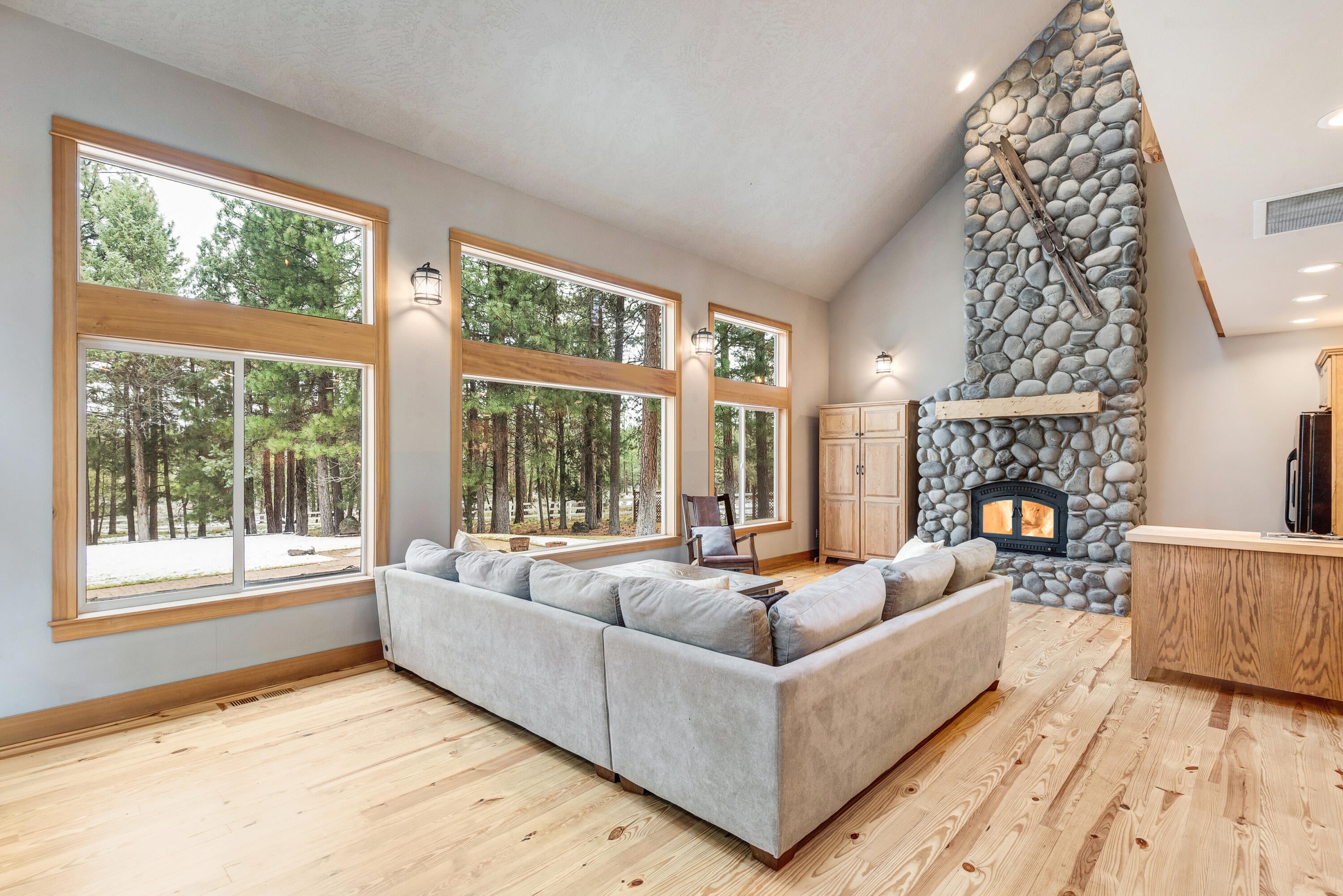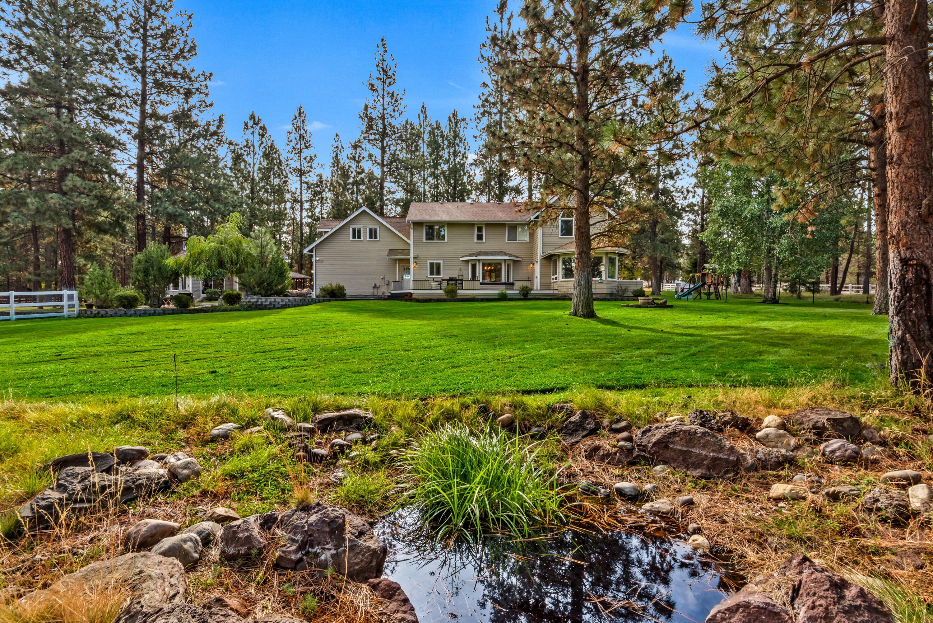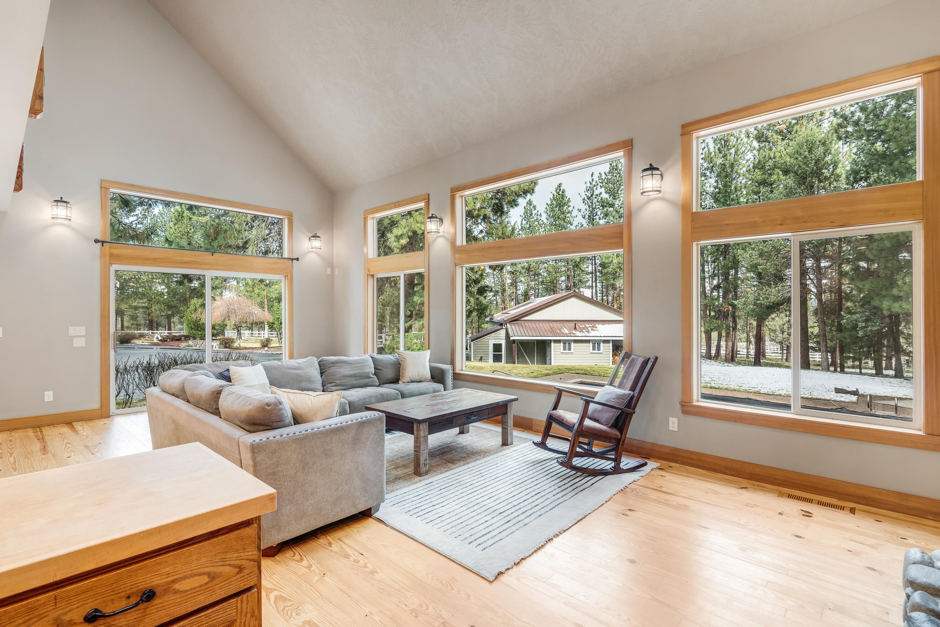 Rich in character and charm, this 4,615 sq ft home captures sweeping mountain views and offers five bedrooms, a dedicated office and two wood-burning fireplaces. At its center, a beautifully appointed chefs kitchen open to the living and dining, designed for both daily living and effortless entertaining. The primary suite is a serene retreat, featuring a gas fireplace and spa-inspired bath. Enjoy spectacular sunrises and sunsets from the covered front porch and expansive back decks. A 2,071 sq ft secondary structure lives like a private mountain sanctuary, complete with four rooms, a full bath, kitchenette, and a dramatic floor-to-ceiling river rock fireplace. The great room evokes a true lodge feel, with expansive windows framing the ponderosas. Additional amenities include a saltwater pool, infrared sauna, four-stall barn and shop. Bring your animals--this 5.85-acre property is fully fenced and cross-fenced with a gated entry, all just 2.3 miles from downtown Sisters.