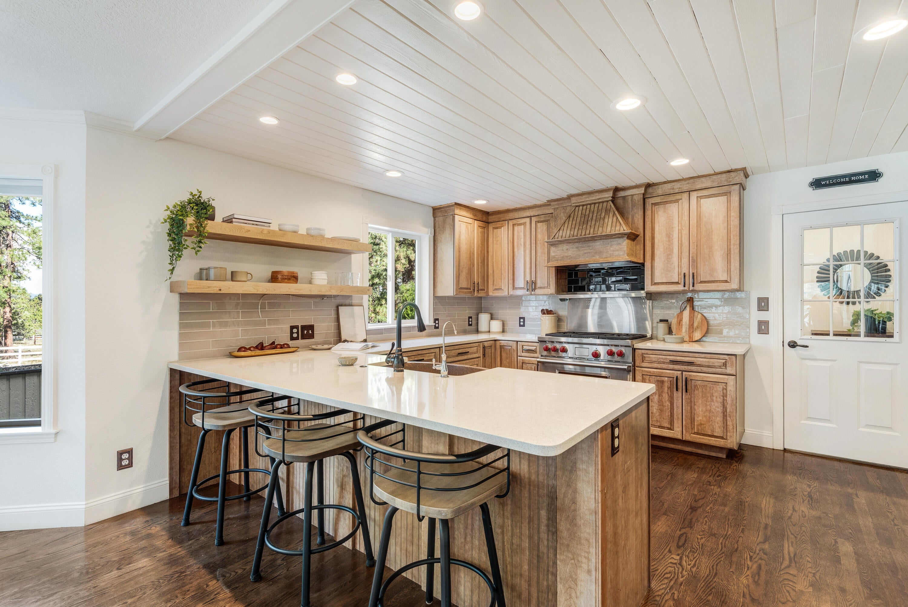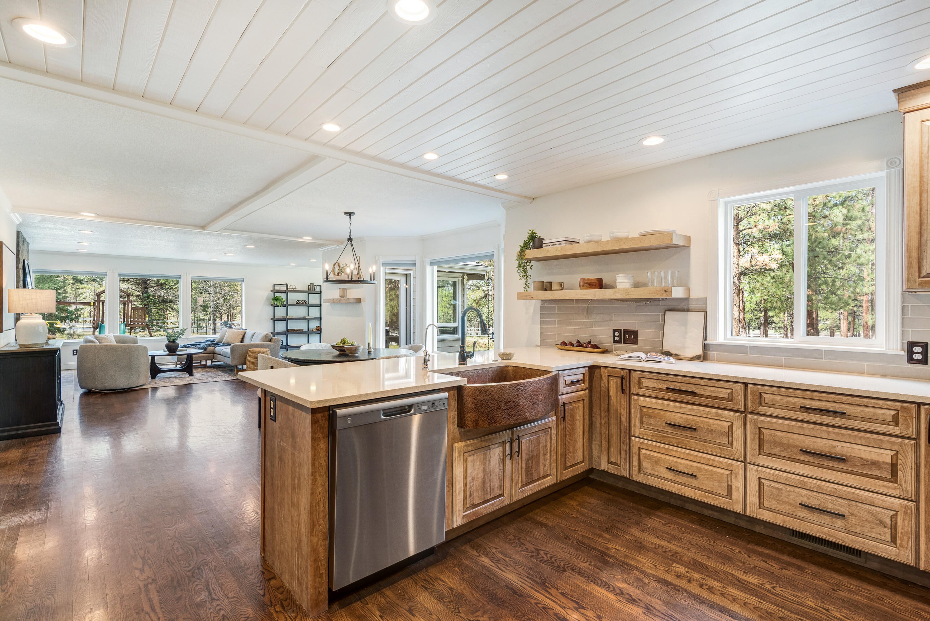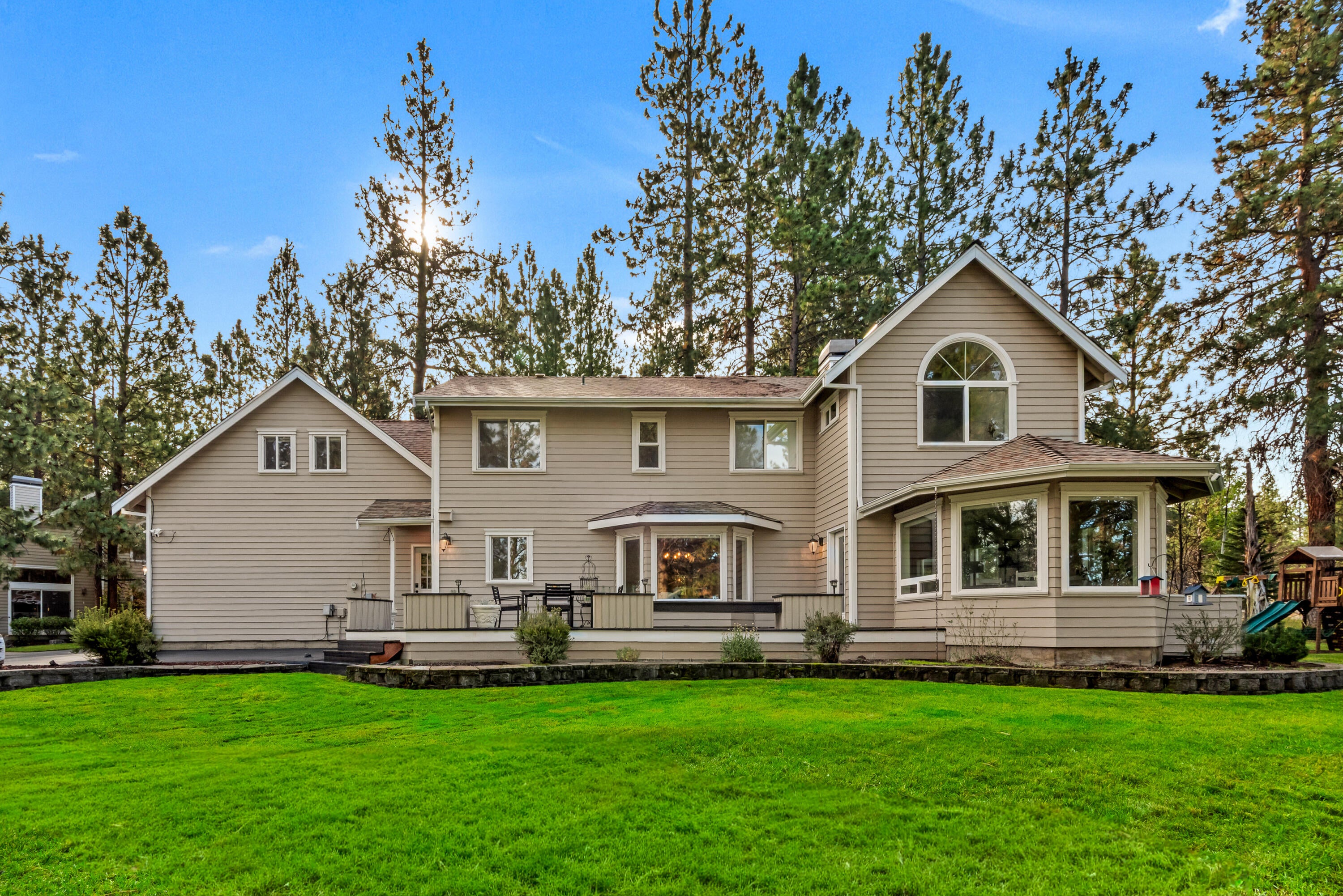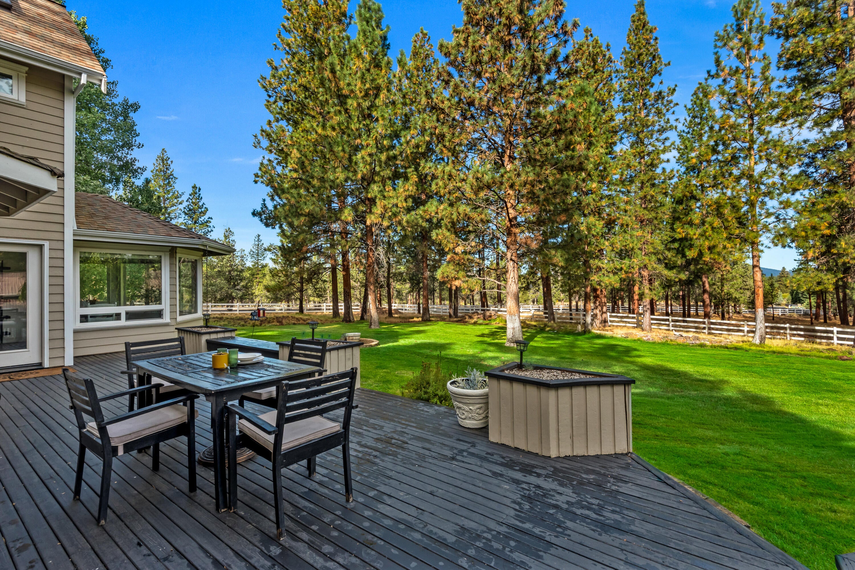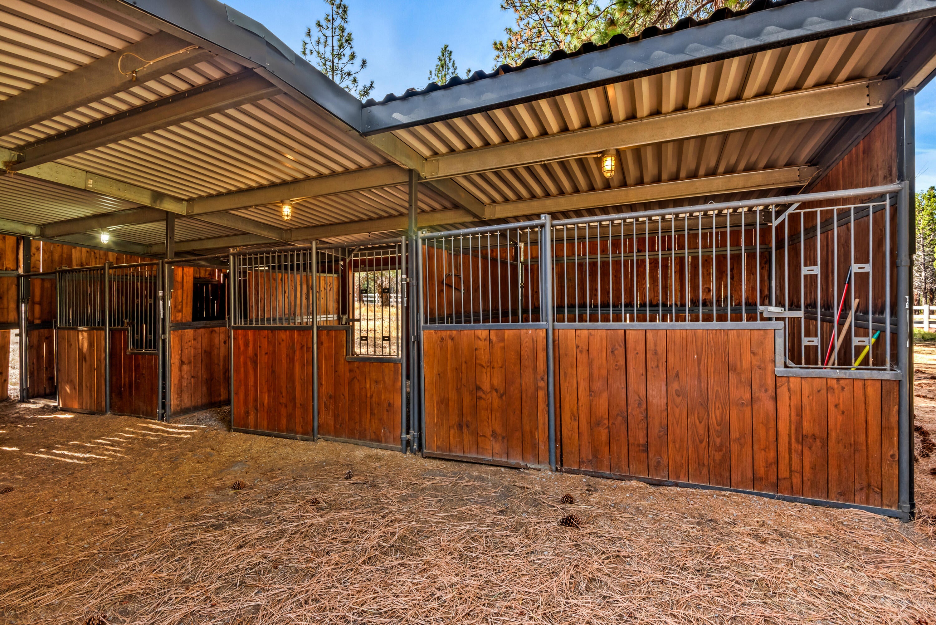 Rich in character and charm, this 4,615 sq ft home captures sweeping mountain views and offers five bedrooms, a dedicated office and two wood-burning fireplaces. At its center, a beautifully appointed chefs kitchen open to the living and dining, designed for both daily living and effortless entertaining. The primary suite is a serene retreat, featuring a gas fireplace and spa-inspired bath. Enjoy spectacular sunrises and sunsets from the covered front porch and expansive back decks. A 2,071 sq ft secondary structure lives like a private mountain sanctuary, complete with four rooms, a full bath, kitchenette, and a dramatic floor-to-ceiling river rock fireplace. The great room evokes a true lodge feel, with expansive windows framing the ponderosas. Additional amenities include a saltwater pool, infrared sauna, four-stall barn and shop. Bring your animals--this 5.85-acre property is fully fenced and cross-fenced with a gated entry, all just 2.3 miles from downtown Sisters.