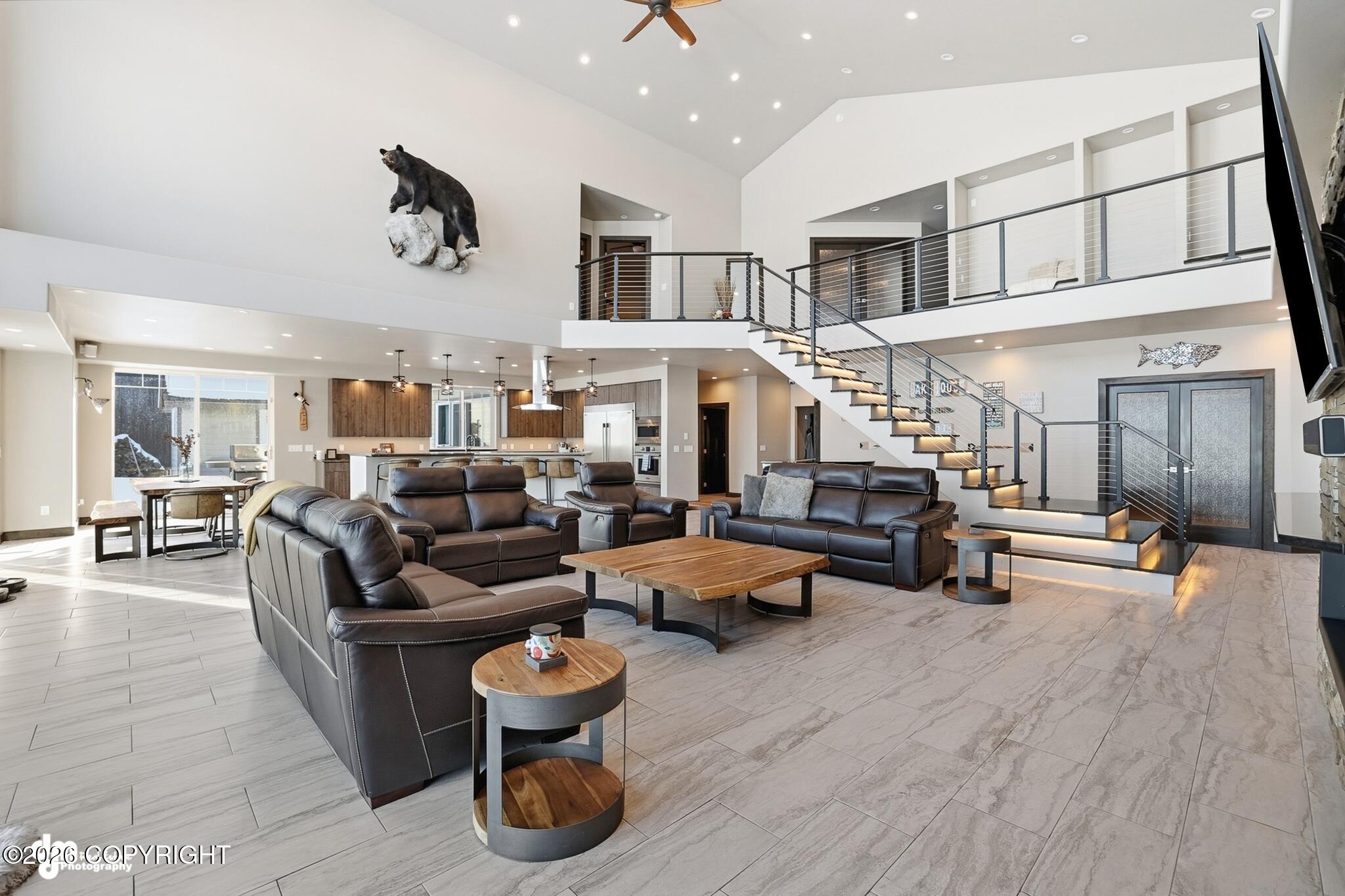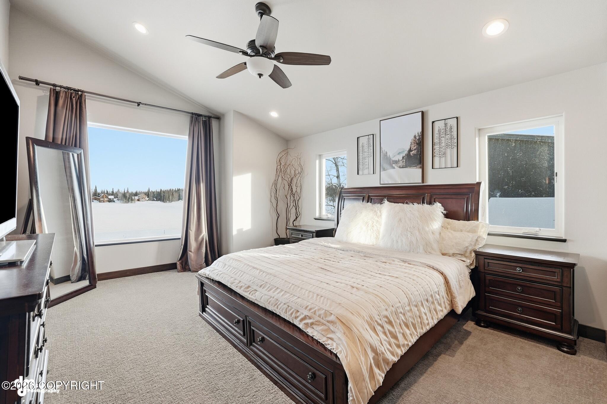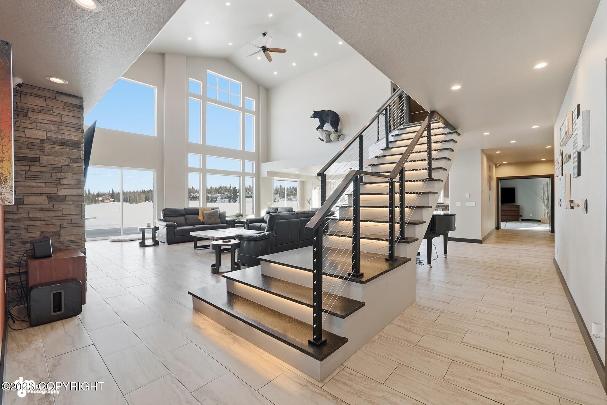 Experience luxury lakefront living on the shores of Longmere Lake in this 100% custom-built home offering 5,676 SF with 5 bedrooms, 6 baths-including 3 private ensuites. This home blends elevated comfort with unforgettable views. The primary suite on the main level is a true retreat, showcasing killer views & a spa-inspired bath complete with walk-in double shower, soaking tub & walk-in closet. The open-concept living, dining & kitchen areas are flooded with natural light & framed by breathtaking lake views. The living room boasts 24' vaulted ceilings, custom granite stairs with chiseled edges & a stunning full-height stone fireplace that anchors the space with warmth and style. The chef's kitchen is equally remarkable, featuring high-end features, bar top seating, 2 dishwashers, a side-by-side full freezer & refrigerator unit, an induction cooktop, and an oversized walk-in pantry. Enjoy over 1,400 SF of deck with a hot tub, plus a 960 SF private dock for ultimate lakefront living. Additional features include a main-floor office with French doors, spacious great room with wet bar, two laundry rooms, attached 4-car garage & a detached 1,320 SF shop with 12' x14' overhead doors. Exceptional craftsmanship, storage galore & premier lakefront lifestyle - this home is truly special!