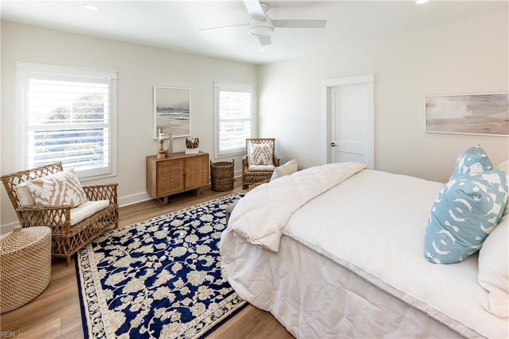 If you are looking for a North End Home Oceanside with a view of the Ocean this is it ! This beautiful home built in 2024 barely lived in does offer tons of special features & finishes filled with Coastal Style for living at the Beach. Offers: View of Ocean from 3rd Floor Living, Kitchen, Dining with wonderful Deck that runs along the full 3rd floor, Elevator that services all 3 floors, oversize garage with storage, plenty of storage, Wood Flooring throughout, each Bedroom has their own Full Bath, beautifully done with custom plantation shutters and the best part it feels totally private because it lives like a single family home being only attached by an exterior storage shed. Nice backyard space with lush landscaping, outdoor shower, and easy access to the beach, makes this like new home with a view of the Ocean a speculator find. If you are looking for a fabulous Oceanside Beach Home for more upscale, tastefully done and offers great features this is your new beach home!