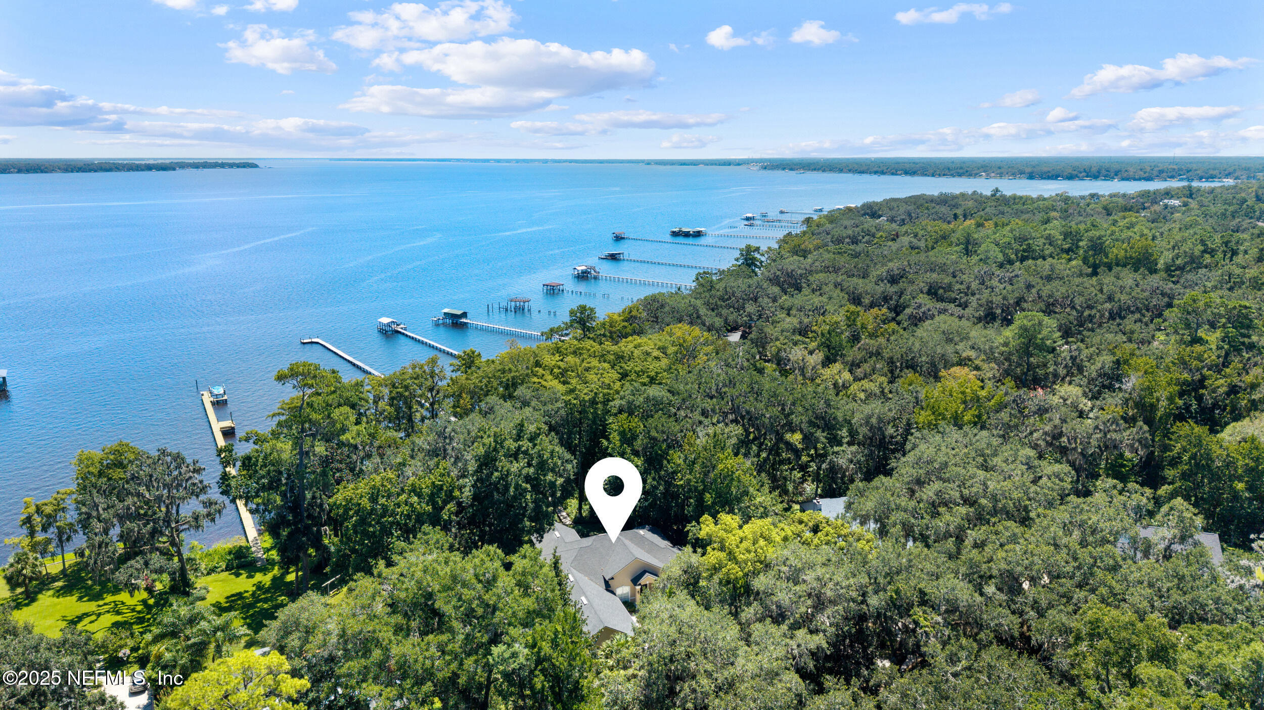 Discover luxury riverside living in this beautifully renovated 4-bedroom, 2.5-bath home on the St. Johns River in desirable Fleming Island. Spanning approximately 3,478 square feet, this residence offers an open, airy floor plan bathed in natural light, with breathtaking river views framed by a large steel-reinforced window in the living room. Boating enthusiasts will love the expansive 600-foot dock providing direct river access for effortless days on the water. Car collectors and hobbyists will appreciate the massive 5-car garage, which includes an air-conditioned section prepped for easy conversion into an in-law suite, workshop, or additional living space. The chef-inspired kitchen features modern finishes, generous counter space, and an ideal layout for entertaining family and friends. A practical, large mudroom handles everyday needs, while the spacious bedrooms offer comfort and privacy. The primary suite is a true retreat, complete with a spa-like ensuite bathroom for