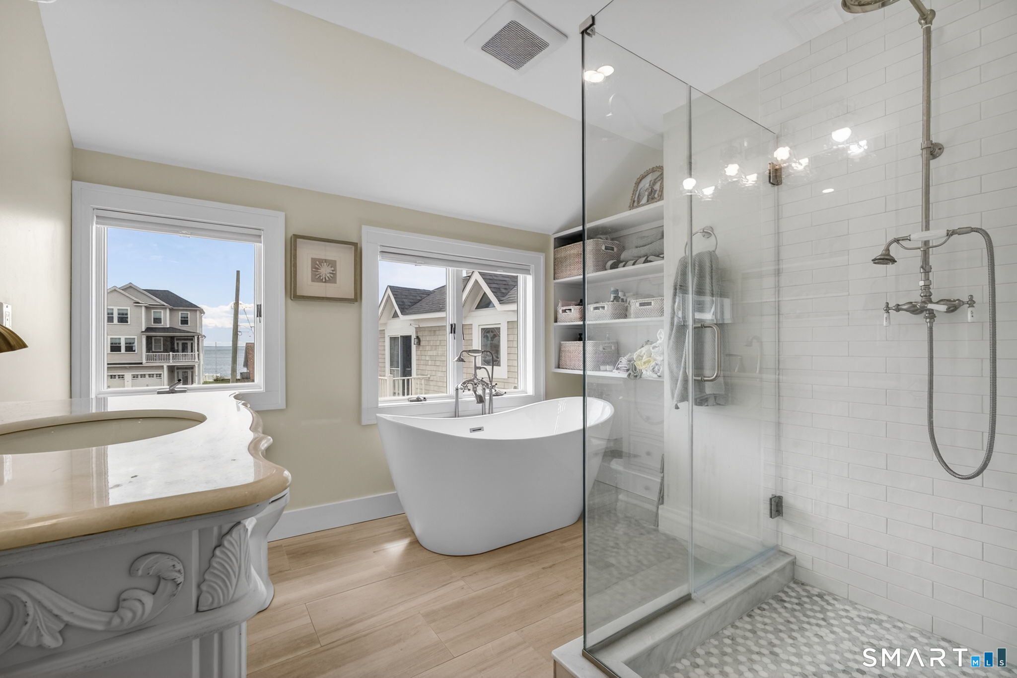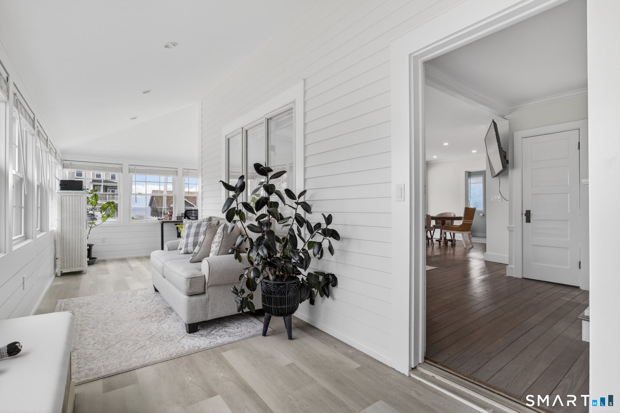 Experience sophisticated shoreline living at 31 Sols Point Road in Clinton, a private coastal retreat set on a corner double lot with sweeping 180-degree panoramic water views from sunrise to sunset. This fully renovated luxury home showcases elevated design, refined finishes, and timeless coastal style blended with modern comfort. The main residence features 2 bedrooms and 2 baths plus a sunroom offering flexible space for a private office, lounge, or guest accommodations, all designed to capture natural light and serene water views. The chefs kitchen is appointed with quartzite countertops, Bosch appliances, and custom detailing, blending elegance with functionality. Interior highlights include shiplap accents, designer finishes, and open airy layout ideal for seamless indoor-outdoor living and entertaining. Recent upgrades include a new roof, remodeled bathrooms, newly installed HVAC, on-demand hot water, and freshly painted interior and exterior. Trex decking creates a waterfront outdoor dining space with panoramic views of Clinton Point and the breakwater. Enjoy deeded beach rights just outside your door for kayaking, paddleboarding, boating, fishing, or shoreline relaxation. A detached 2-car garage with carriage house includes a guest apartment with water views, ideal for extended stays or flexible living arrangements. Convenient access to marinas, beaches, shopping, dining, golf & I95. 2 hours from New York City & Boston this Clinton CT shoreline luxury living.