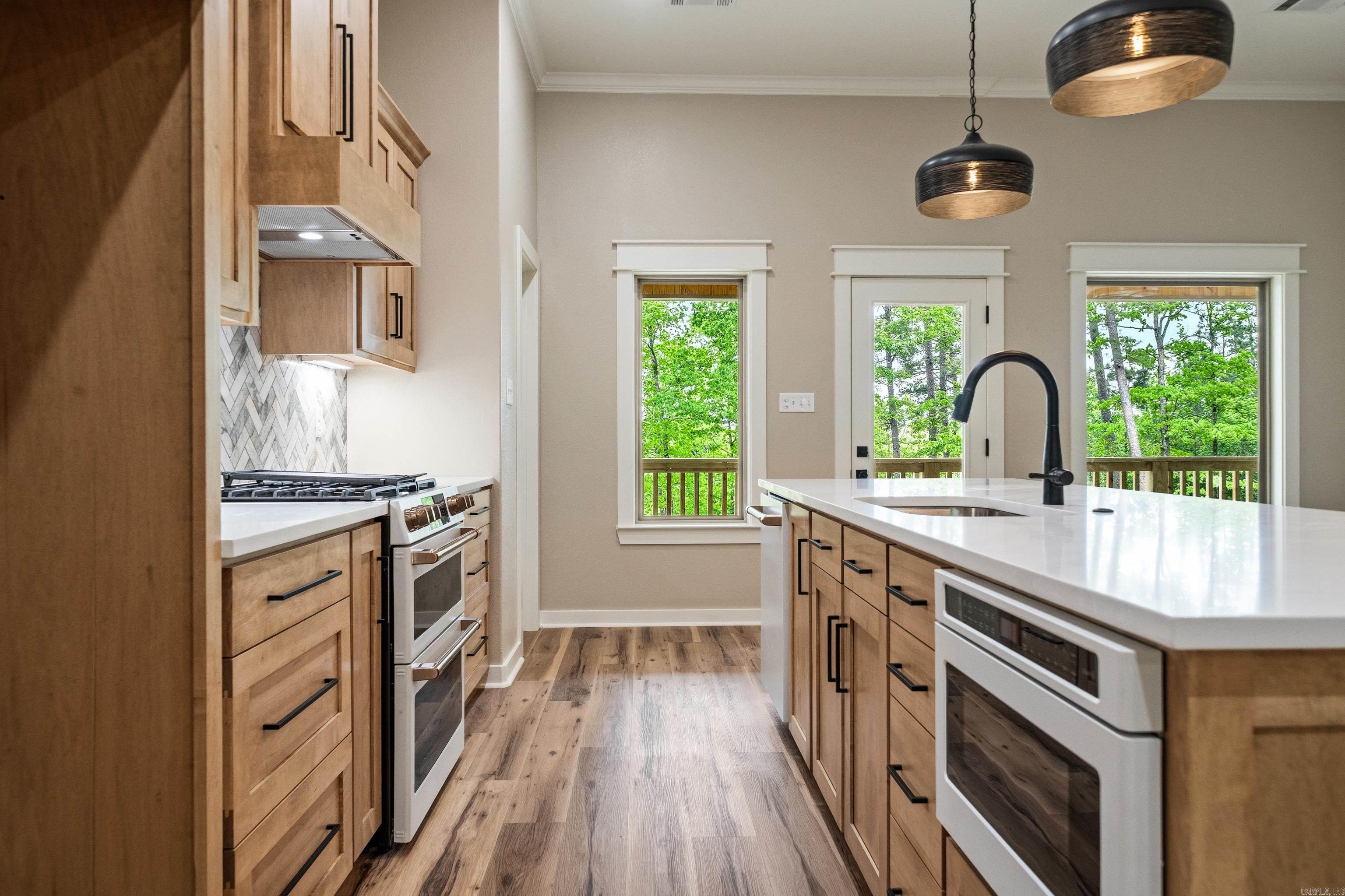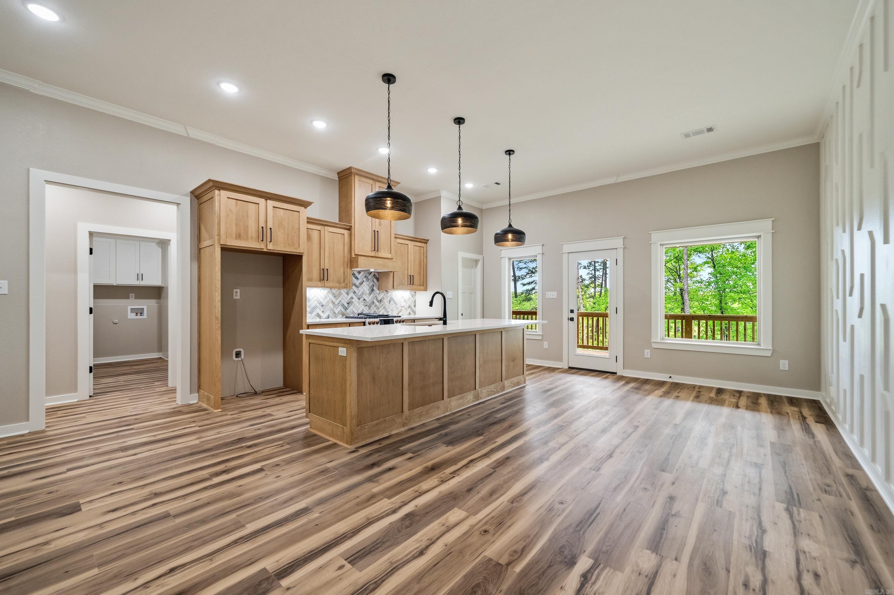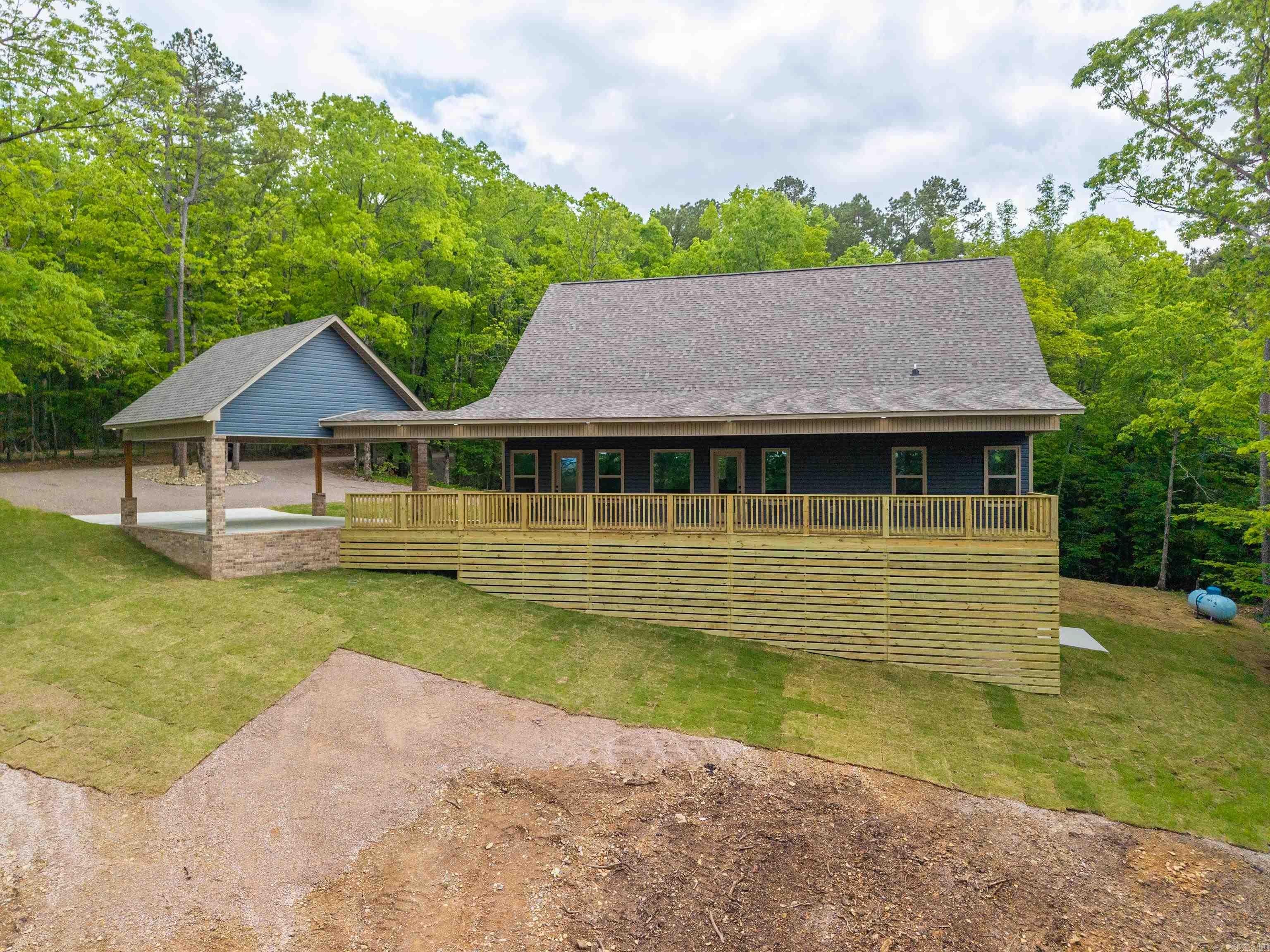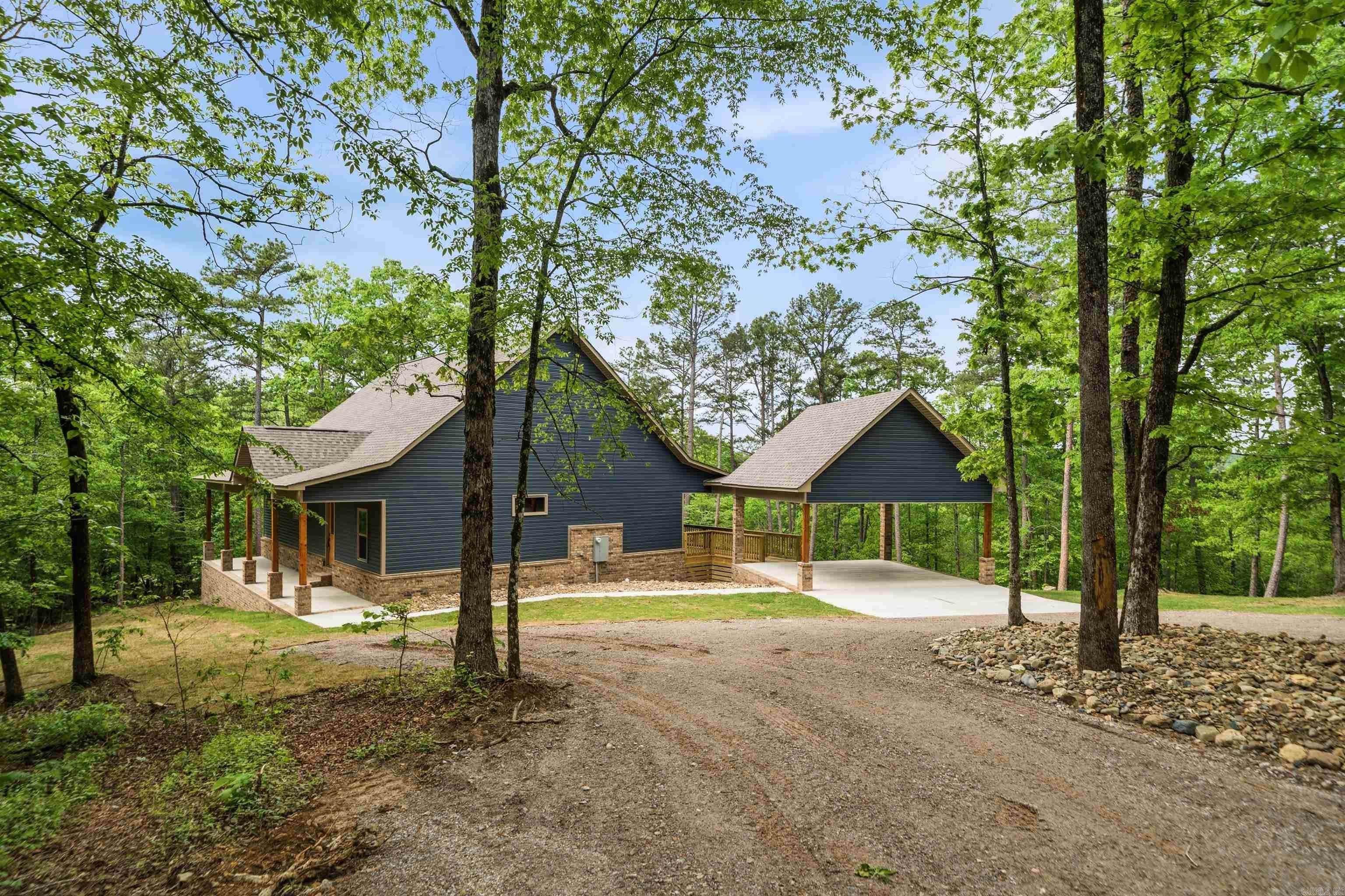 New Construction, 3-bedroom 2 bath lake home on 4 acres on Lake Hamilton. Gourmet kitchen with gas stove and modern fixtures. 2-bay carport with an attached breezeway. Cafe appliances in the kitchen. This home is surrounded by nature and will be the perfect place for entertaining with spacious porches and 200 ft of lake frontage.