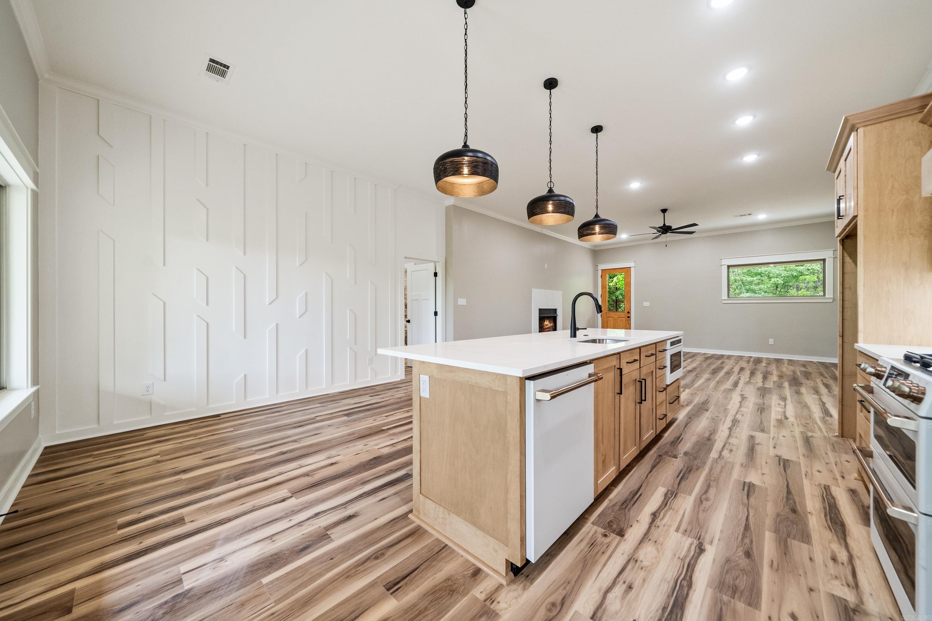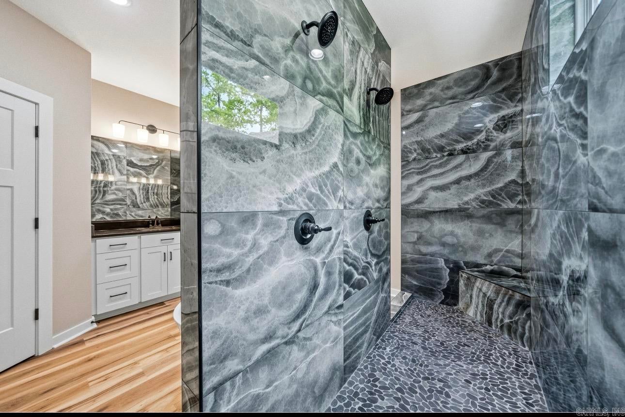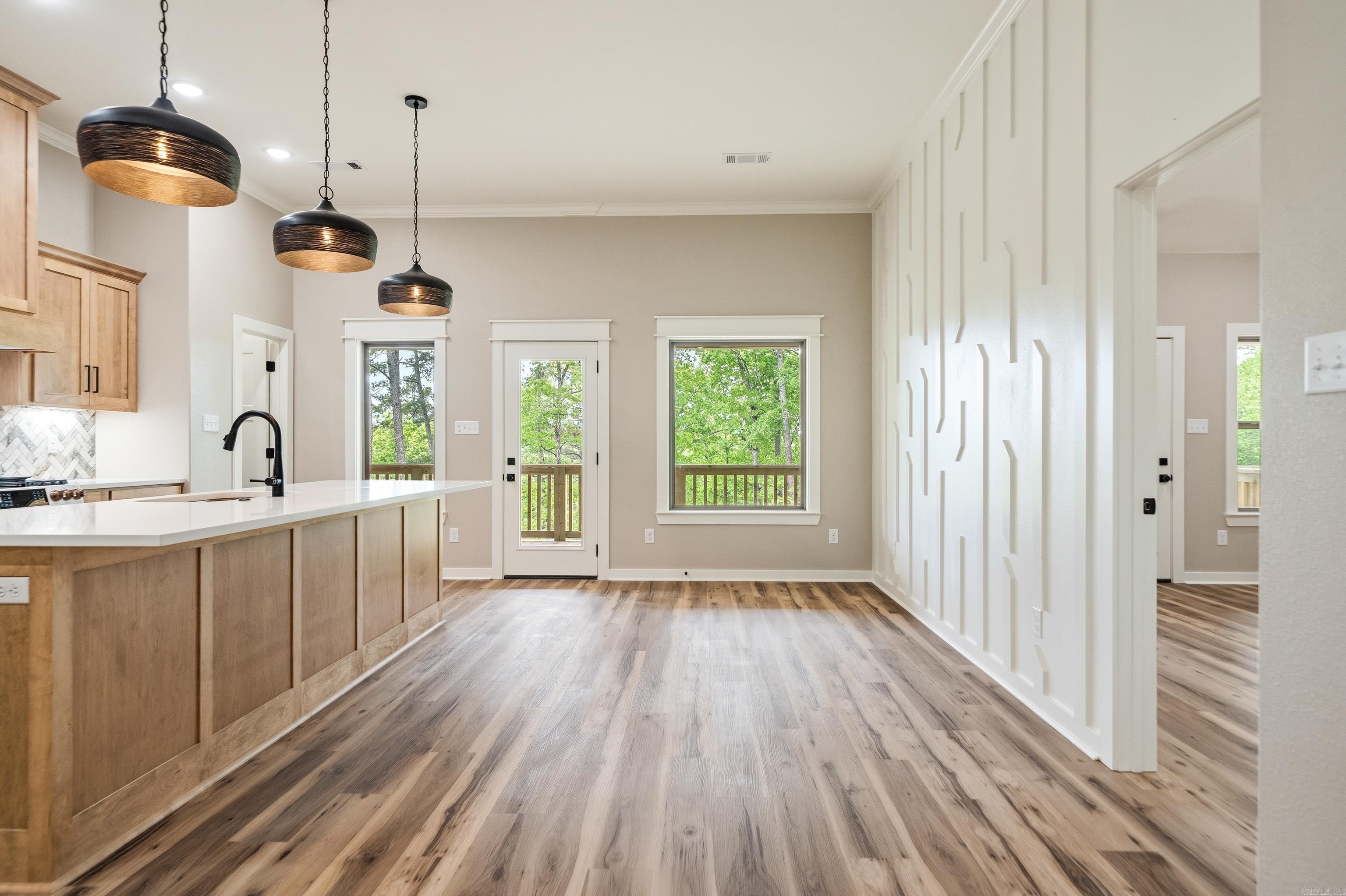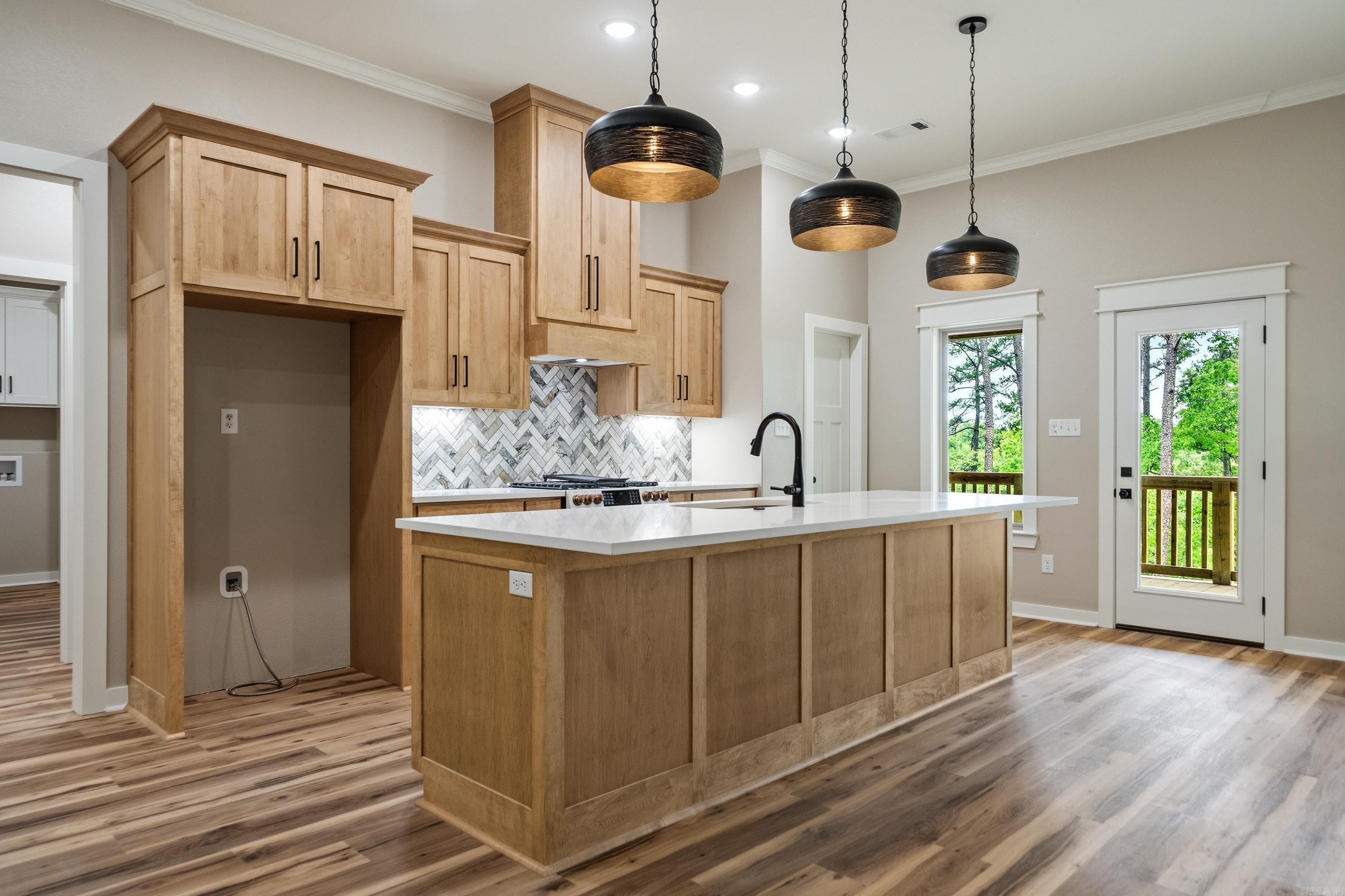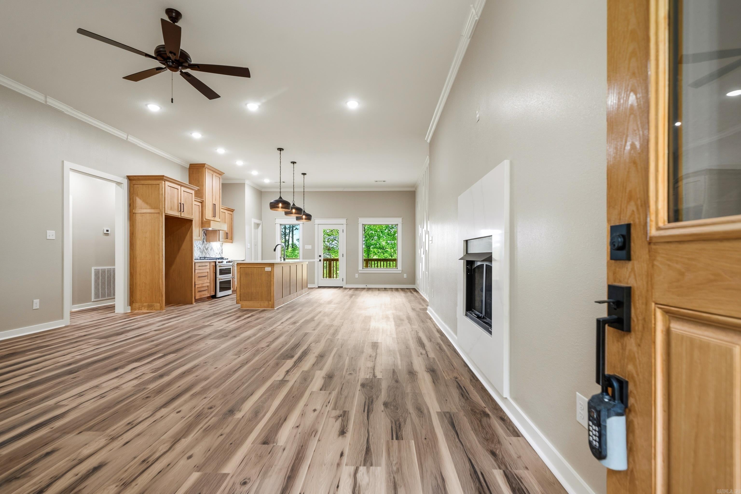 New Construction, 3-bedroom 2 bath lake home on 4 acres on Lake Hamilton. Gourmet kitchen with gas stove and modern fixtures. 2-bay carport with an attached breezeway. Cafe appliances in the kitchen. This home is surrounded by nature and will be the perfect place for entertaining with spacious porches and 200 ft of lake frontage.