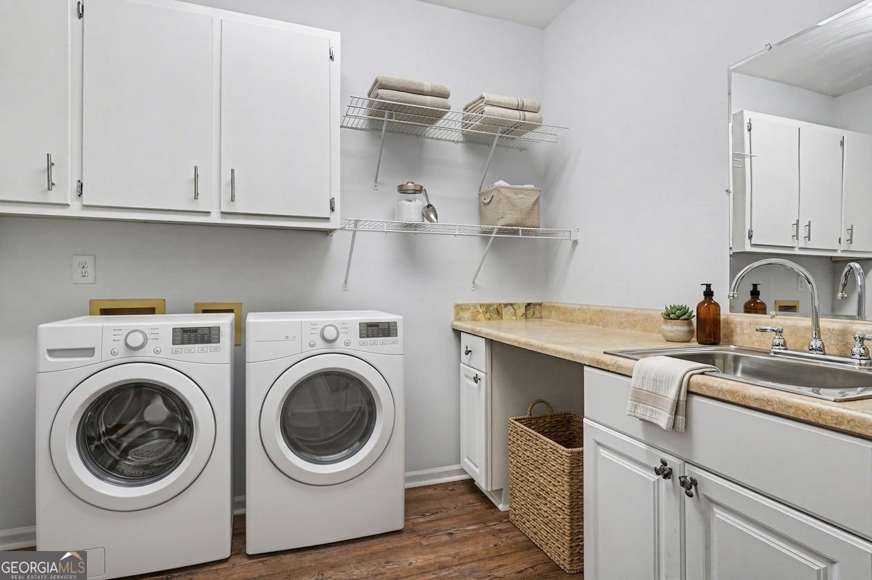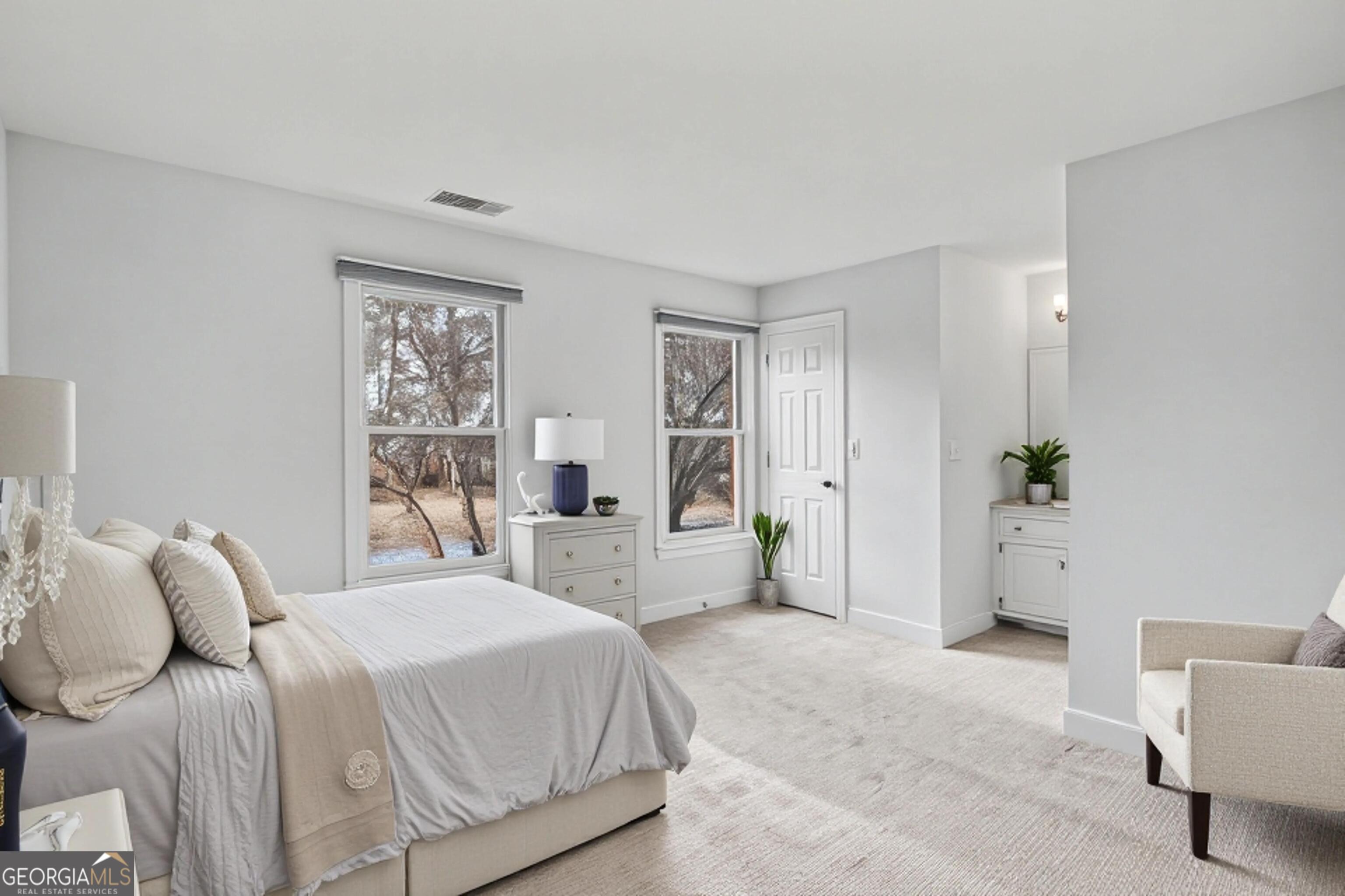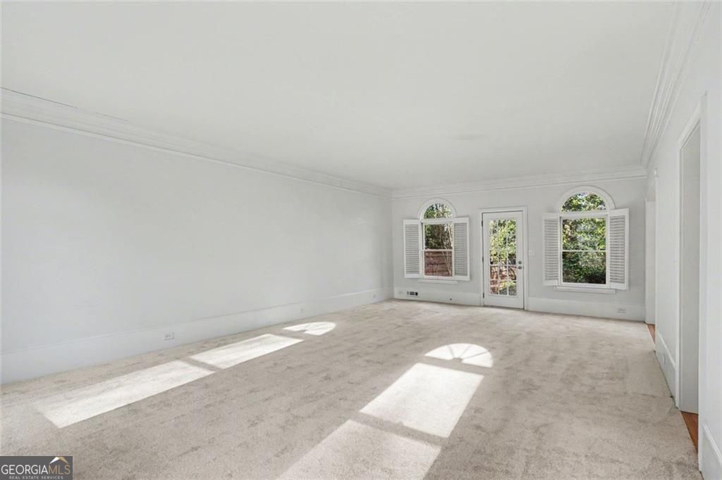 Showstopping custom kitchen 10 ft ceilings hardwoods Rich crown molding Gas fireplace Primary suite with sitting room covered balcony 2-car garage All-brick former model townhome in a gated Roswell community. Featuring 3 spacious bedrooms, 2 full baths and 1 half bath, this home delivers quality craftsmanship throughout, including 10-foot ceilings on the main, gorgeous crown molding, and transom foyer windows. The open dining-to-family room plan is anchored by a gas fireplace and flows to the renovated granite kitchen with custom cabinetry, abundant storage, a gas range, and a movable island. The laundry room adds even more storage with doors that conceal the washer and dryer, and it doubles nicely as a mud room. Upstairs, the oversized primary suite includes vaulted ceilings, a separate sitting room, a custom closet, and a private covered balcony. Two additional bedrooms are generously sized with great closet space, plus extra storage throughout. Enjoy the front stone patio with ornamental metal railing, along with a small, level yard. A rear-entry attached 2-car garage on the kitchen level adds everyday convenience and additional storage. Only 1.4 miles to Canton Street restaurants and shops. HOA covers exterior/structure and landscaping for easy, low maintenance living.