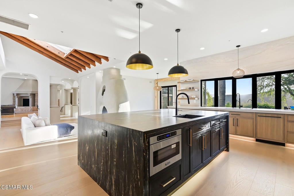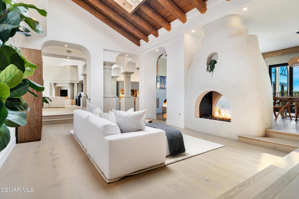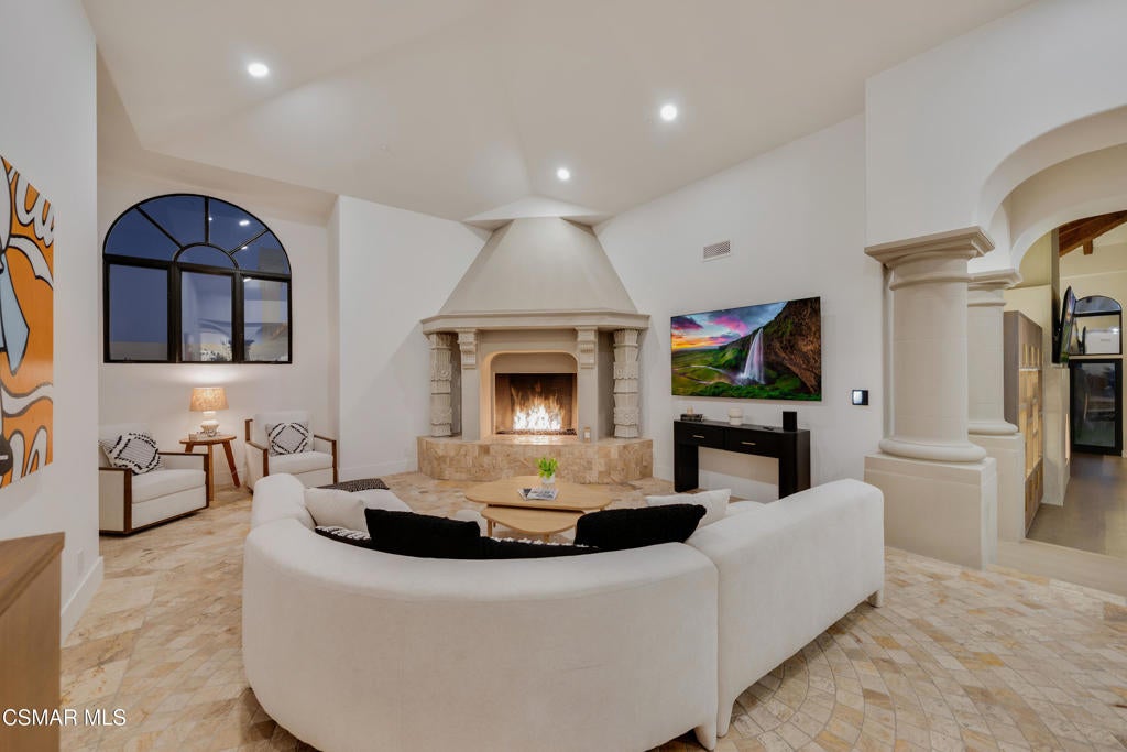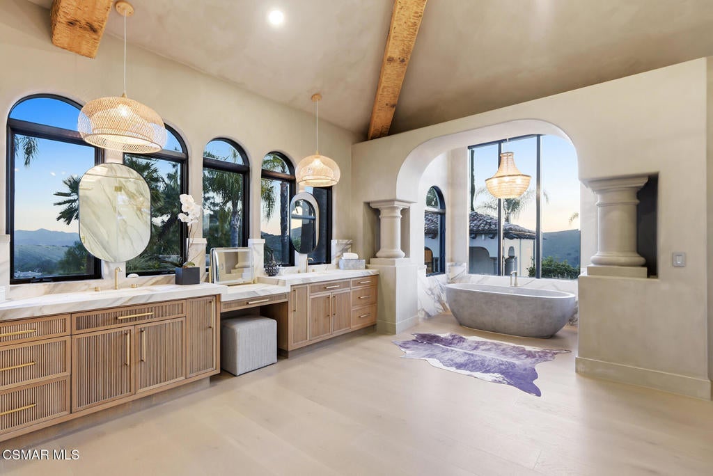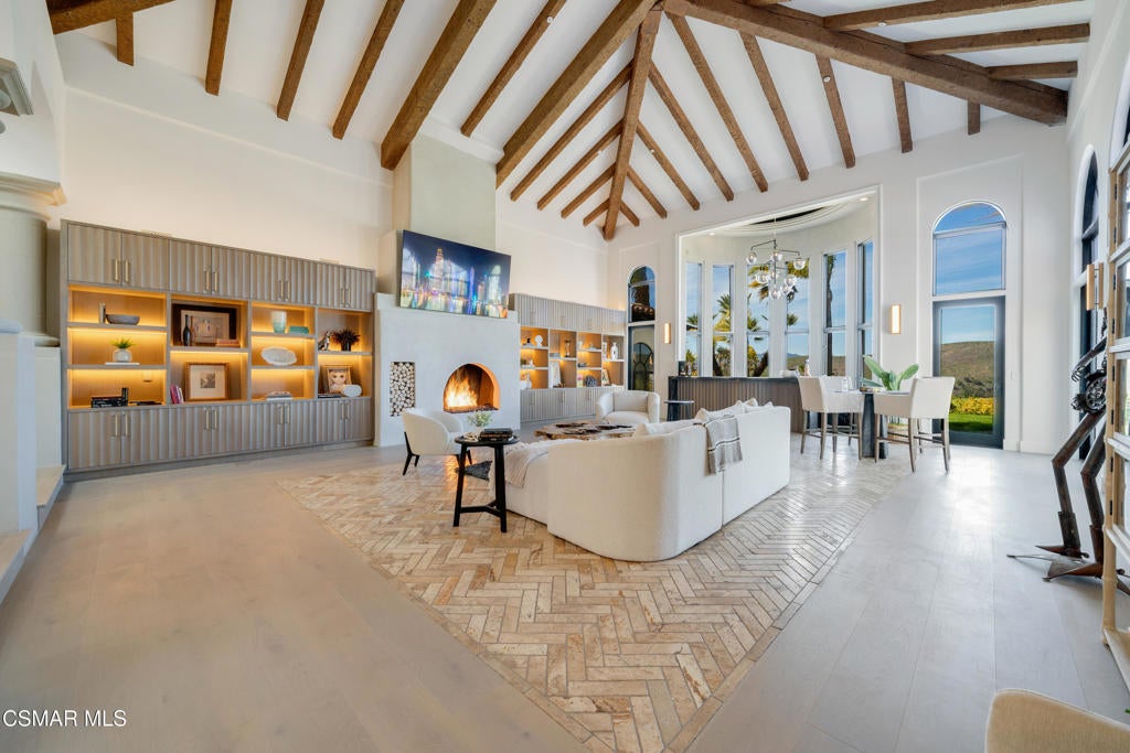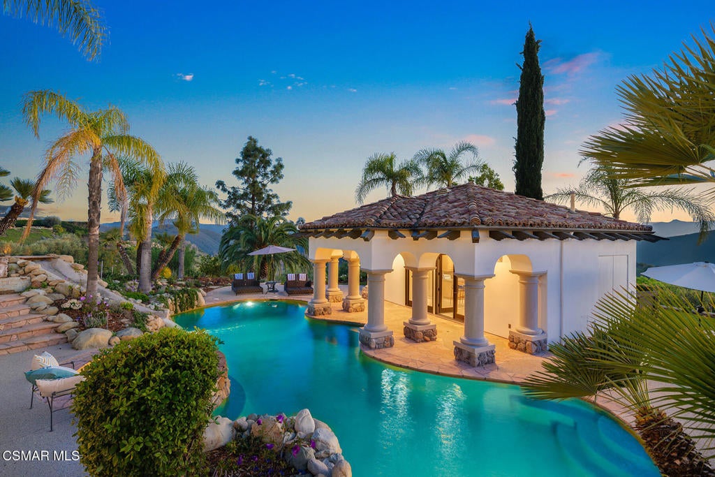 The ultimate masterpiece estate in guard gated North Ranch Country Club Estates! A completely reimagined Spanish transitional sitting behind private gates on an epic 3.16 acres with panoramic views! A very rare compound featuring a detached guest house, separate pool house and too many amenities to mention! The main residence (8384 square feet) provides 7 bedrooms and 9 bathrooms, theater, ELEVATOR from garage to main living areas, office/library, teen/bonus room, and more. The dream center island kitchen boasts top of the line appliances and opens seamlessly to the family room. There is also a jaw dropping great room that will leave you speechless! The primary suite is warmed by a custom fireplace and boasts a sitting room and newly remodeled awe inspiring Four Seasons quality bathroom! The resort quality grounds are second to none! There are two pools, pool house/cabana, water features, an abundance of manicured lawns and a very special lower yard with entertainment areas, (second pool) and an ideal space for possible tennis court. All of this with panoramic unobstructed views and complete privacy! Among the homes many other attributes are a solar system, smart home technology and simply too much to mention! This is a one of one masterpiece property professionally designed and built using the very finest finishes throughout!