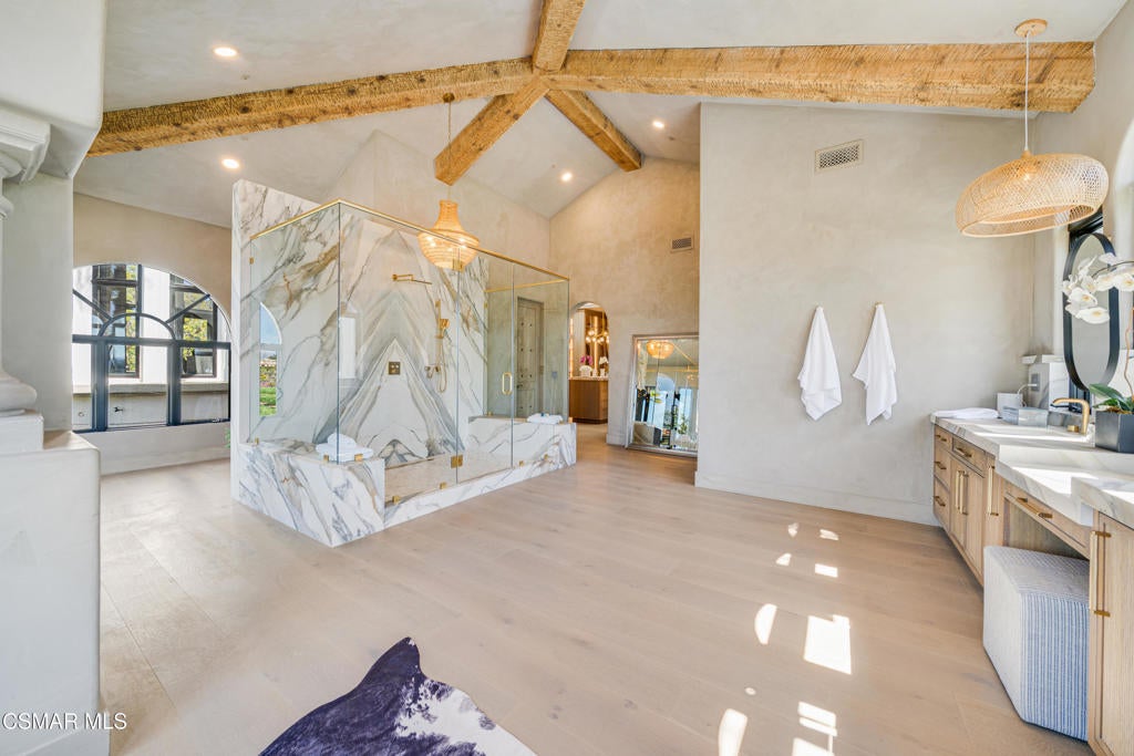 The ultimate masterpiece estate in guard gated North Ranch Country Club Estates! A completely reimagined Spanish transitional sitting behind private gates on an epic 3.