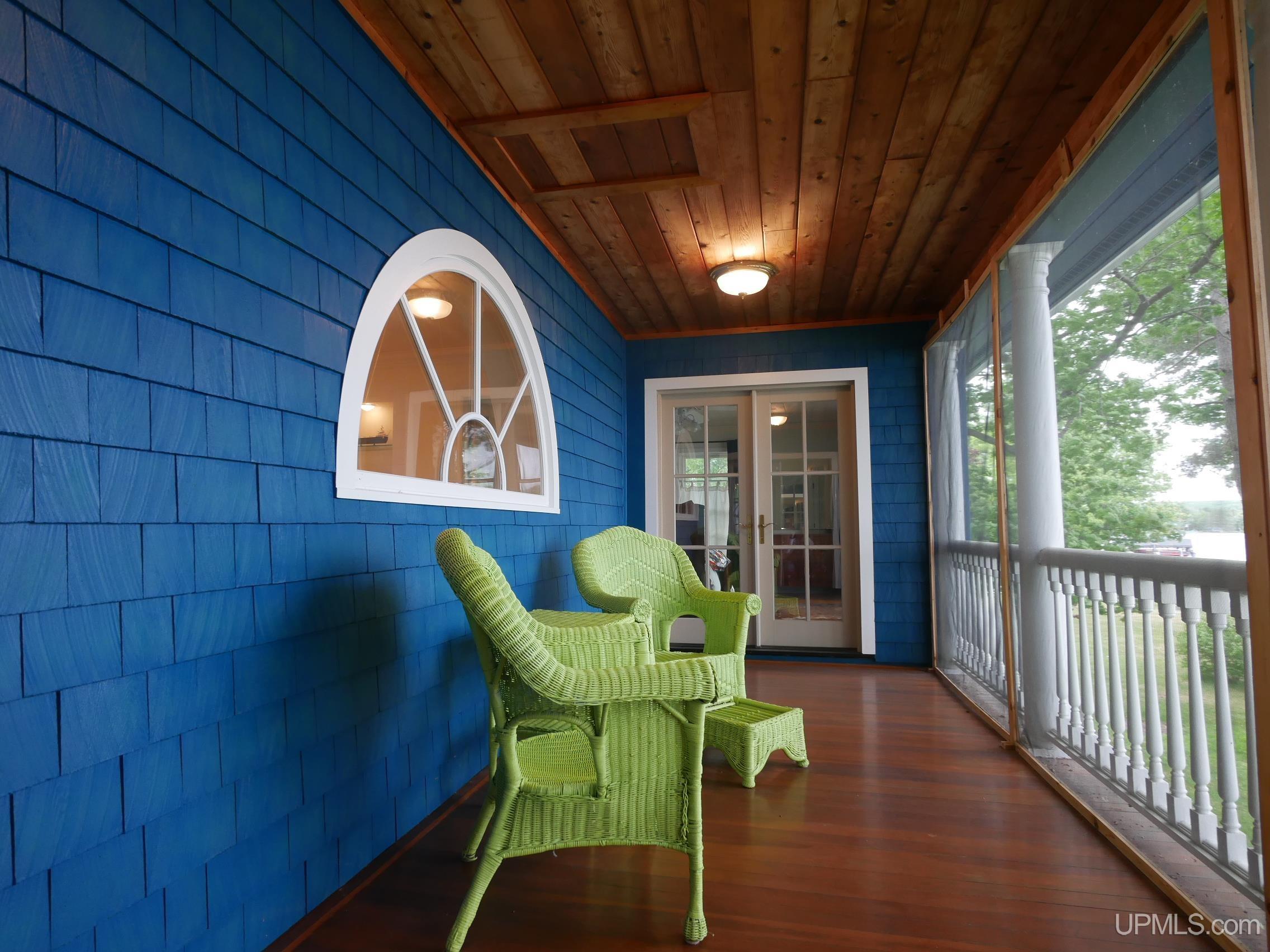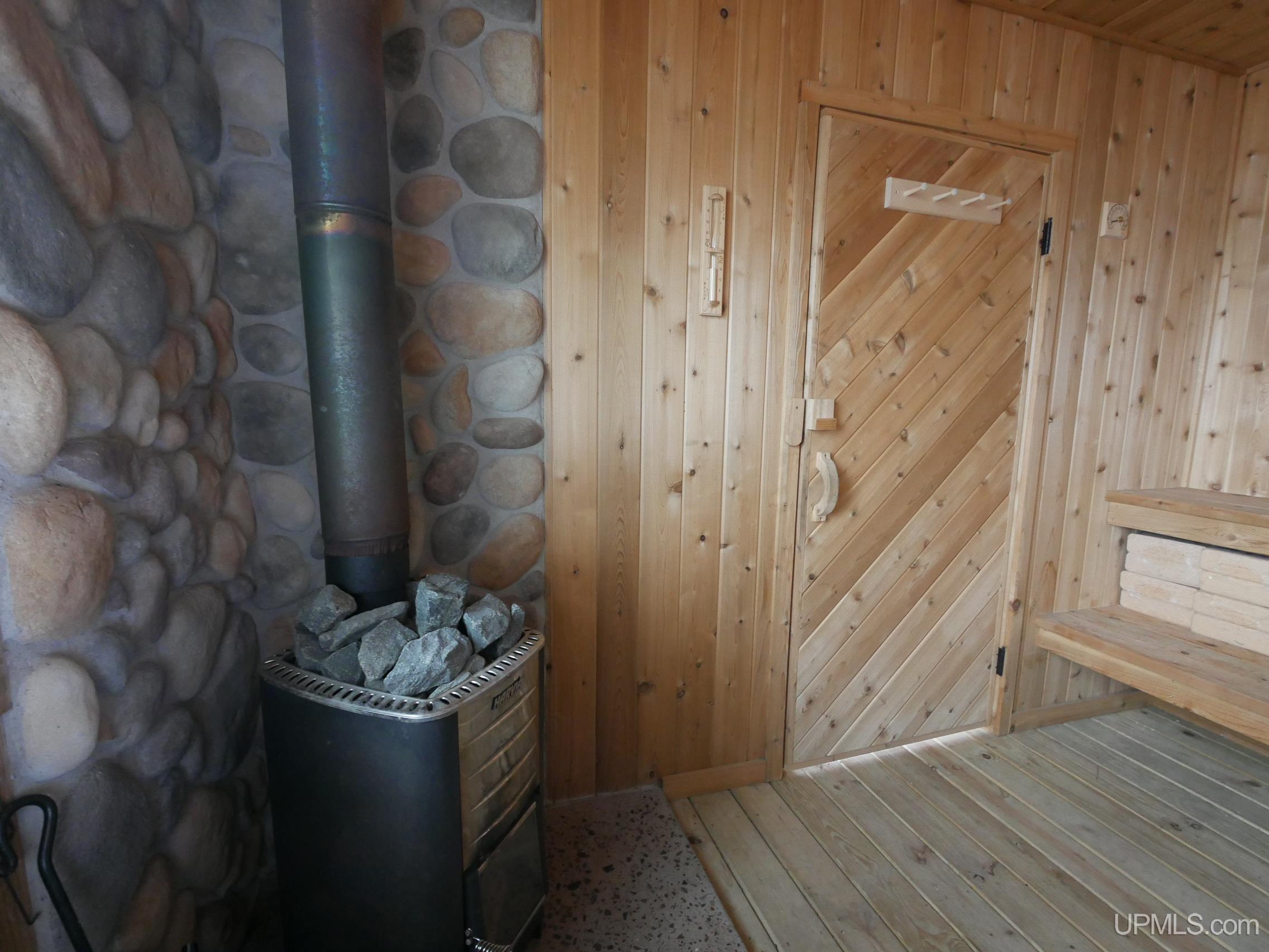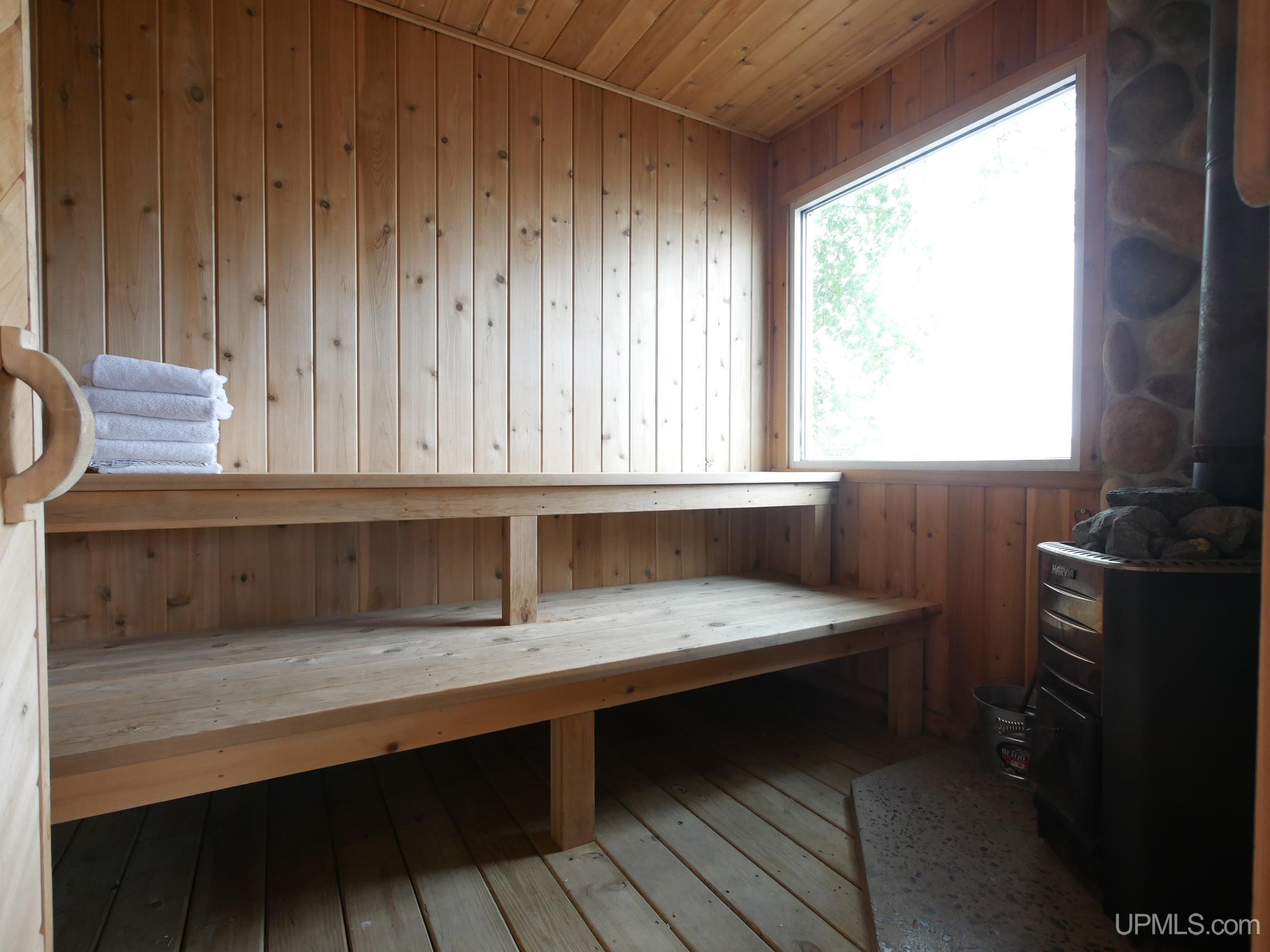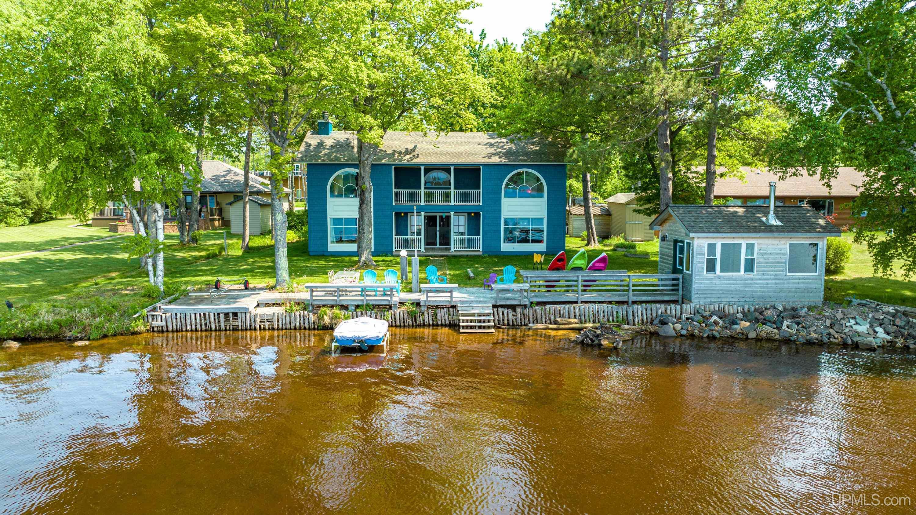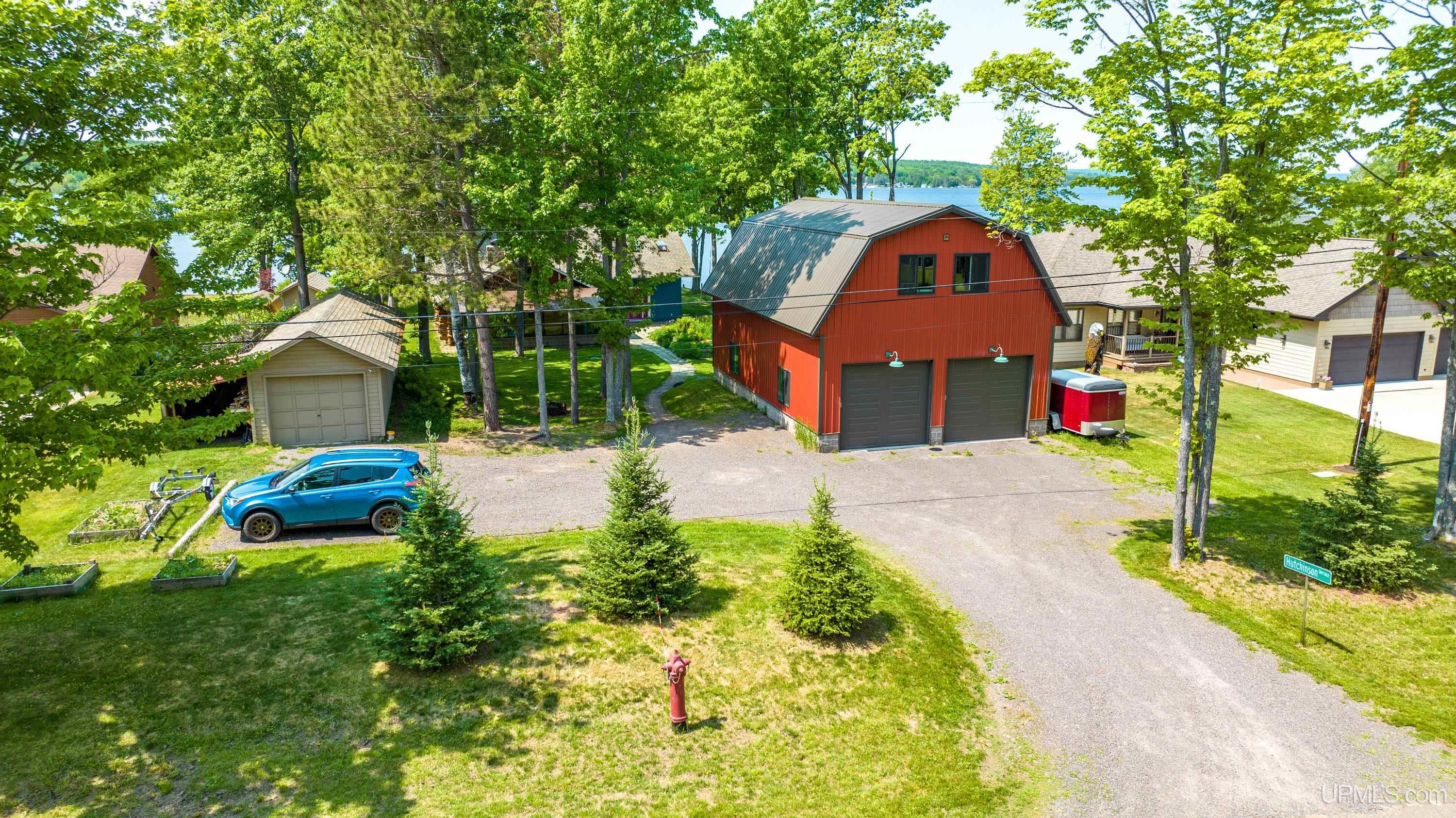 This property presents an exceptional fusion of contemporary design and classic log cabin architecture, set on approximately 100 feet of Portage Lake waterfront at Half Moon Beach‹“Chassell Bay, just 9/- miles from Houghton and Michigan Tech University. The main floor showcases the original log cabin structure integrated with a modern kitchen and comfortable sitting area featuring a wood-burning fireplace. The kitchen seamlessly connects to a modern addition, offering abundant natural light and picturesque water views. The flexible open floor plan is ideal for living and dining arrangements, facilitating both relaxation and entertaining. Additional main level amenities include a formal living room with a white marble fireplace, office, foyer, three-quarter bath, sunroom, and laundry area. A curved, open staircase leads to the upper level, where the primary bedroom suite boasts a full bath, supplemental vanity, and spacious closet. The second bedroom includes a half bath, while the third shares a full bathroom; two bedrooms provide direct balcony access with tranquil lake vistas. Some of the notable finishes throughout the home consist of granite countertops, solid cherry flooring bordered with Birdseye maple and walnut, crown and picture molding, and extensive water views. Outdoor amenities feature lakeside decking and a cedar sauna (2016). Positioned near the road is a detached 2 car garage (constructed in 2019) with workshop potential and loft storage, complemented by a tandem two-car garage, garden shed, and additional storage building for recreational equipment. The owners have meticulously maintained the residence, including restoration and sealing of logs and exterior paint on the addition in 2019. The property is located on a quiet street with direct access to the trail from Chassell to Houghton. ---- NOTICE: Information is believed accurate but not guaranteed. Buyers must inspect & verify all property details. Buyers accept all risks of inaccuracies, including but not limited to, acreage, lot size/location, square footage, & utility availability/costs. Real estate taxes will be reassessed & may change significantly after sale; do not assume your tax bills will match the sellers. Taxes are not zero. GIS, apps and plat book pages/maps are not surveys. Audio/video recording may occur on the property; entry implies consent to recording. Buyer pre-approval or proof of funds documentation to be provided upon request. -----OFFERS: Please allow 72 hours for a response. Seller may set or change offer deadlines at any time with or without notice.