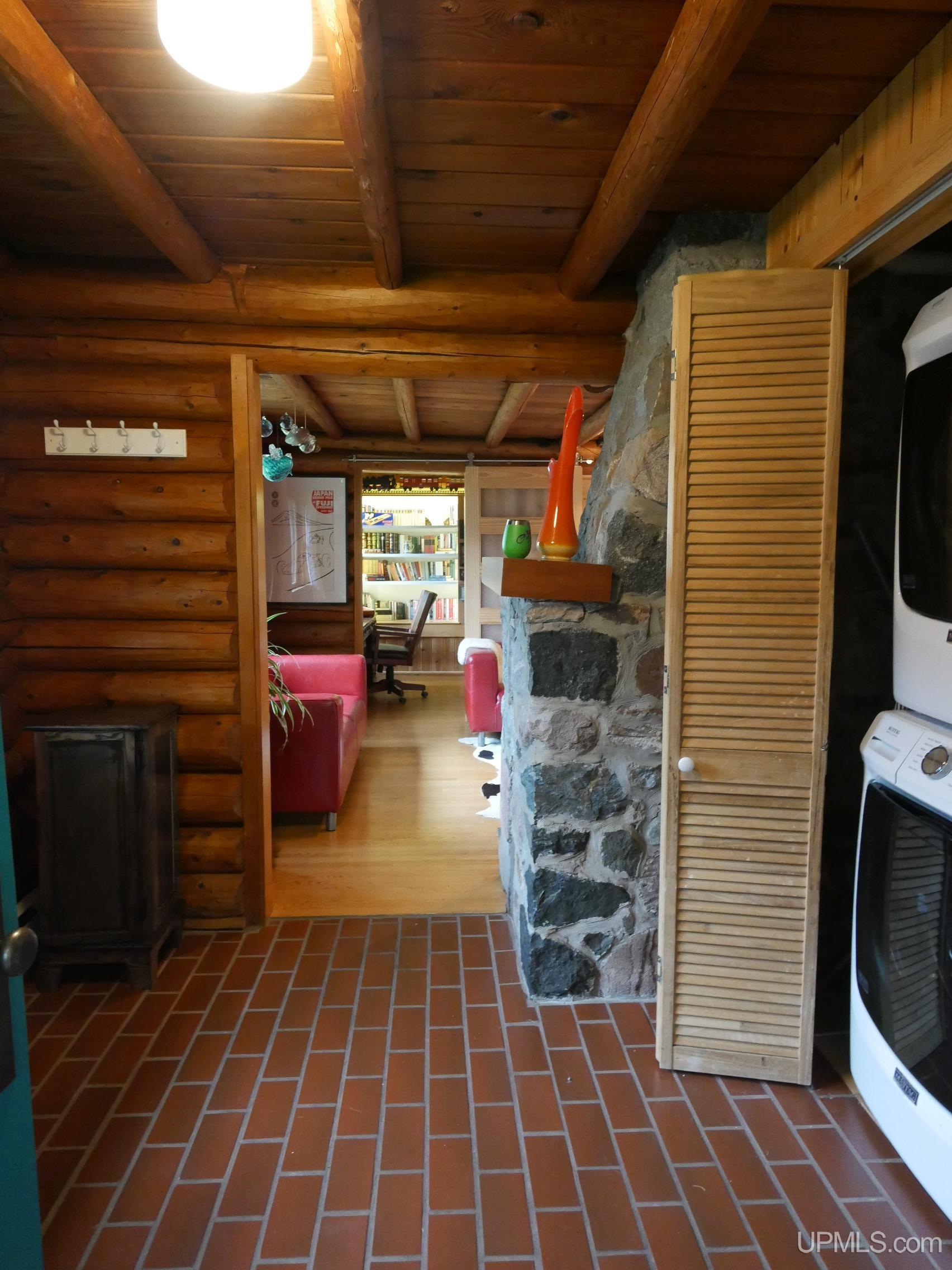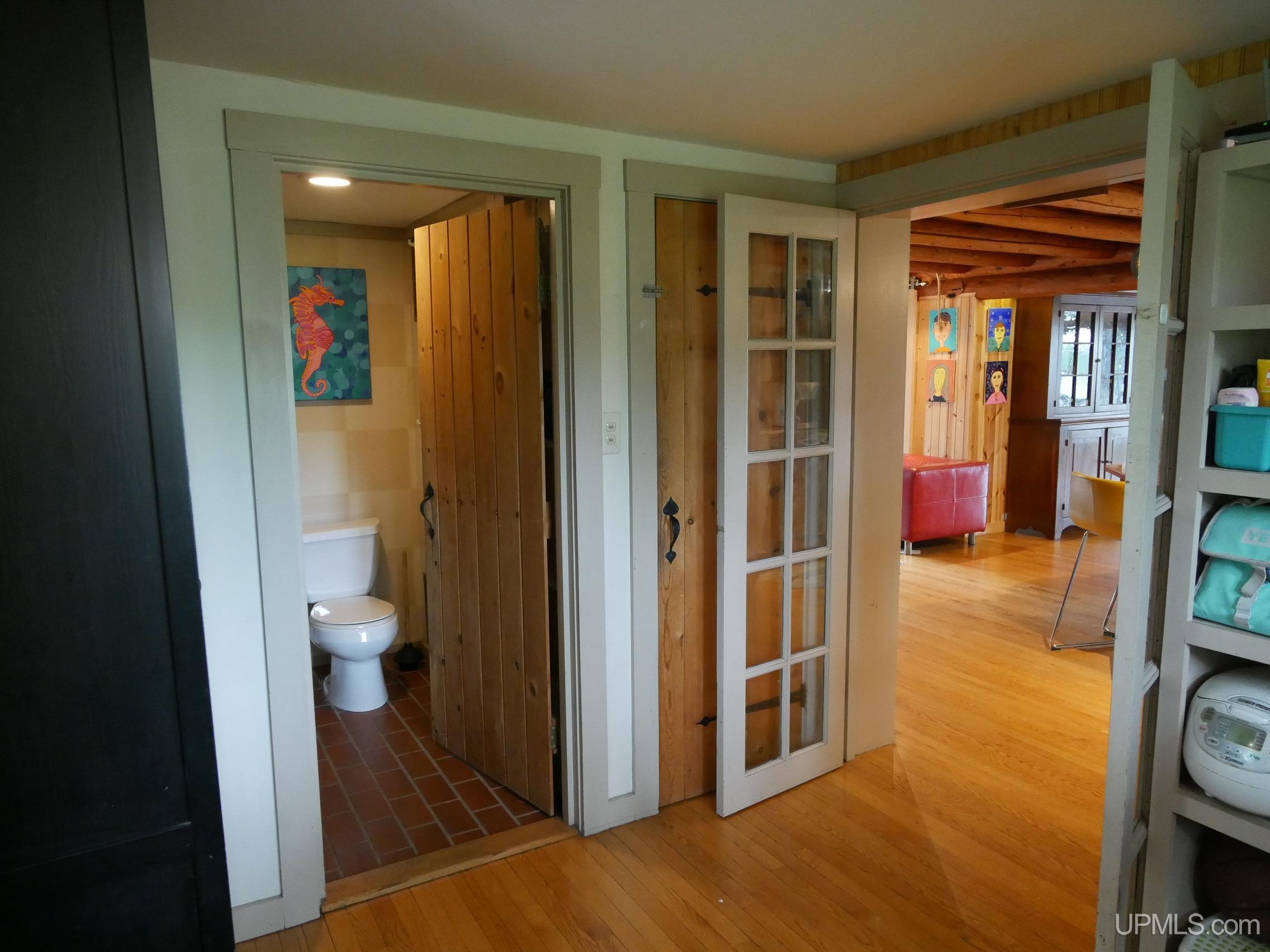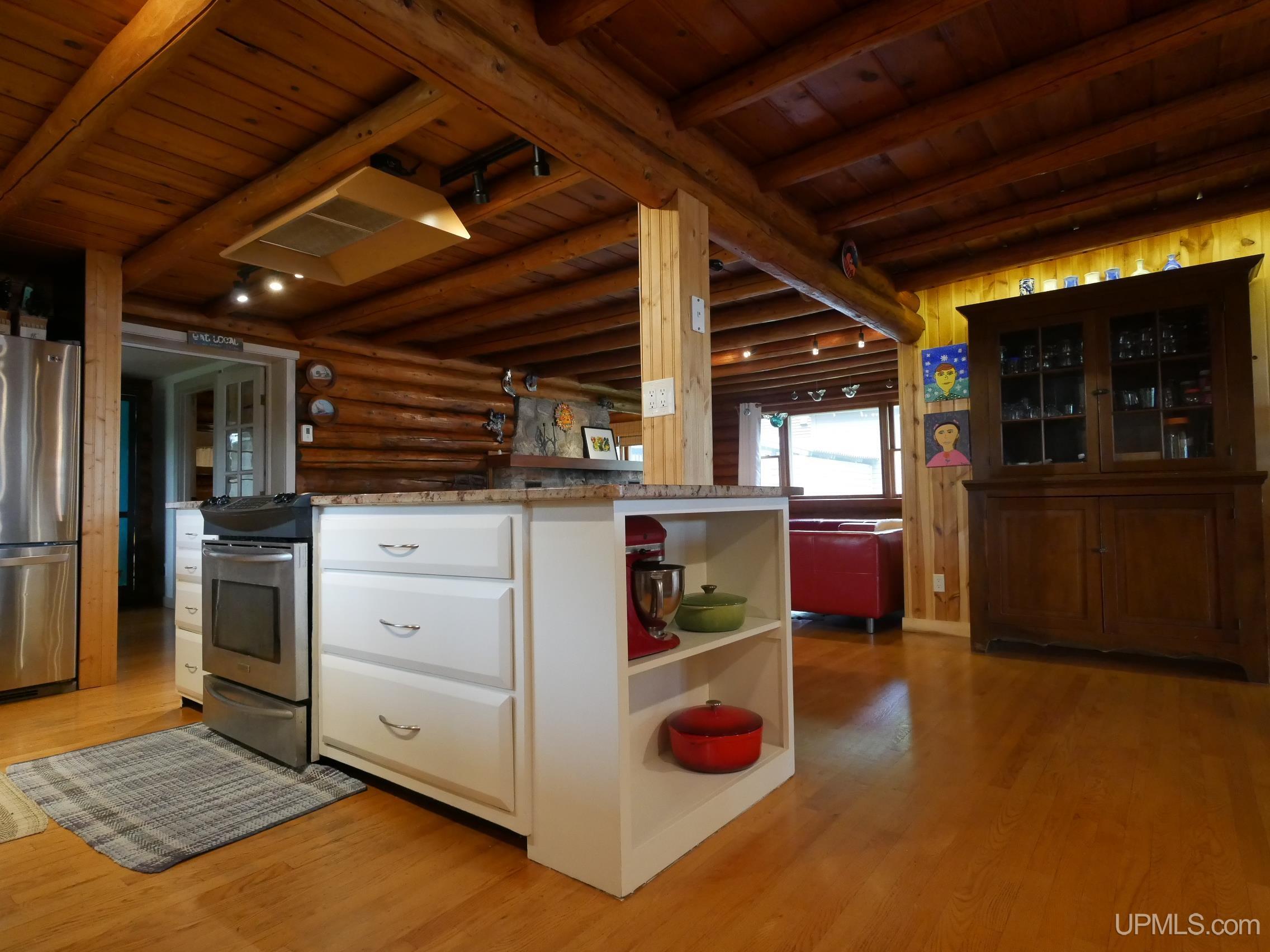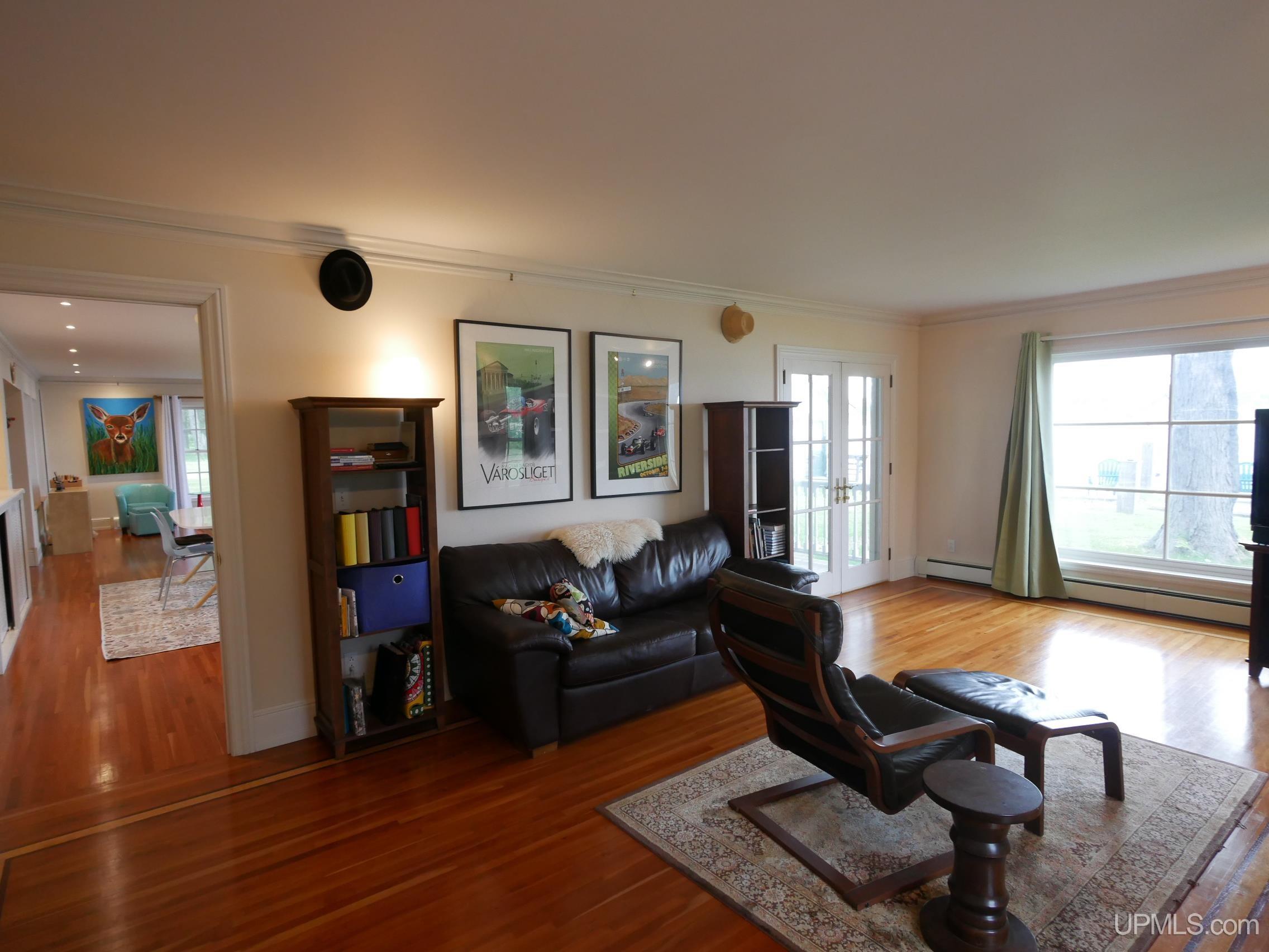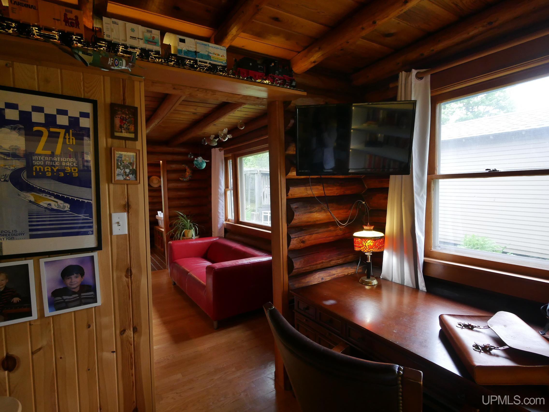 This property presents an exceptional fusion of contemporary design and classic log cabin architecture, set on approximately 100 feet of Portage Lake waterfront at Half Moon Beach‹“Chassell Bay, just 9/- miles from Houghton and Michigan Tech University. The main floor showcases the original log cabin structure integrated with a modern kitchen and comfortable sitting area featuring a wood-burning fireplace. The kitchen seamlessly connects to a modern addition, offering abundant natural light and picturesque water views. The flexible open floor plan is ideal for living and dining arrangements, facilitating both relaxation and entertaining. Additional main level amenities include a formal living room with a white marble fireplace, office, foyer, three-quarter bath, sunroom, and laundry area. A curved, open staircase leads to the upper level, where the primary bedroom suite boasts a full bath, supplemental vanity, and spacious closet. The second bedroom includes a half bath, while the third shares a full bathroom; two bedrooms provide direct balcony access with tranquil lake vistas. Some of the notable finishes throughout the home consist of granite countertops, solid cherry flooring bordered with Birdseye maple and walnut, crown and picture molding, and extensive water views. Outdoor amenities feature lakeside decking and a cedar sauna (2016). Positioned near the road is a detached 2 car garage (constructed in 2019) with workshop potential and loft storage, complemented by a tandem two-car garage, garden shed, and additional storage building for recreational equipment. The owners have meticulously maintained the residence, including restoration and sealing of logs and exterior paint on the addition in 2019. The property is located on a quiet street with direct access to the trail from Chassell to Houghton. ---- NOTICE: Information is believed accurate but not guaranteed. Buyers must inspect & verify all property details. Buyers accept all risks of inaccuracies, including but not limited to, acreage, lot size/location, square footage, & utility availability/costs. Real estate taxes will be reassessed & may change significantly after sale; do not assume your tax bills will match the sellers. Taxes are not zero. GIS, apps and plat book pages/maps are not surveys. Audio/video recording may occur on the property; entry implies consent to recording. Buyer pre-approval or proof of funds documentation to be provided upon request. -----OFFERS: Please allow 72 hours for a response. Seller may set or change offer deadlines at any time with or without notice.