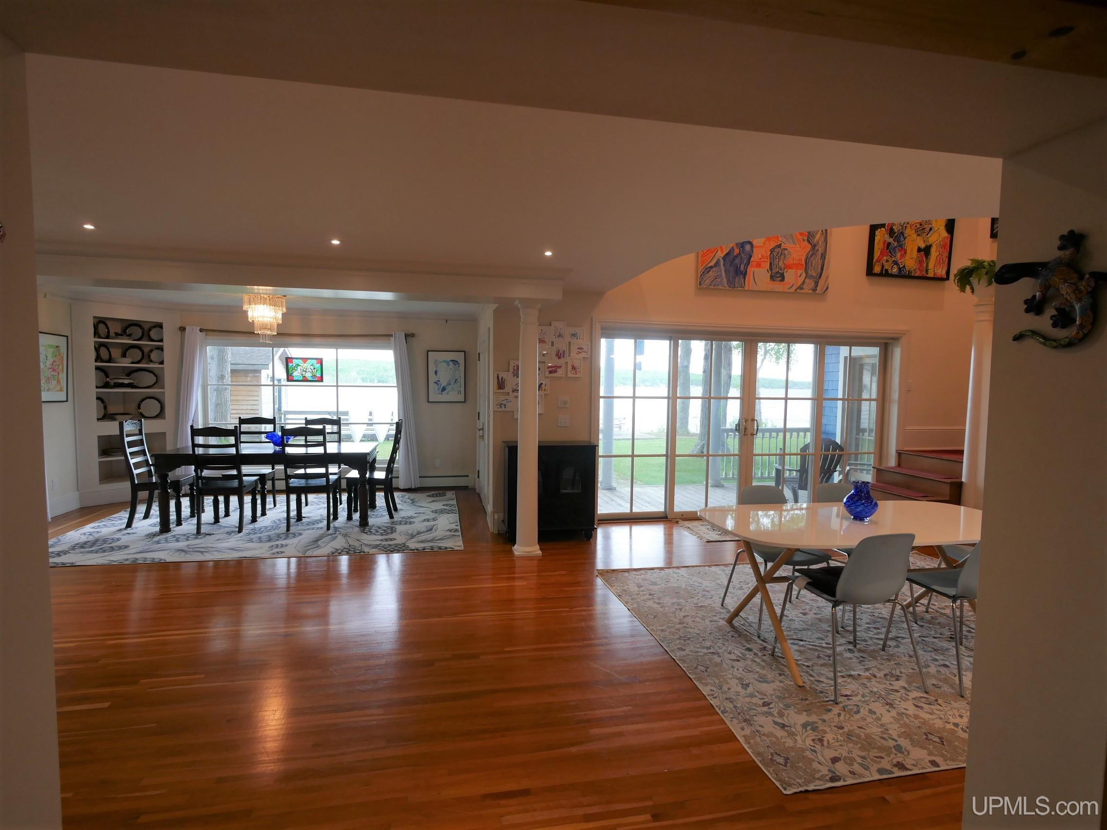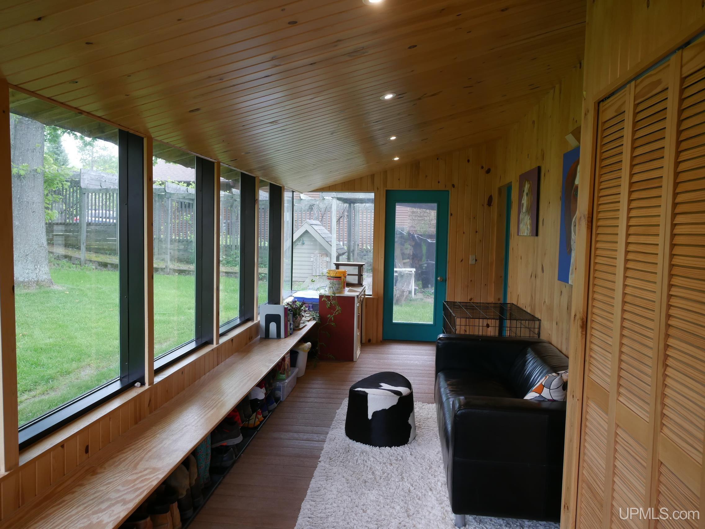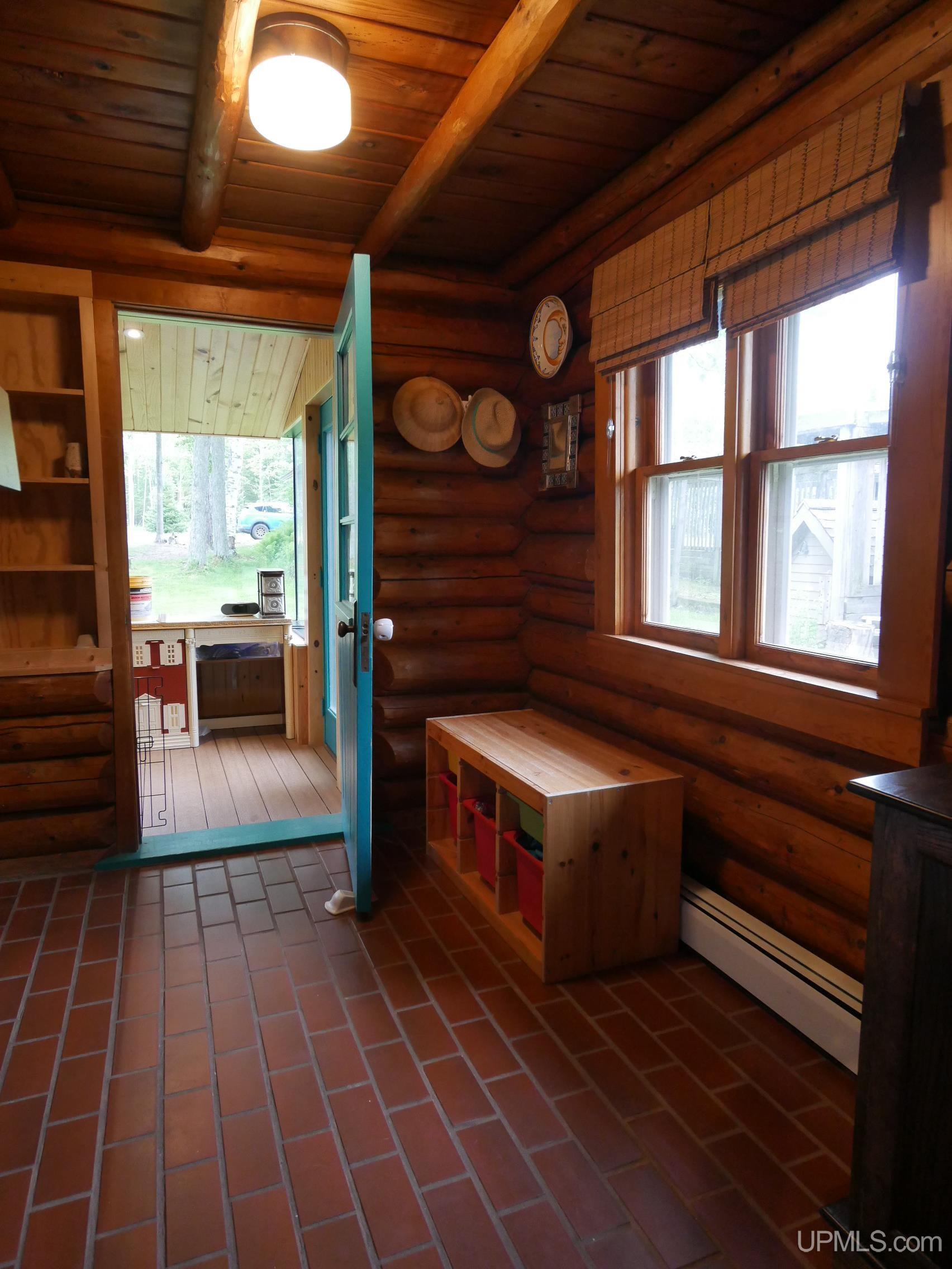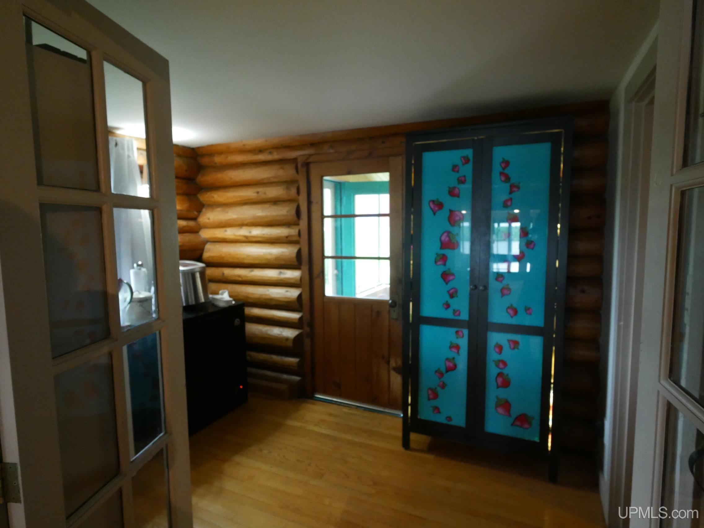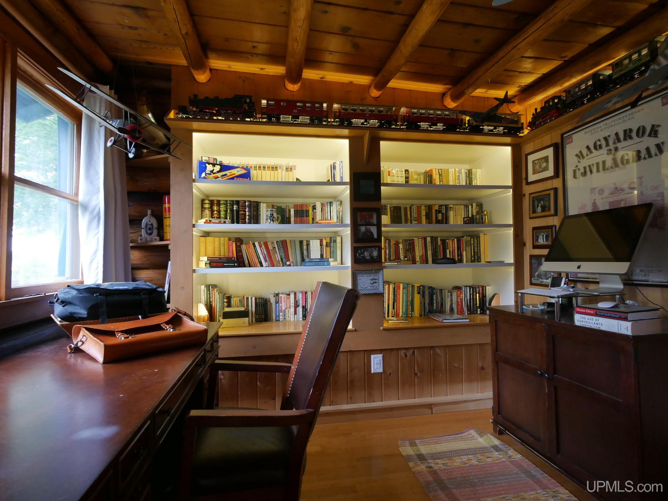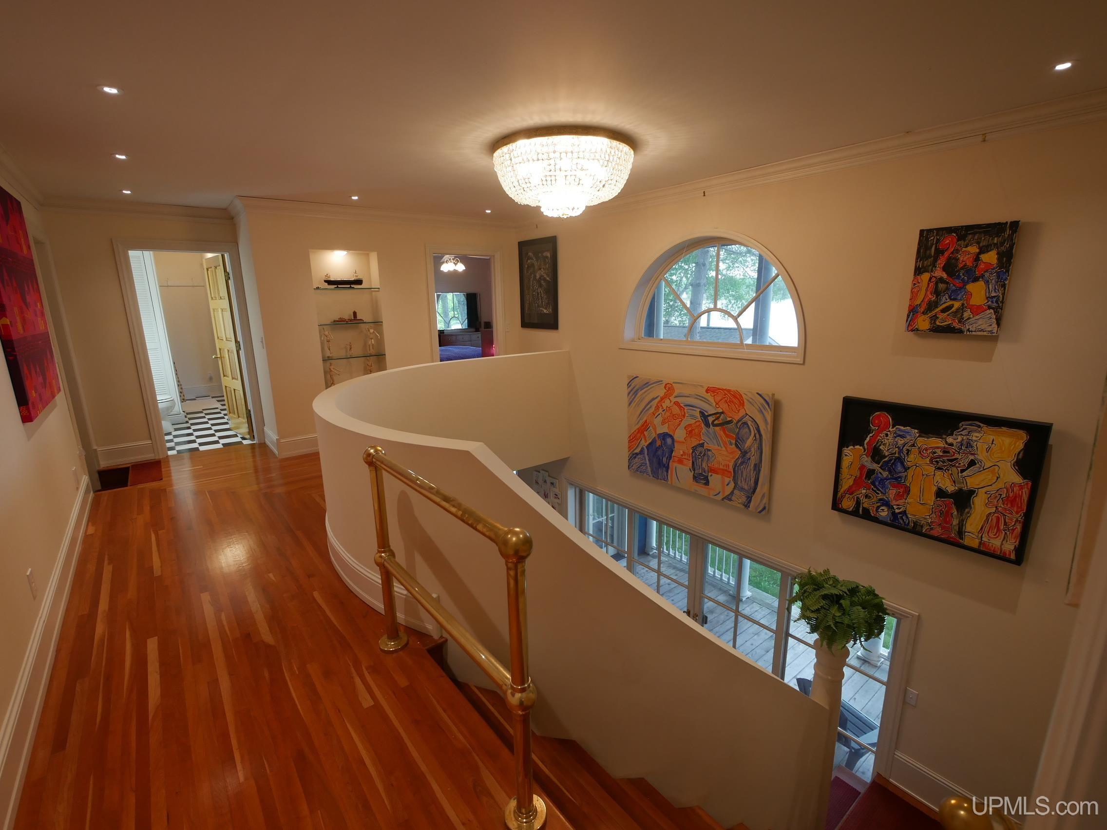 This property presents an exceptional fusion of contemporary design and classic log cabin architecture, set on approximately 100 feet of Portage Lake waterfront at Half Moon Beach‹“Chassell Bay, just 9/- miles from Houghton and Michigan Tech University. The main floor showcases the original log cabin structure integrated with a modern kitchen and comfortable sitting area featuring a wood-burning fireplace. The kitchen seamlessly connects to a modern addition, offering abundant natural light and picturesque water views. The flexible open floor plan is ideal for living and dining arrangements, facilitating both relaxation and entertaining. Additional main level amenities include a formal living room with a white marble fireplace, office, foyer, three-quarter bath, sunroom, and laundry area. A curved, open staircase leads to the upper level, where the primary bedroom suite boasts a full bath, supplemental vanity, and spacious closet. The second bedroom includes a half bath, while the third shares a full bathroom; two bedrooms provide direct balcony access with tranquil lake vistas. Some of the notable finishes throughout the home consist of granite countertops, solid cherry flooring bordered with Birdseye maple and walnut, crown and picture molding, and extensive water views. Outdoor amenities feature lakeside decking and a cedar sauna (2016). Positioned near the road is a detached 2 car garage (constructed in 2019) with workshop potential and loft storage, complemented by a tandem two-car garage, garden shed, and additional storage building for recreational equipment. The owners have meticulously maintained the residence, including restoration and sealing of logs and exterior paint on the addition in 2019. The property is located on a quiet street with direct access to the trail from Chassell to Houghton. ---- NOTICE: Information is believed accurate but not guaranteed. Buyers must inspect & verify all property details. Buyers accept all risks of inaccuracies, including but not limited to, acreage, lot size/location, square footage, & utility availability/costs. Real estate taxes will be reassessed & may change significantly after sale; do not assume your tax bills will match the sellers. Taxes are not zero. GIS, apps and plat book pages/maps are not surveys. Audio/video recording may occur on the property; entry implies consent to recording. Buyer pre-approval or proof of funds documentation to be provided upon request. -----OFFERS: Please allow 72 hours for a response. Seller may set or change offer deadlines at any time with or without notice.