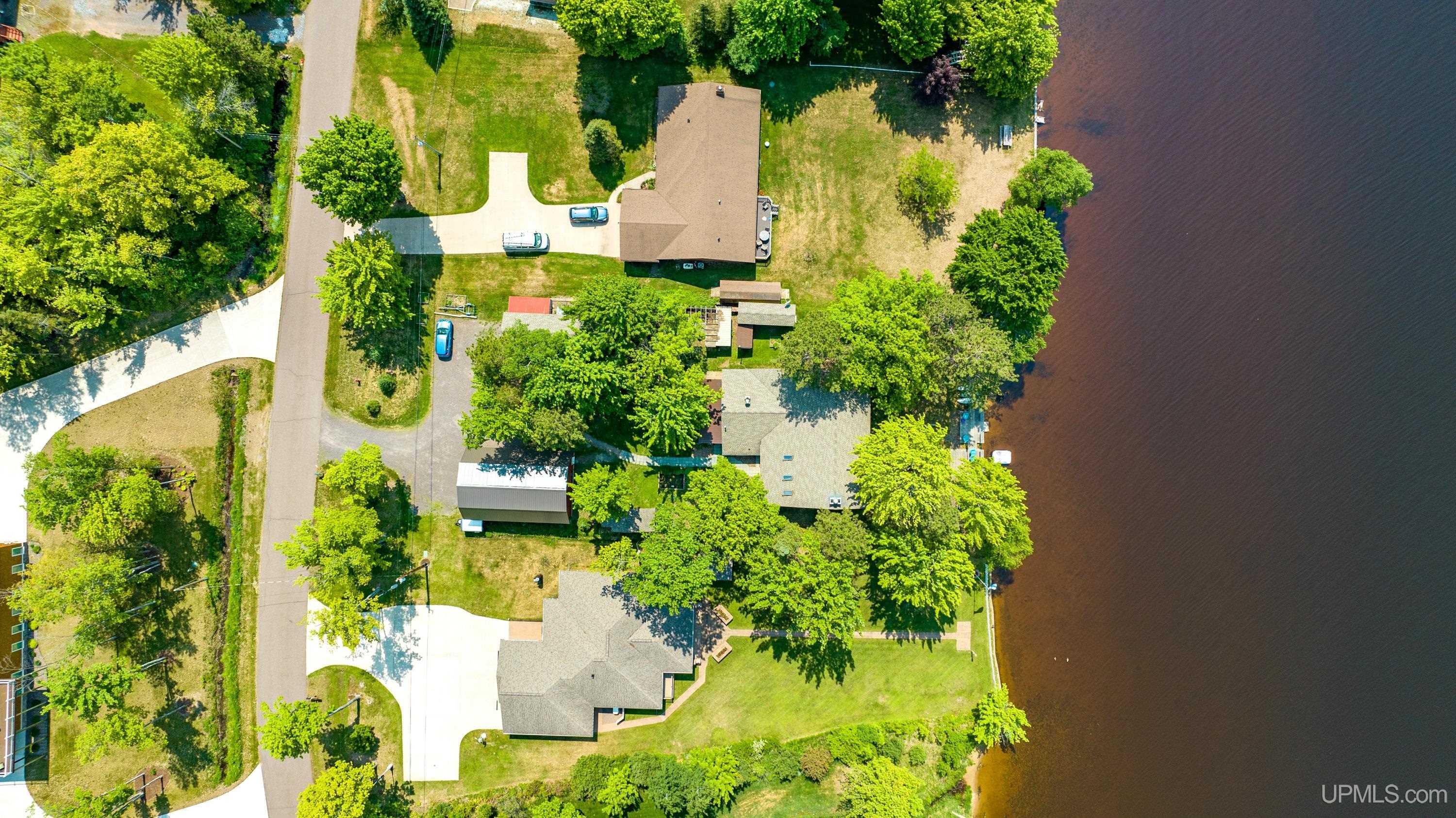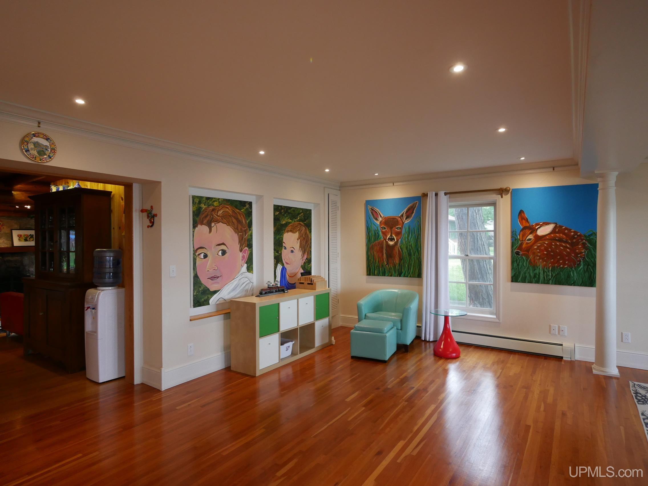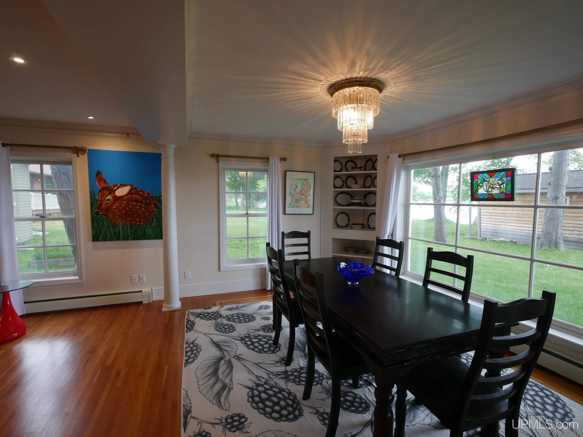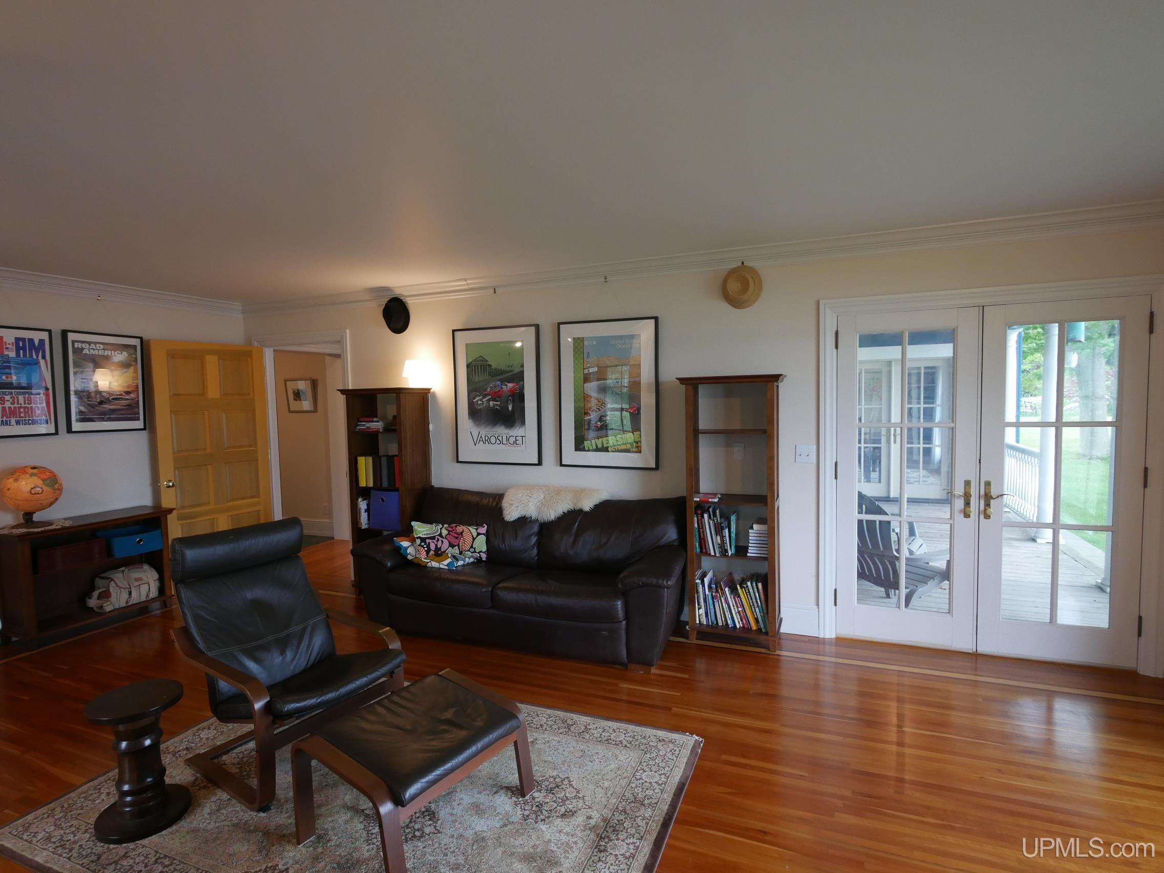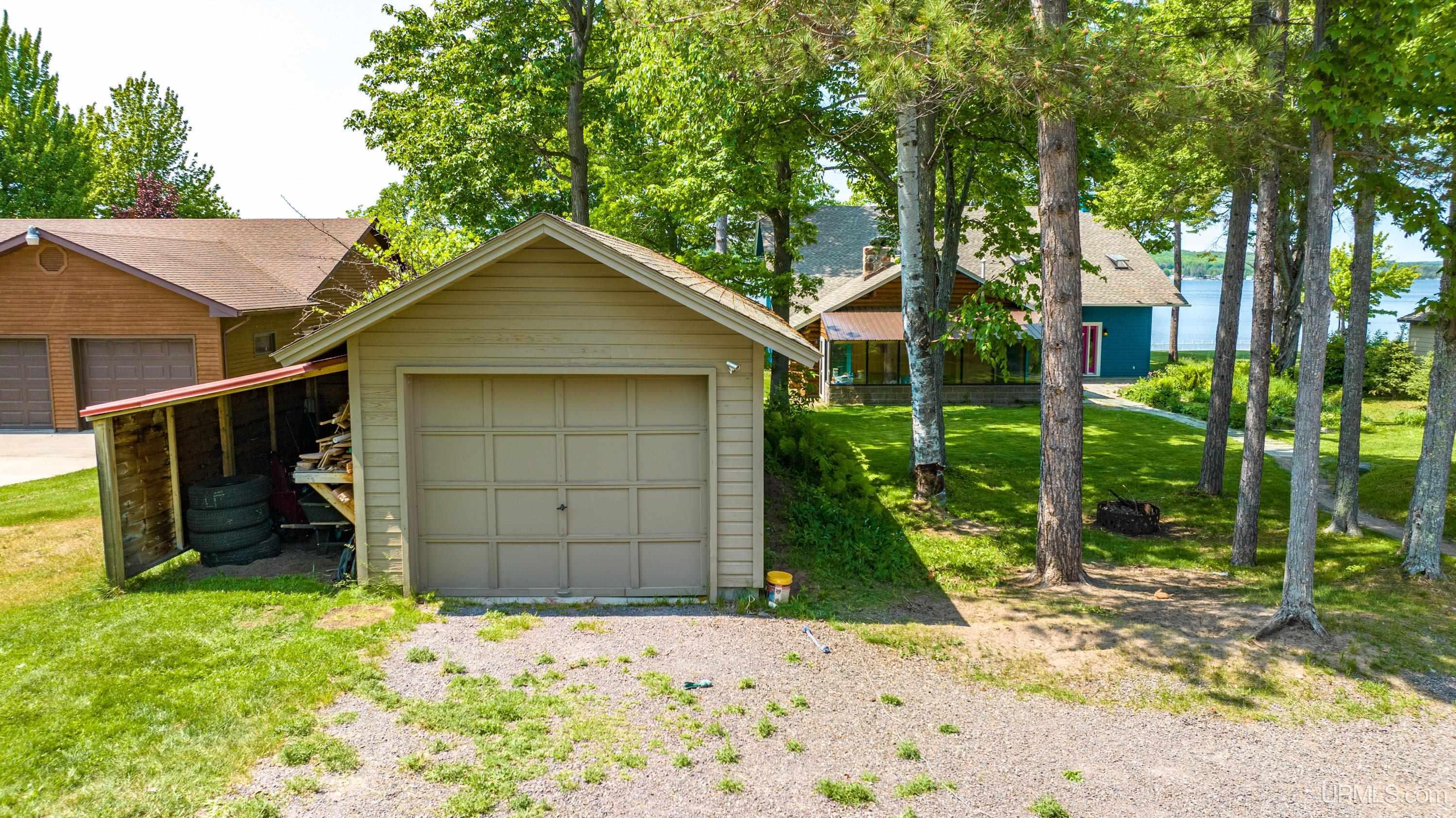 This property presents an exceptional fusion of contemporary design and classic log cabin architecture, set on approximately 100 feet of Portage Lake waterfront at Half Moon Beach‹“Chassell Bay, just 9/- miles from Houghton and Michigan Tech University. The main floor showcases the original log cabin structure integrated with a modern kitchen and comfortable sitting area featuring a wood-burning fireplace. The kitchen seamlessly connects to a modern addition, offering abundant natural light and picturesque water views. The flexible open floor plan is ideal for living and dining arrangements, facilitating both relaxation and entertaining. Additional main level amenities include a formal living room with a white marble fireplace, office, foyer, three-quarter bath, sunroom, and laundry area. A curved, open staircase leads to the upper level, where the primary bedroom suite boasts a full bath, supplemental vanity, and spacious closet. The second bedroom includes a half bath, while the third shares a full bathroom; two bedrooms provide direct balcony access with tranquil lake vistas. Some of the notable finishes throughout the home consist of granite countertops, solid cherry flooring bordered with Birdseye maple and walnut, crown and picture molding, and extensive water views. Outdoor amenities feature lakeside decking and a cedar sauna (2016). Positioned near the road is a detached 2 car garage (constructed in 2019) with workshop potential and loft storage, complemented by a tandem two-car garage, garden shed, and additional storage building for recreational equipment. The owners have meticulously maintained the residence, including restoration and sealing of logs and exterior paint on the addition in 2019. The property is located on a quiet street with direct access to the trail from Chassell to Houghton. ---- NOTICE: Information is believed accurate but not guaranteed. Buyers must inspect & verify all property details. Buyers accept all risks of inaccuracies, including but not limited to, acreage, lot size/location, square footage, & utility availability/costs. Real estate taxes will be reassessed & may change significantly after sale; do not assume your tax bills will match the sellers. Taxes are not zero. GIS, apps and plat book pages/maps are not surveys. Audio/video recording may occur on the property; entry implies consent to recording. Buyer pre-approval or proof of funds documentation to be provided upon request. -----OFFERS: Please allow 72 hours for a response. Seller may set or change offer deadlines at any time with or without notice.