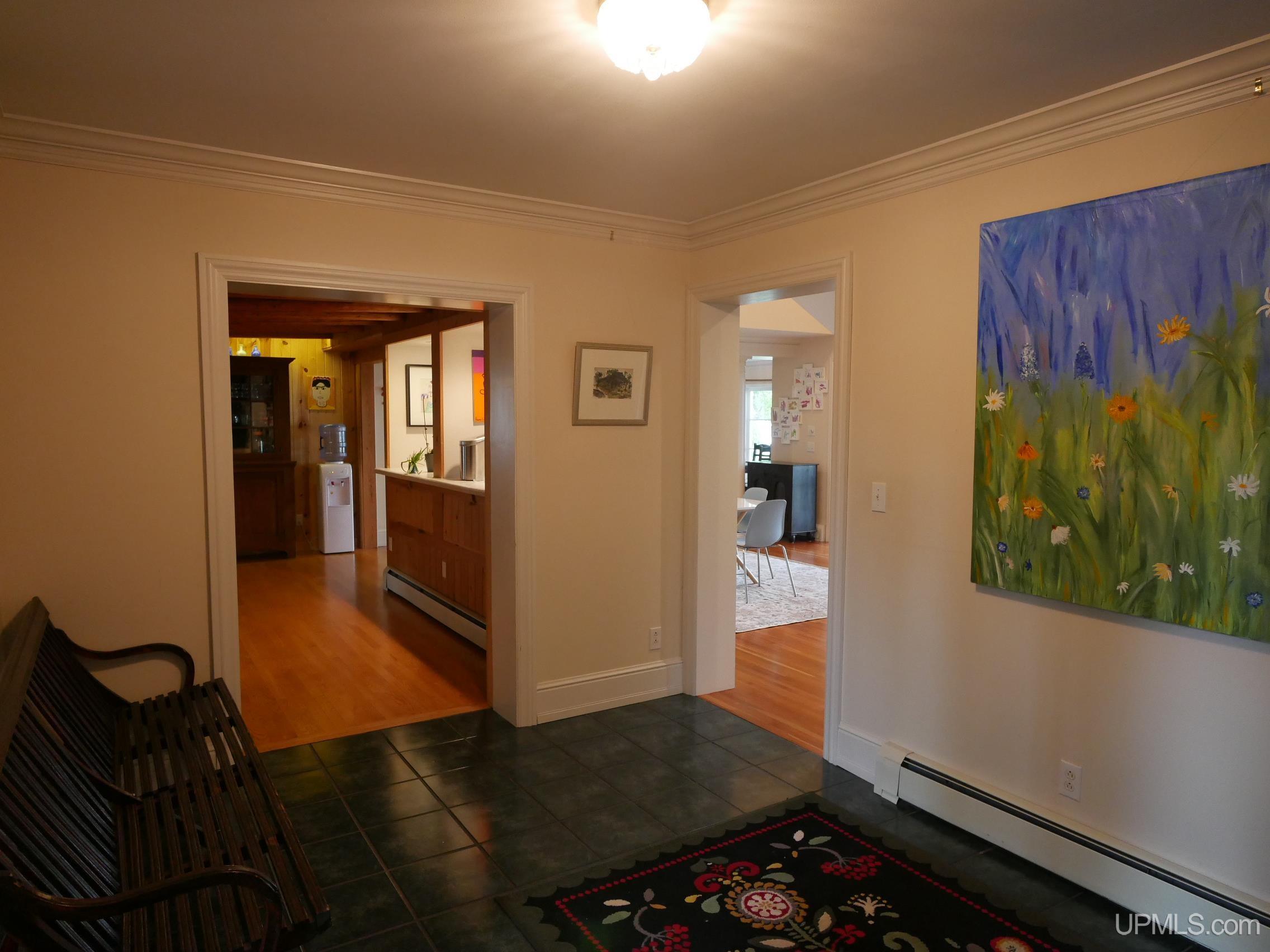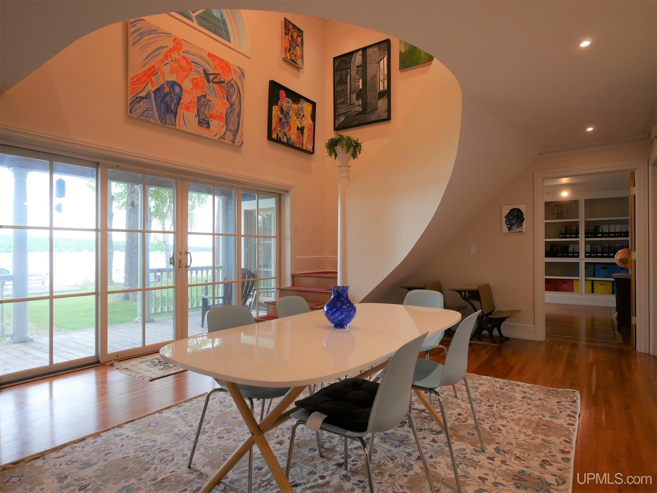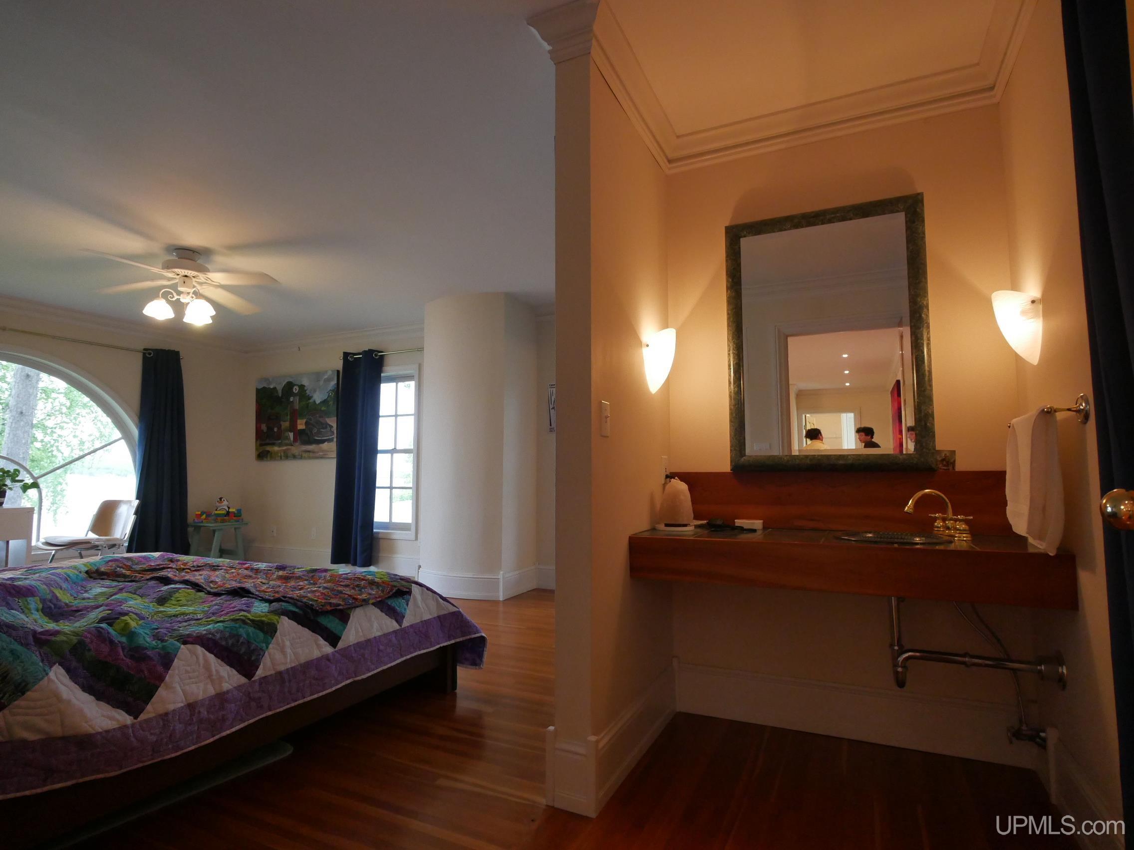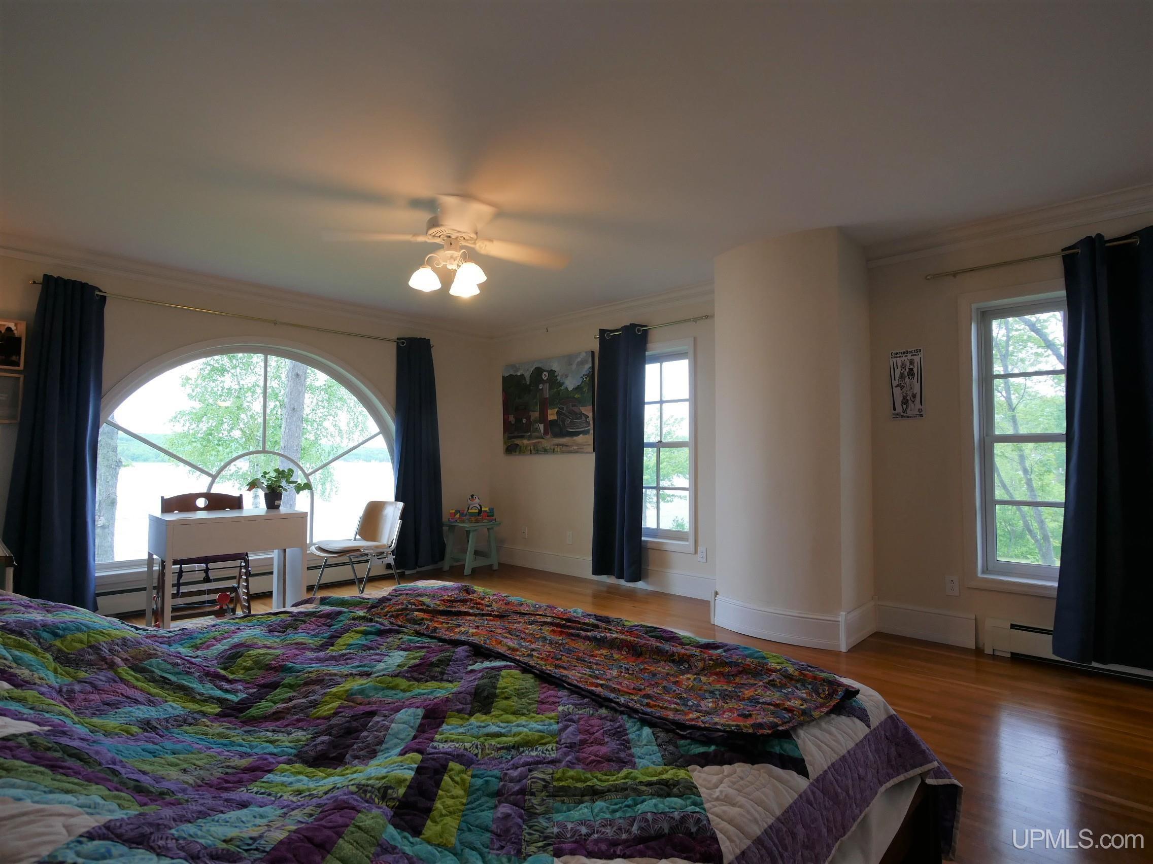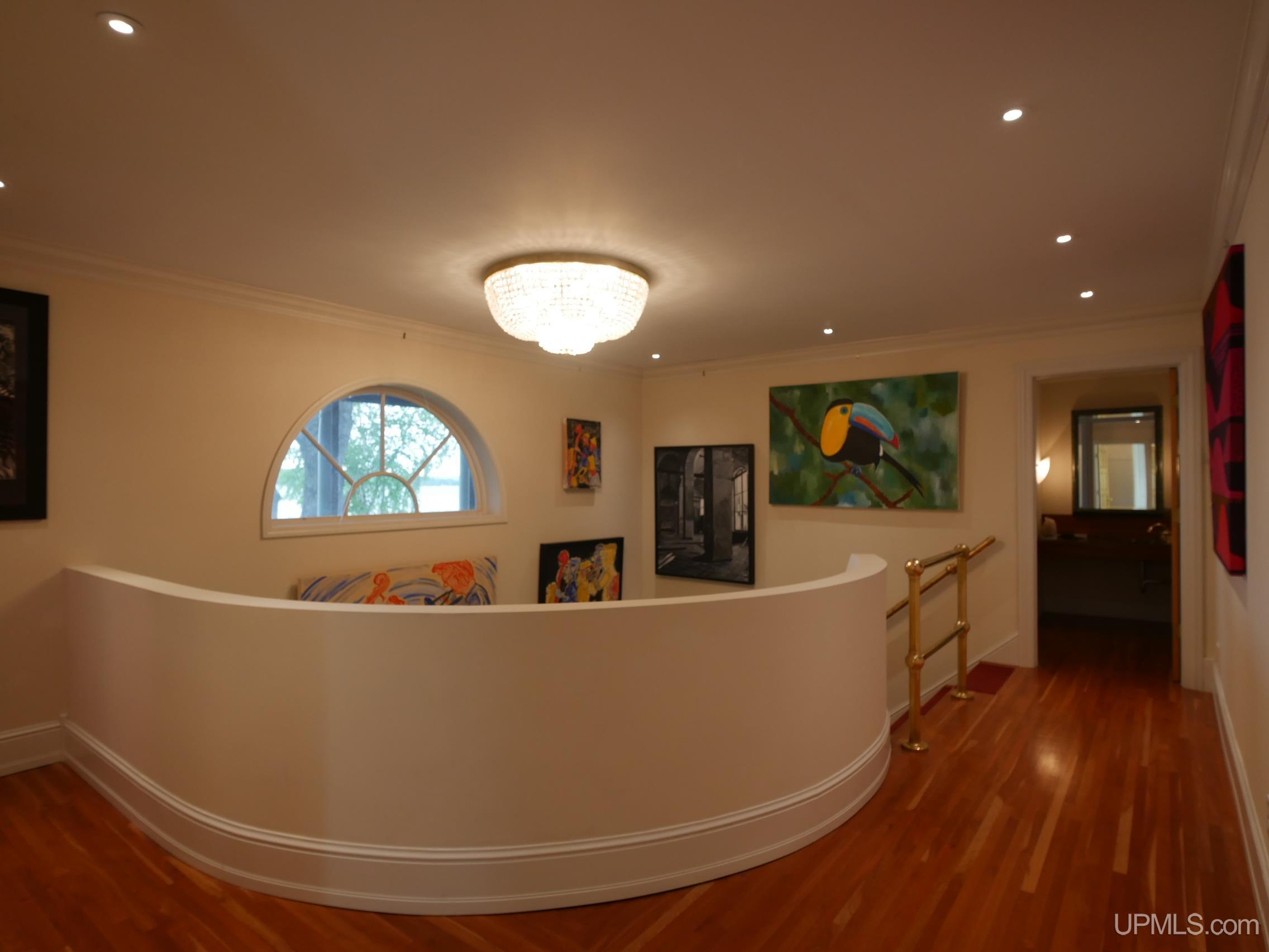 This property presents an exceptional fusion of contemporary design and classic log cabin architecture, set on approximately 100 feet of Portage Lake waterfront at Half Moon Beach‹“Chassell Bay, just 9/- miles from Houghton and Michigan Tech University. The main floor showcases the original log cabin structure integrated with a modern kitchen and comfortable sitting area featuring a wood-burning fireplace. The kitchen seamlessly connects to a modern addition, offering abundant natural light and picturesque water views. The flexible open floor plan is ideal for living and dining arrangements, facilitating both relaxation and entertaining. Additional main level amenities include a formal living room with a white marble fireplace, office, foyer, three-quarter bath, sunroom, and laundry area. A curved, open staircase leads to the upper level, where the primary bedroom suite boasts a full bath, supplemental vanity, and spacious closet. The second bedroom includes a half bath, while the third shares a full bathroom; two bedrooms provide direct balcony access with tranquil lake vistas. Some of the notable finishes throughout the home consist of granite countertops, solid cherry flooring bordered with Birdseye maple and walnut, crown and picture molding, and extensive water views. Outdoor amenities feature lakeside decking and a cedar sauna (2016). Positioned near the road is a detached 2 car garage (constructed in 2019) with workshop potential and loft storage, complemented by a tandem two-car garage, garden shed, and additional storage building for recreational equipment. The owners have meticulously maintained the residence, including restoration and sealing of logs and exterior paint on the addition in 2019. The property is located on a quiet street with direct access to the trail from Chassell to Houghton. ---- NOTICE: Information is believed accurate but not guaranteed. Buyers must inspect & verify all property details. Buyers accept all risks of inaccuracies, including but not limited to, acreage, lot size/location, square footage, & utility availability/costs. Real estate taxes will be reassessed & may change significantly after sale; do not assume your tax bills will match the sellers. Taxes are not zero. GIS, apps and plat book pages/maps are not surveys. Audio/video recording may occur on the property; entry implies consent to recording. Buyer pre-approval or proof of funds documentation to be provided upon request. -----OFFERS: Please allow 72 hours for a response. Seller may set or change offer deadlines at any time with or without notice.