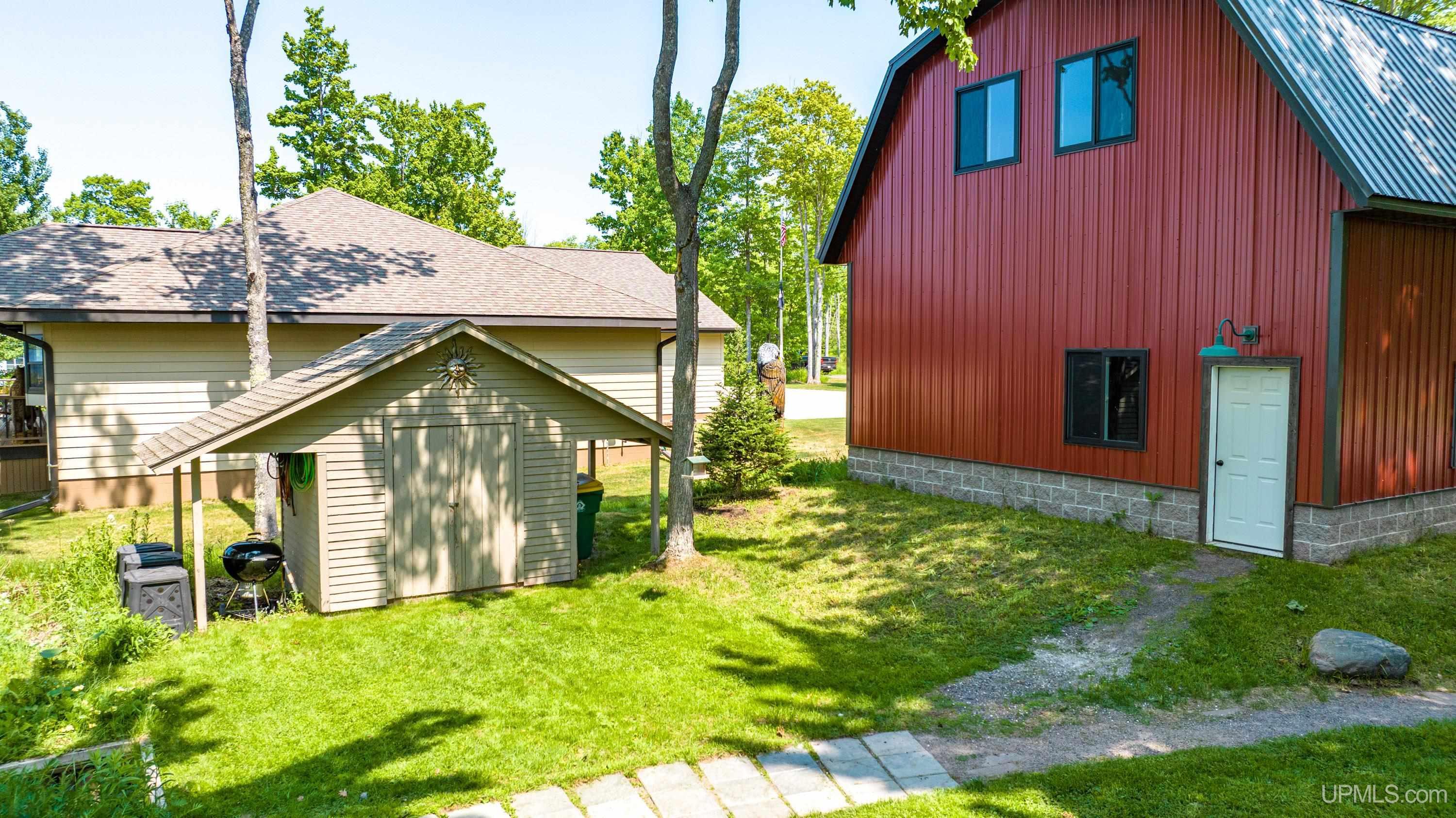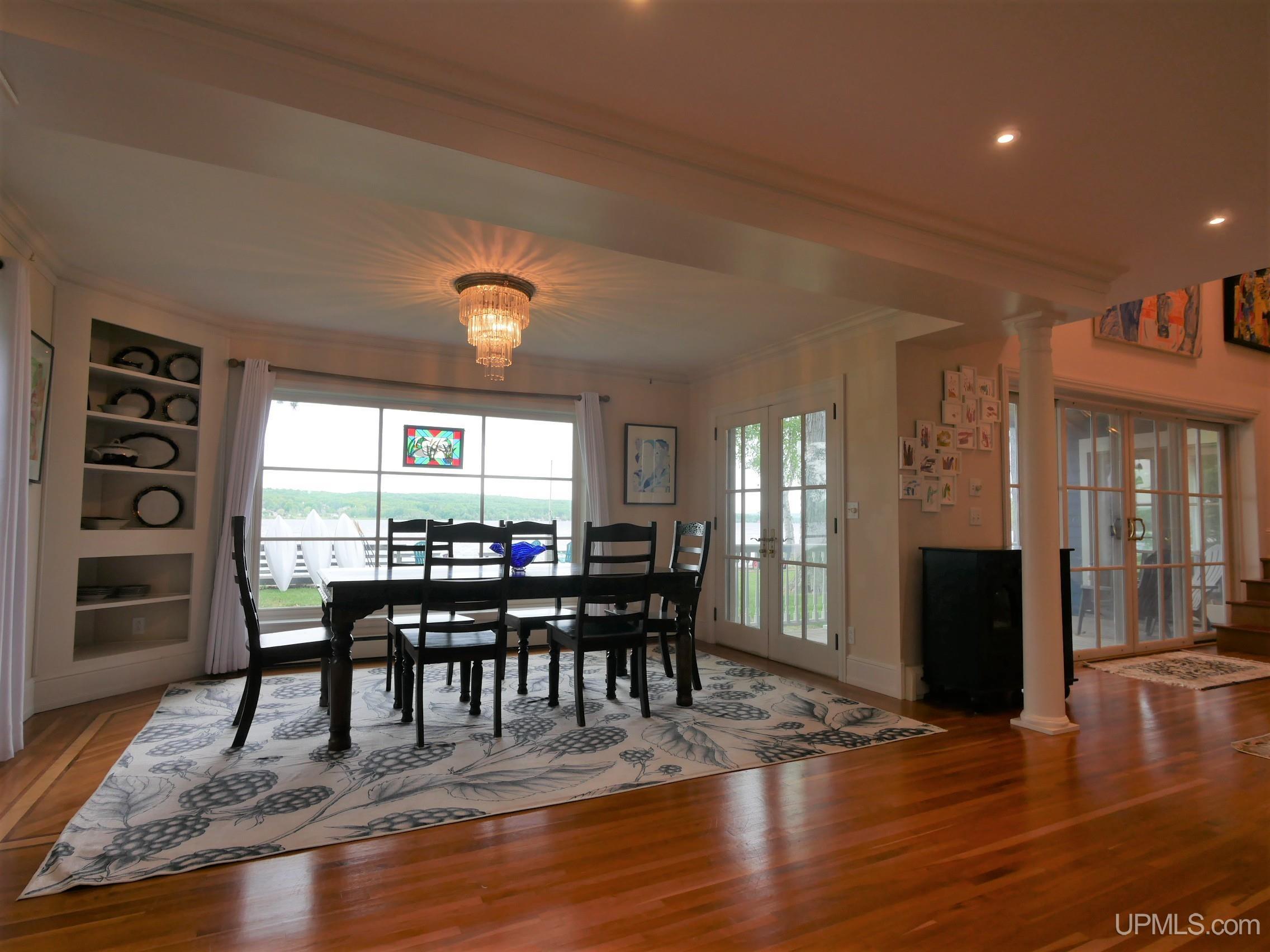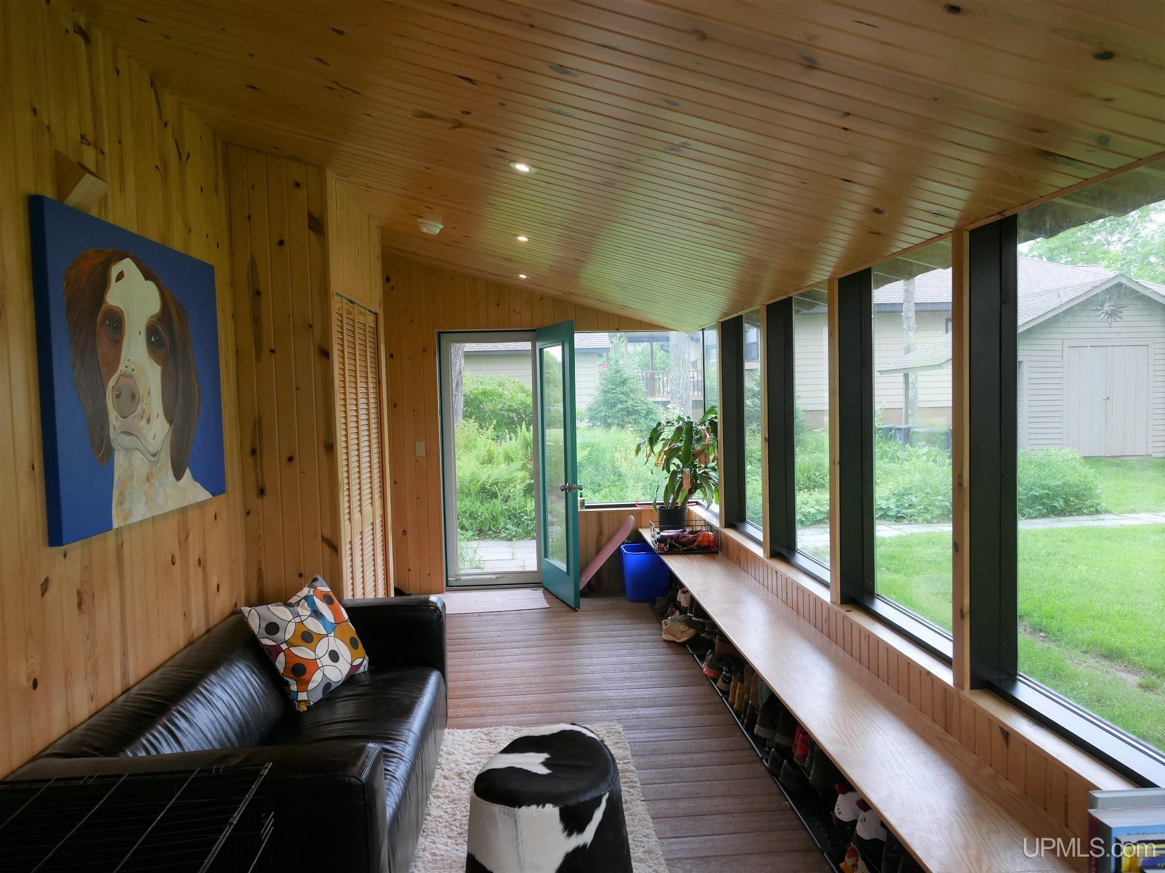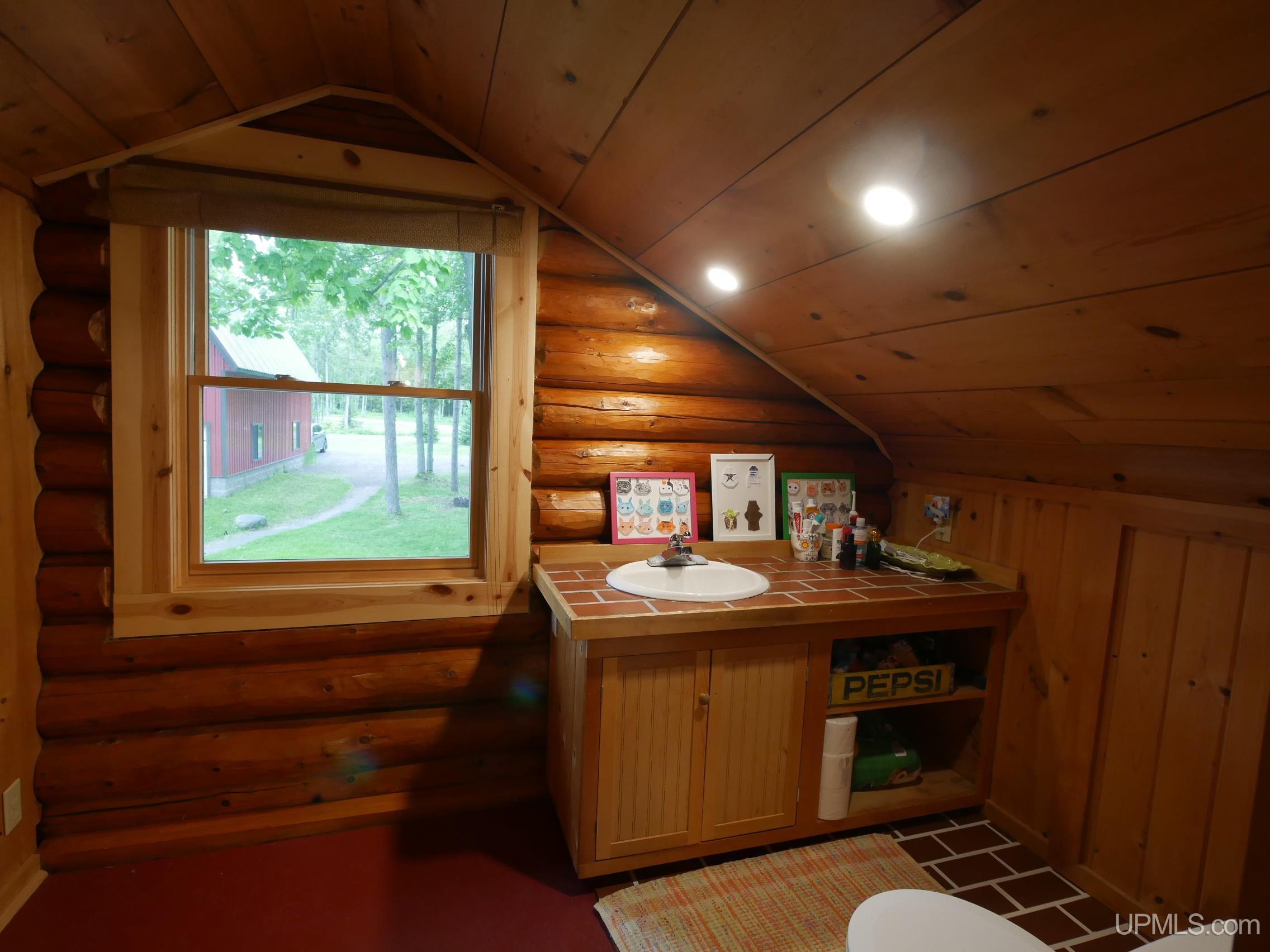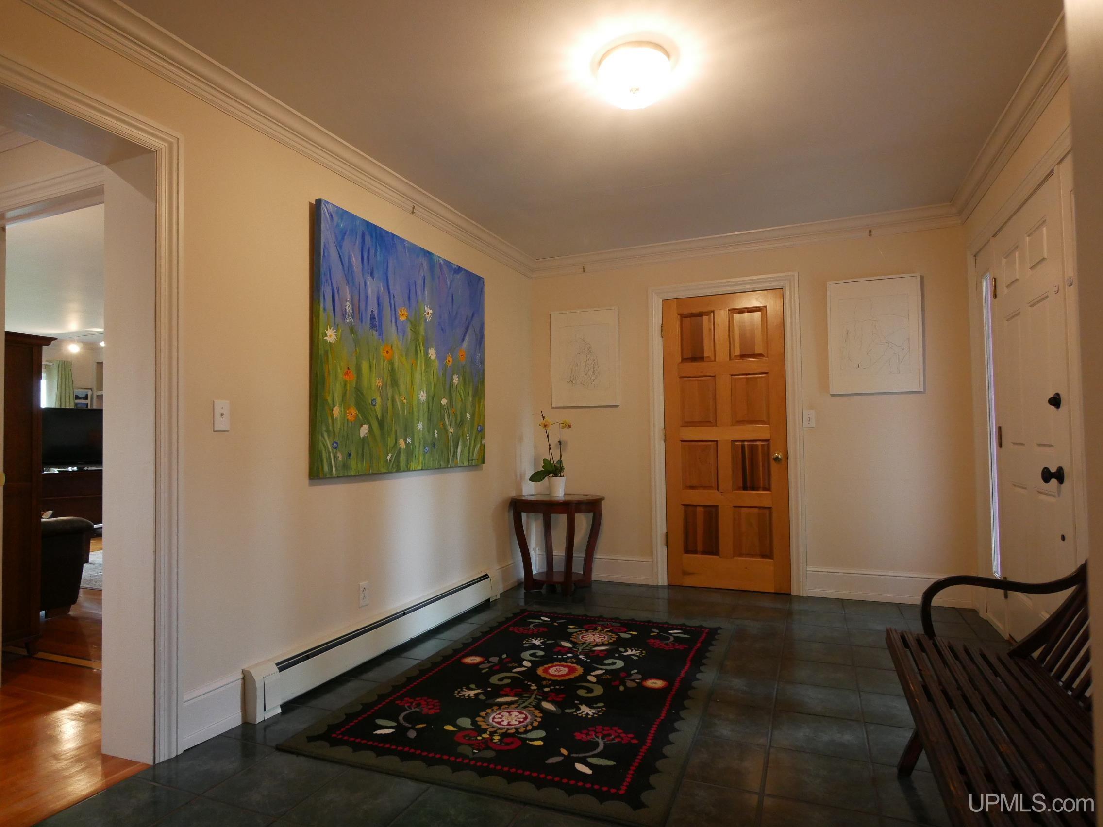 This property presents an exceptional fusion of contemporary design and classic log cabin architecture, set on approximately 100 feet of Portage Lake waterfront at Half Moon Beach‹“Chassell Bay, just 9/- miles from Houghton and Michigan Tech University. The main floor showcases the original log cabin structure integrated with a modern kitchen and comfortable sitting area featuring a wood-burning fireplace. The kitchen seamlessly connects to a modern addition, offering abundant natural light and picturesque water views. The flexible open floor plan is ideal for living and dining arrangements, facilitating both relaxation and entertaining. Additional main level amenities include a formal living room with a white marble fireplace, office, foyer, three-quarter bath, sunroom, and laundry area. A curved, open staircase leads to the upper level, where the primary bedroom suite boasts a full bath, supplemental vanity, and spacious closet. The second bedroom includes a half bath, while the third shares a full bathroom; two bedrooms provide direct balcony access with tranquil lake vistas. Some of the notable finishes throughout the home consist of granite countertops, solid cherry flooring bordered with Birdseye maple and walnut, crown and picture molding, and extensive water views. Outdoor amenities feature lakeside decking and a cedar sauna (2016). Positioned near the road is a detached 2 car garage (constructed in 2019) with workshop potential and loft storage, complemented by a tandem two-car garage, garden shed, and additional storage building for recreational equipment. The owners have meticulously maintained the residence, including restoration and sealing of logs and exterior paint on the addition in 2019. The property is located on a quiet street with direct access to the trail from Chassell to Houghton. ---- NOTICE: Information is believed accurate but not guaranteed. Buyers must inspect & verify all property details. Buyers accept all risks of inaccuracies, including but not limited to, acreage, lot size/location, square footage, & utility availability/costs. Real estate taxes will be reassessed & may change significantly after sale; do not assume your tax bills will match the sellers. Taxes are not zero. GIS, apps and plat book pages/maps are not surveys. Audio/video recording may occur on the property; entry implies consent to recording. Buyer pre-approval or proof of funds documentation to be provided upon request. -----OFFERS: Please allow 72 hours for a response. Seller may set or change offer deadlines at any time with or without notice.