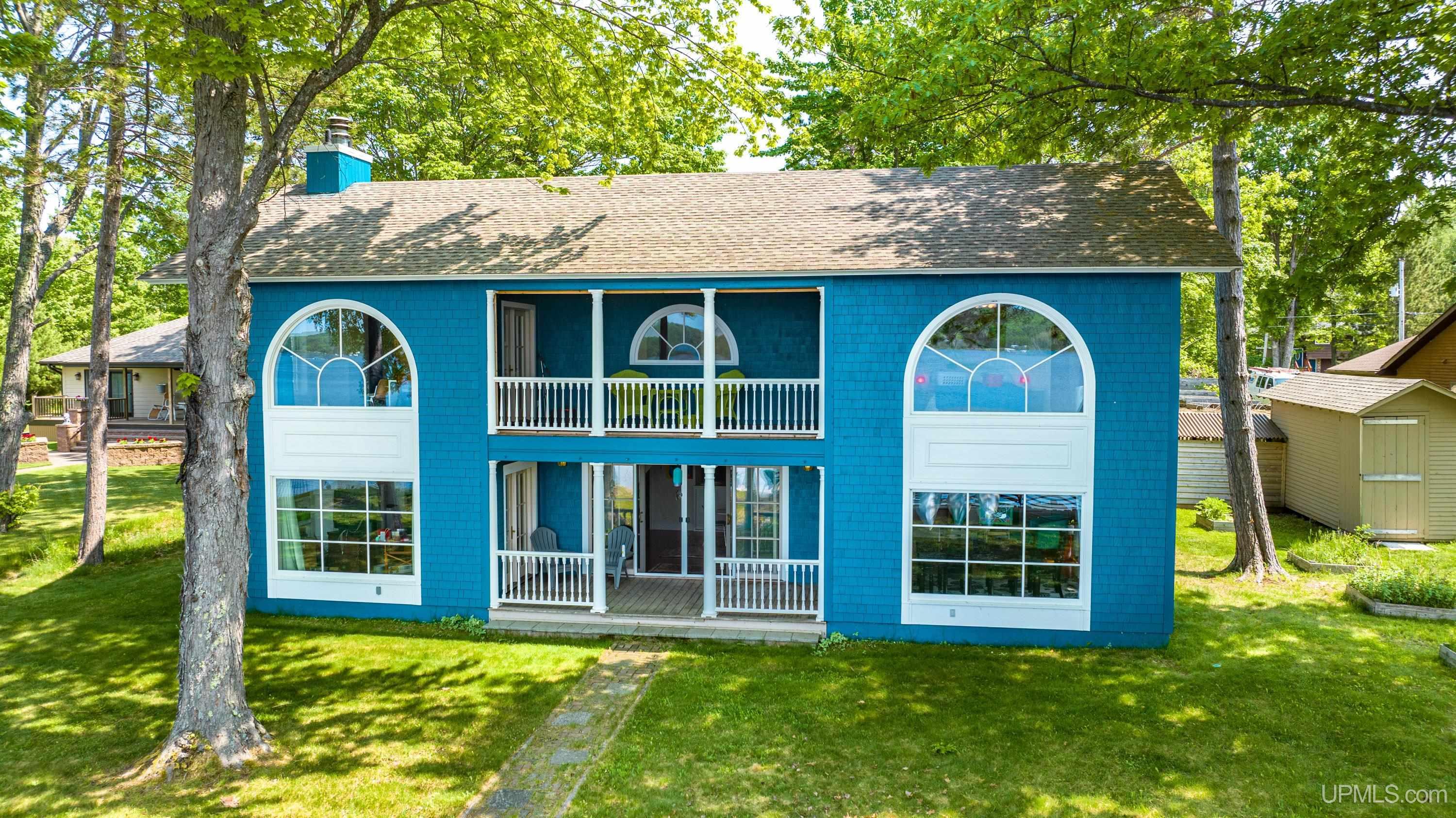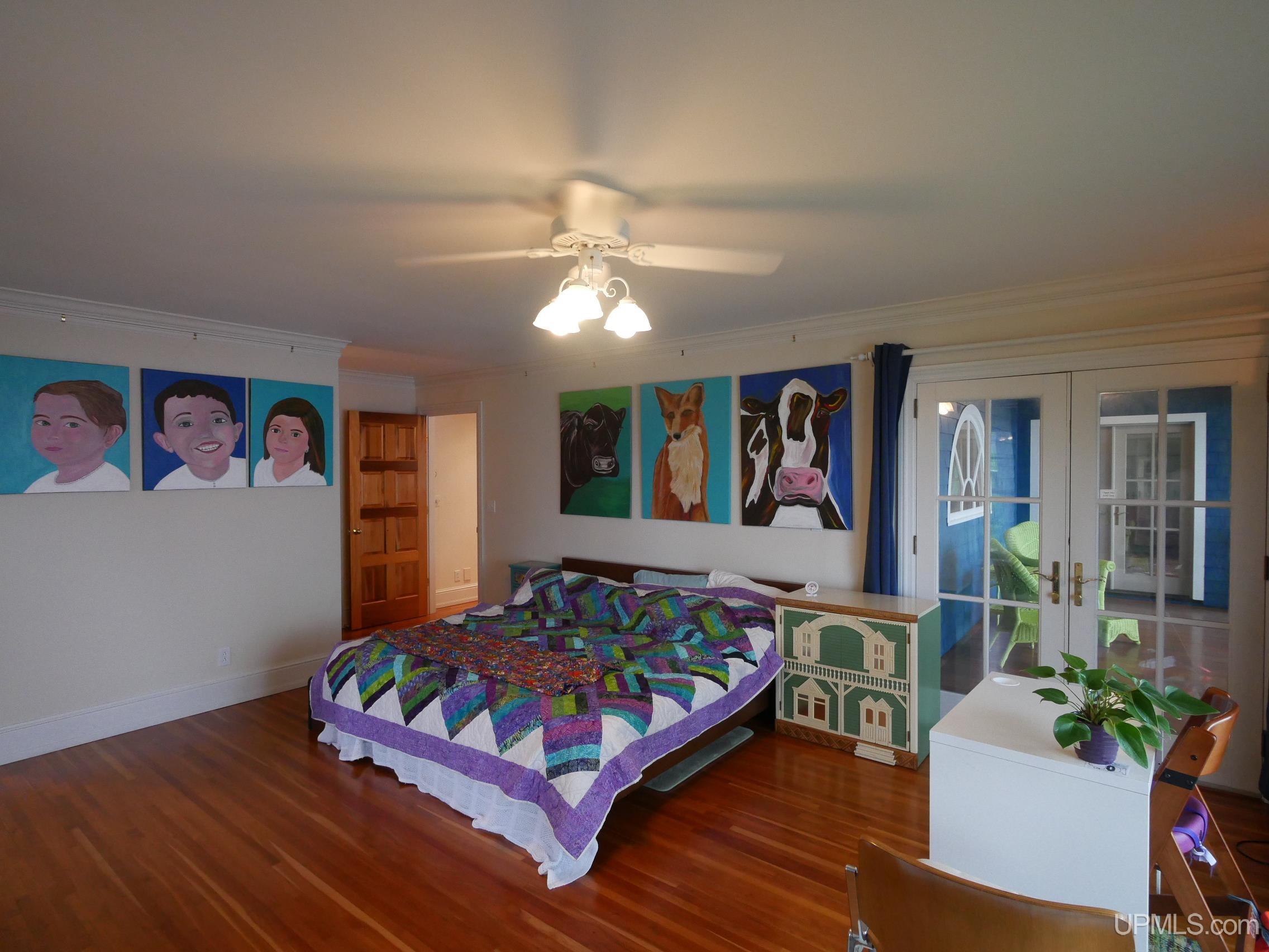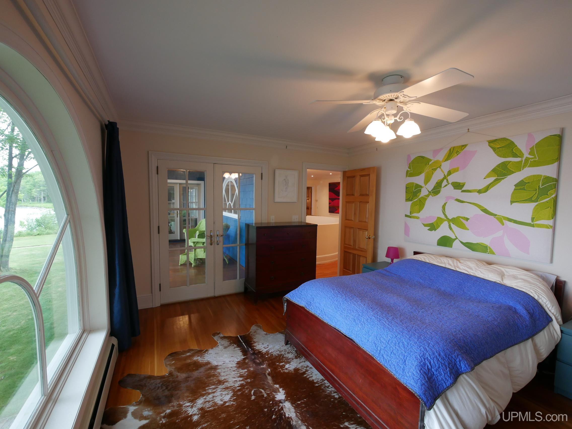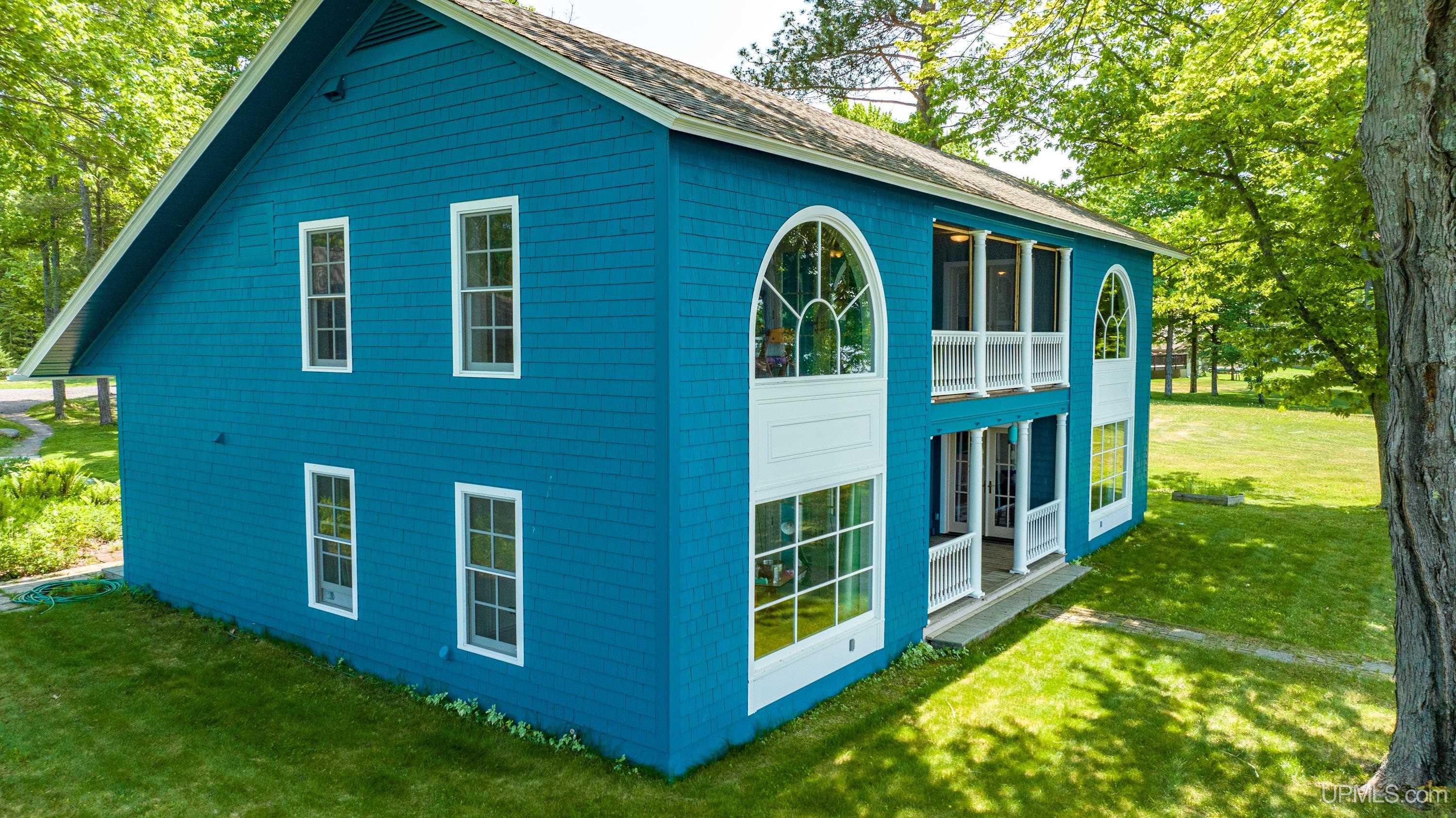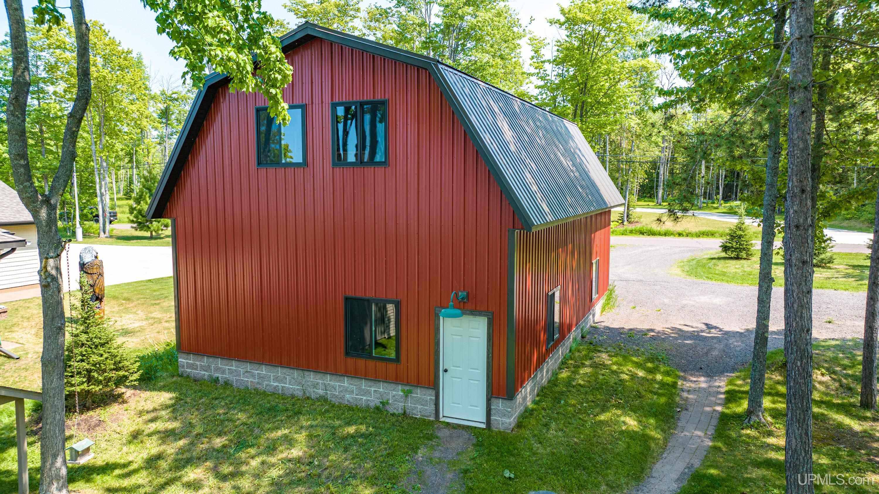 This property presents an exceptional fusion of contemporary design and classic log cabin architecture, set on approximately 100 feet of Portage Lake waterfront at Half Moon Beach‹“Chassell Bay, just 9/- miles from Houghton and Michigan Tech University. The main floor showcases the original log cabin structure integrated with a modern kitchen and comfortable sitting area featuring a wood-burning fireplace. The kitchen seamlessly connects to a modern addition, offering abundant natural light and picturesque water views. The flexible open floor plan is ideal for living and dining arrangements, facilitating both relaxation and entertaining. Additional main level amenities include a formal living room with a white marble fireplace, office, foyer, three-quarter bath, sunroom, and laundry area. A curved, open staircase leads to the upper level, where the primary bedroom suite boasts a full bath, supplemental vanity, and spacious closet. The second bedroom includes a half bath, while the third shares a full bathroom; two bedrooms provide direct balcony access with tranquil lake vistas. Some of the notable finishes throughout the home consist of granite countertops, solid cherry flooring bordered with Birdseye maple and walnut, crown and picture molding, and extensive water views. Outdoor amenities feature lakeside decking and a cedar sauna (2016). Positioned near the road is a detached 2 car garage (constructed in 2019) with workshop potential and loft storage, complemented by a tandem two-car garage, garden shed, and additional storage building for recreational equipment. The owners have meticulously maintained the residence, including restoration and sealing of logs and exterior paint on the addition in 2019. The property is located on a quiet street with direct access to the trail from Chassell to Houghton. ---- NOTICE: Information is believed accurate but not guaranteed. Buyers must inspect & verify all property details. Buyers accept all risks of inaccuracies, including but not limited to, acreage, lot size/location, square footage, & utility availability/costs. Real estate taxes will be reassessed & may change significantly after sale; do not assume your tax bills will match the sellers. Taxes are not zero. GIS, apps and plat book pages/maps are not surveys. Audio/video recording may occur on the property; entry implies consent to recording. Buyer pre-approval or proof of funds documentation to be provided upon request. -----OFFERS: Please allow 72 hours for a response. Seller may set or change offer deadlines at any time with or without notice.